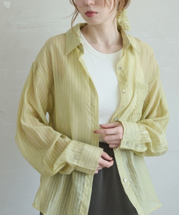 【シーズンムードを高めるストライプ柄の爽やかなシアーシャツ】