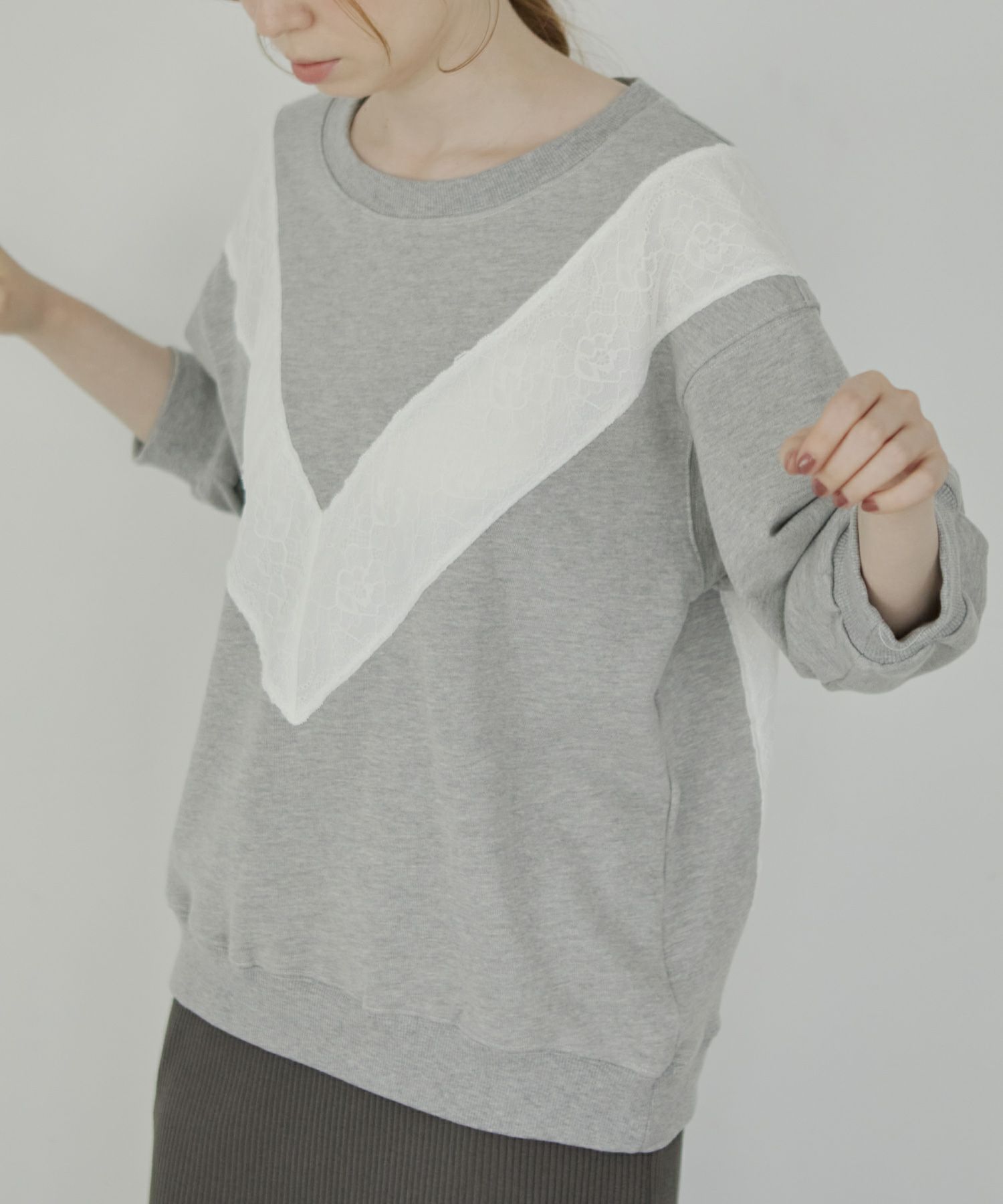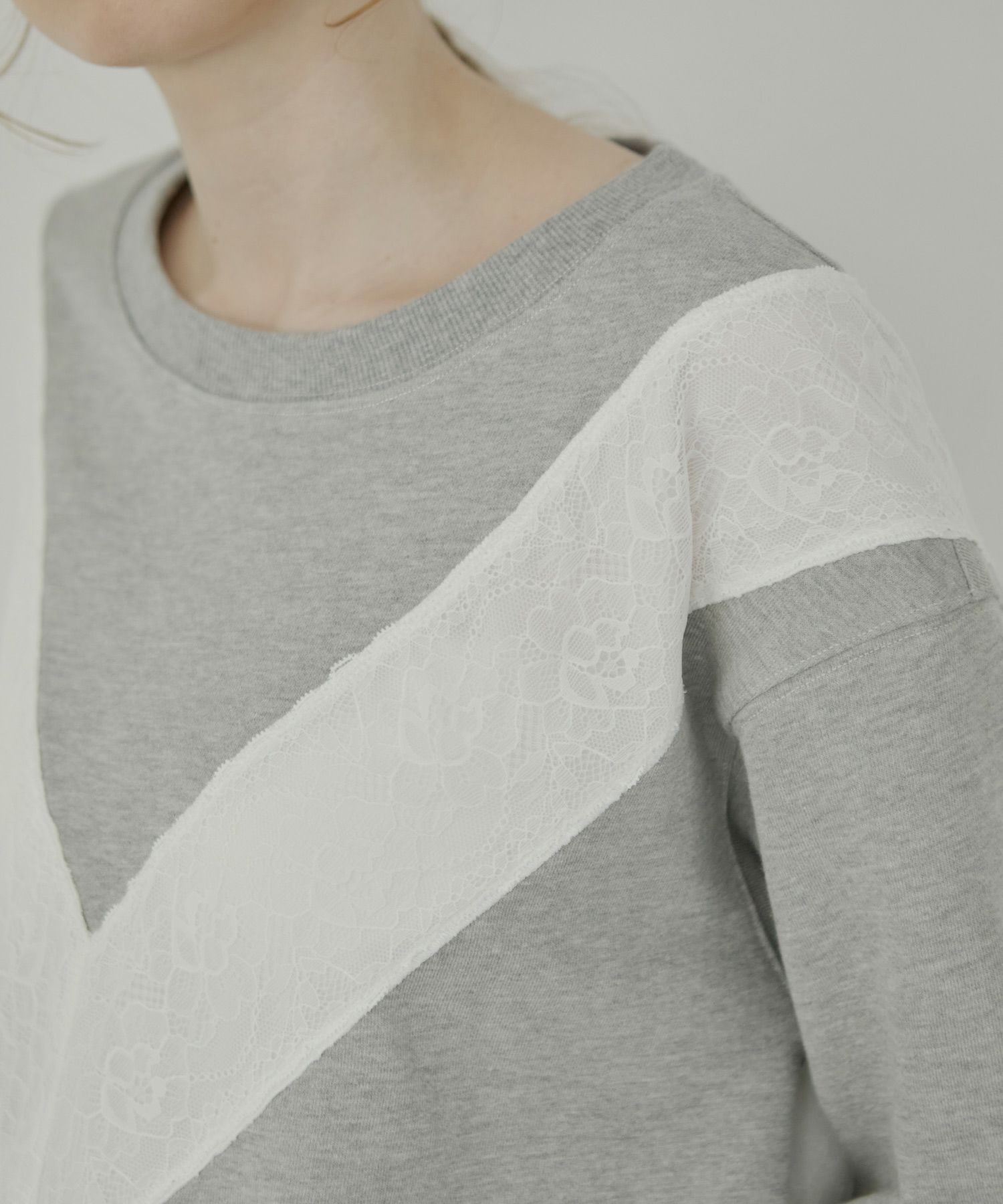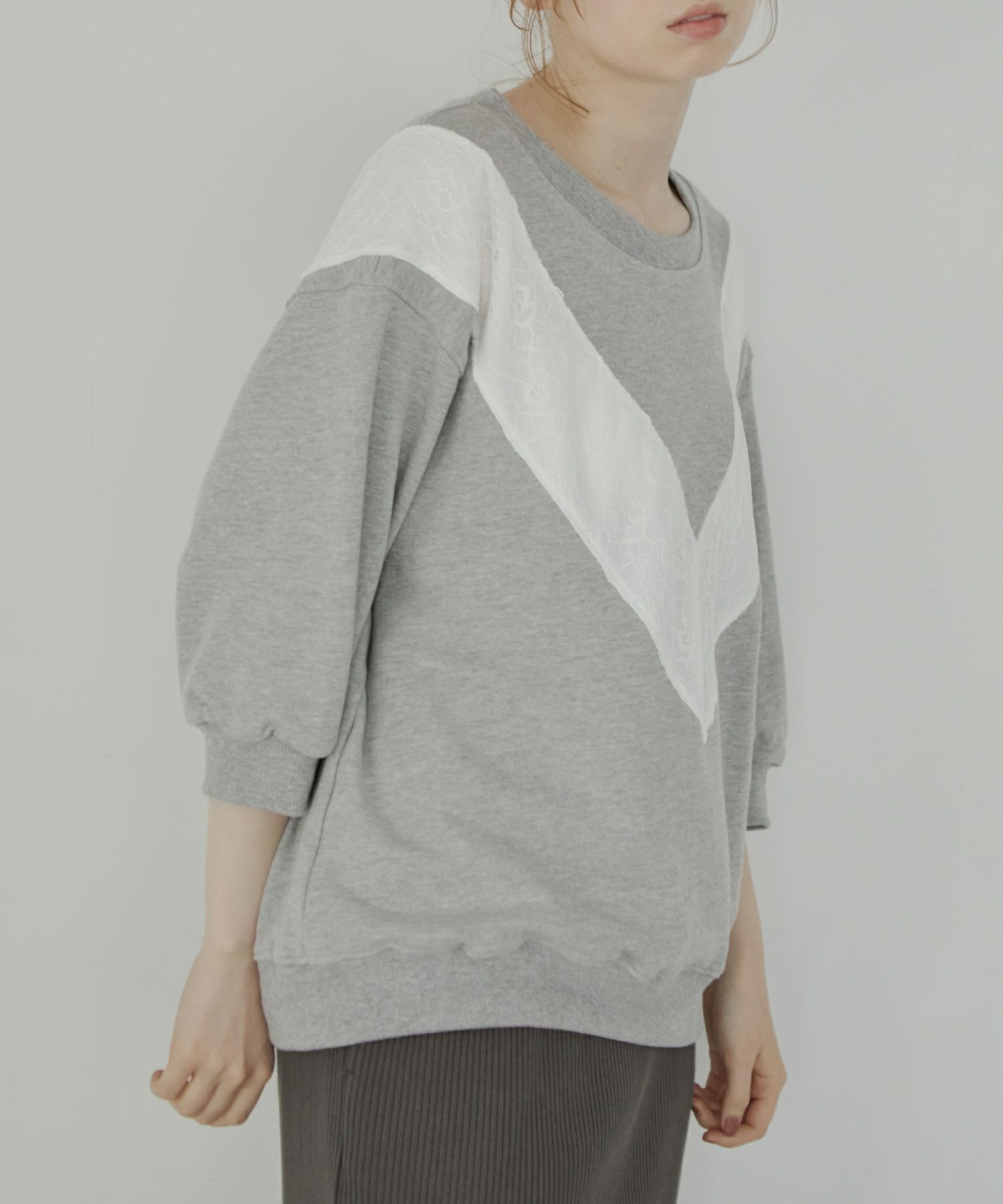 レースアクセントハーフスリーブスウェット[c1k3785]