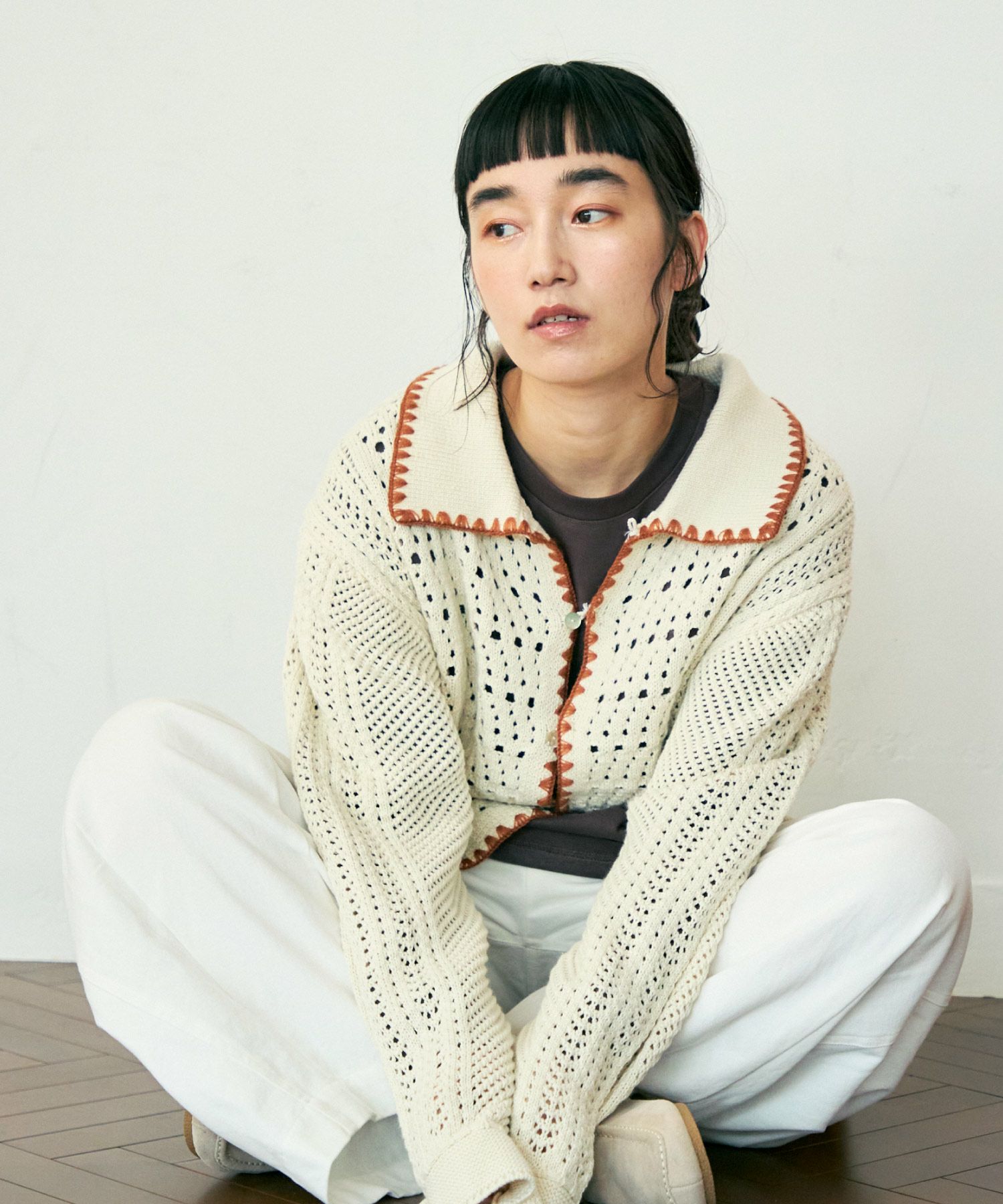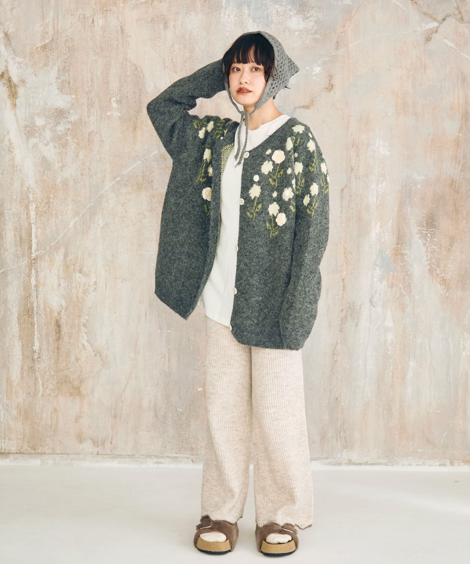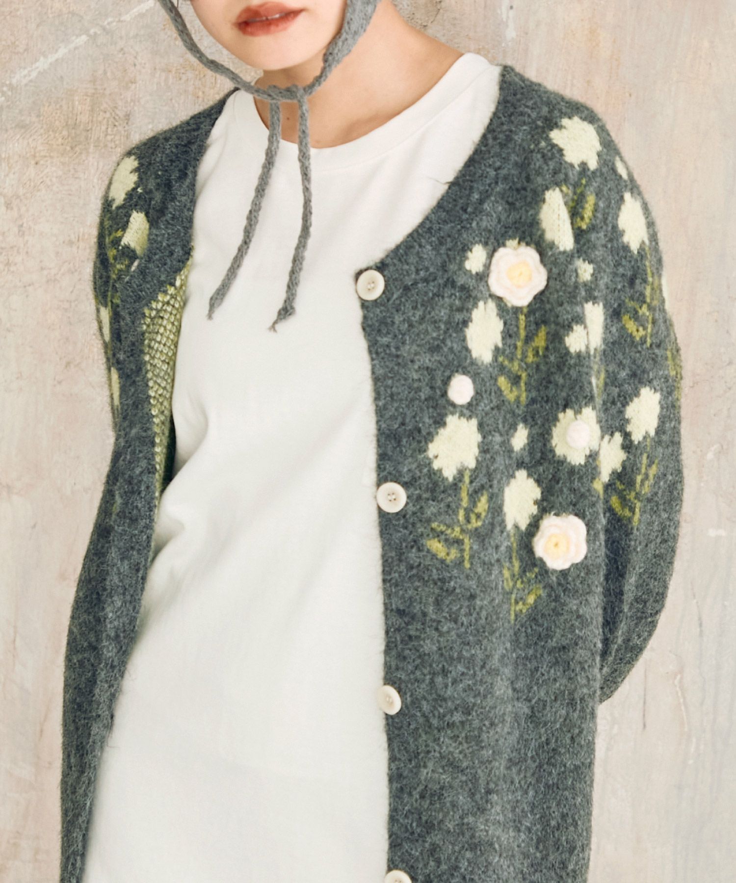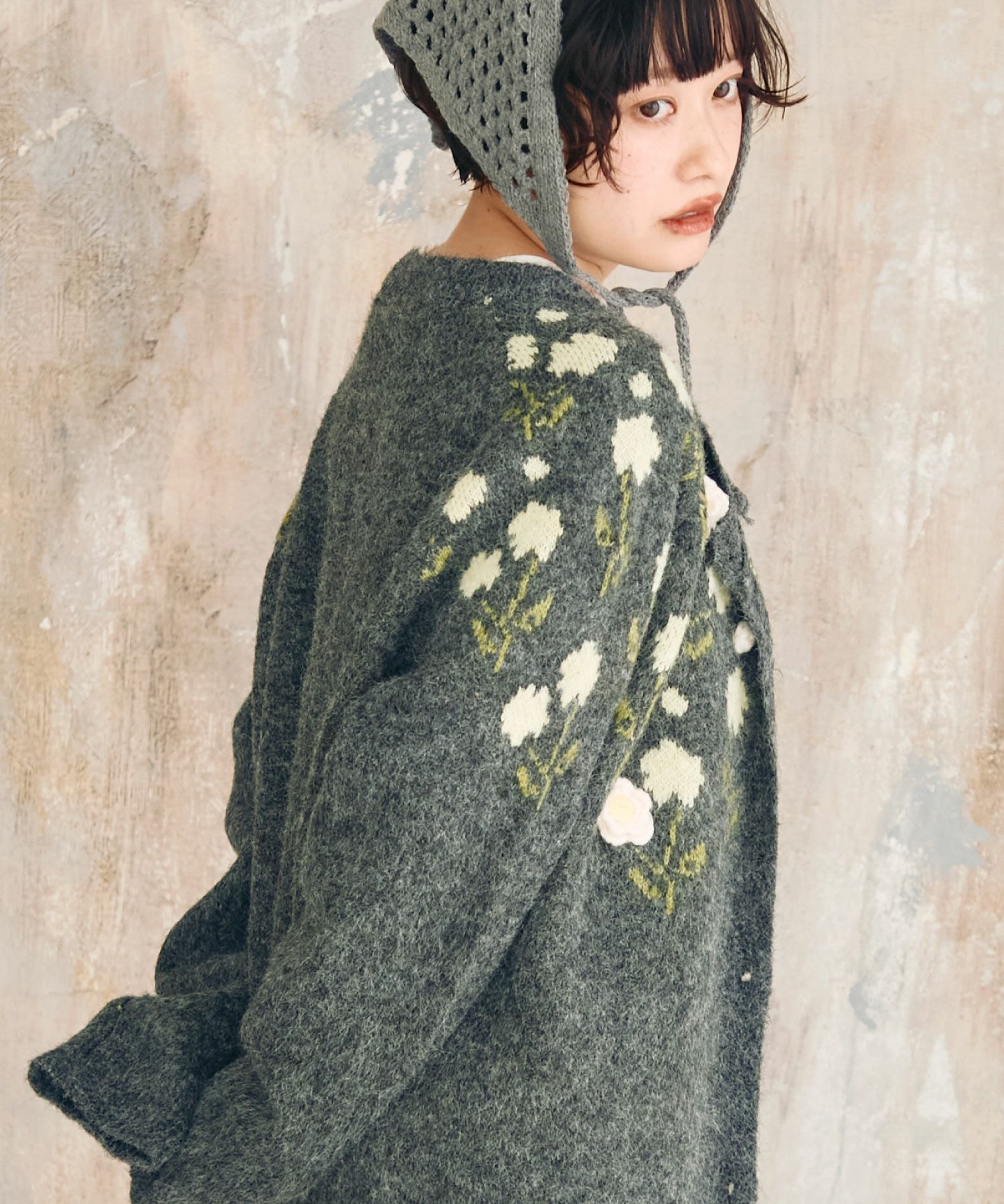 フラワーモチーフオーバーニットカーディガン[c1k3755b]