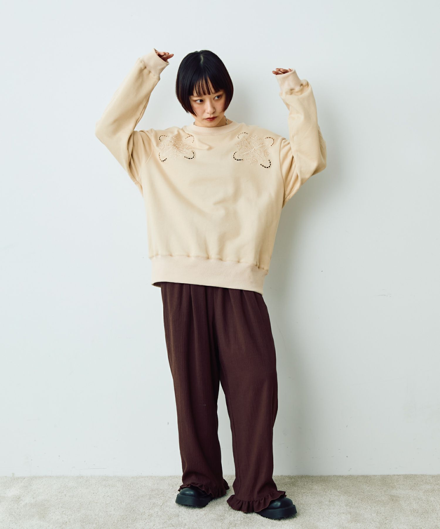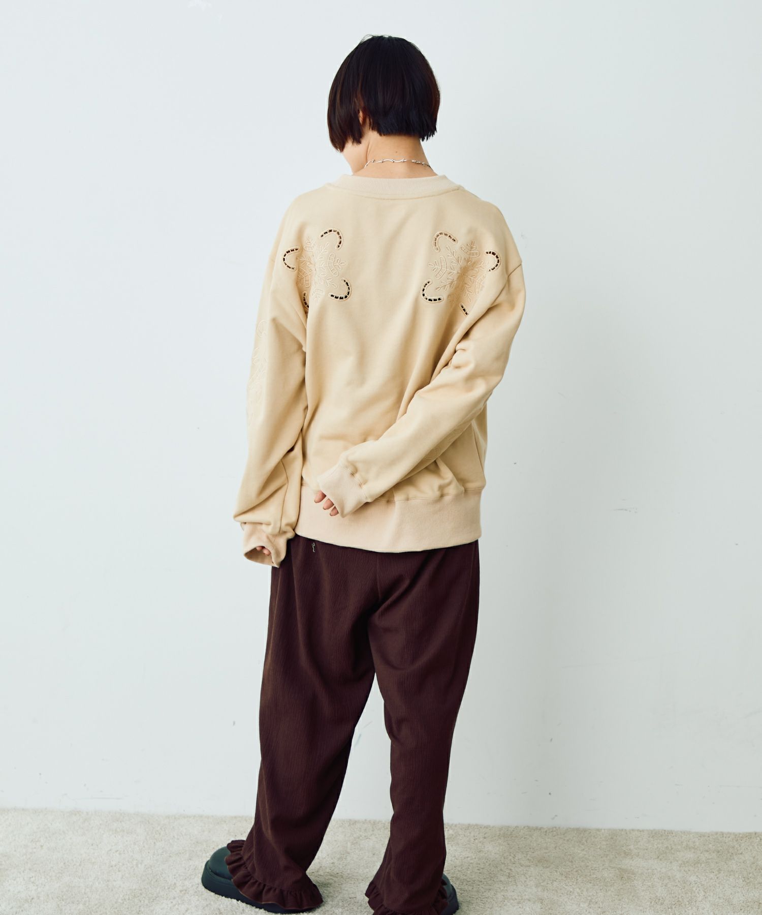 ヴィンテージカットワークデザインスウェット[c1k3786]