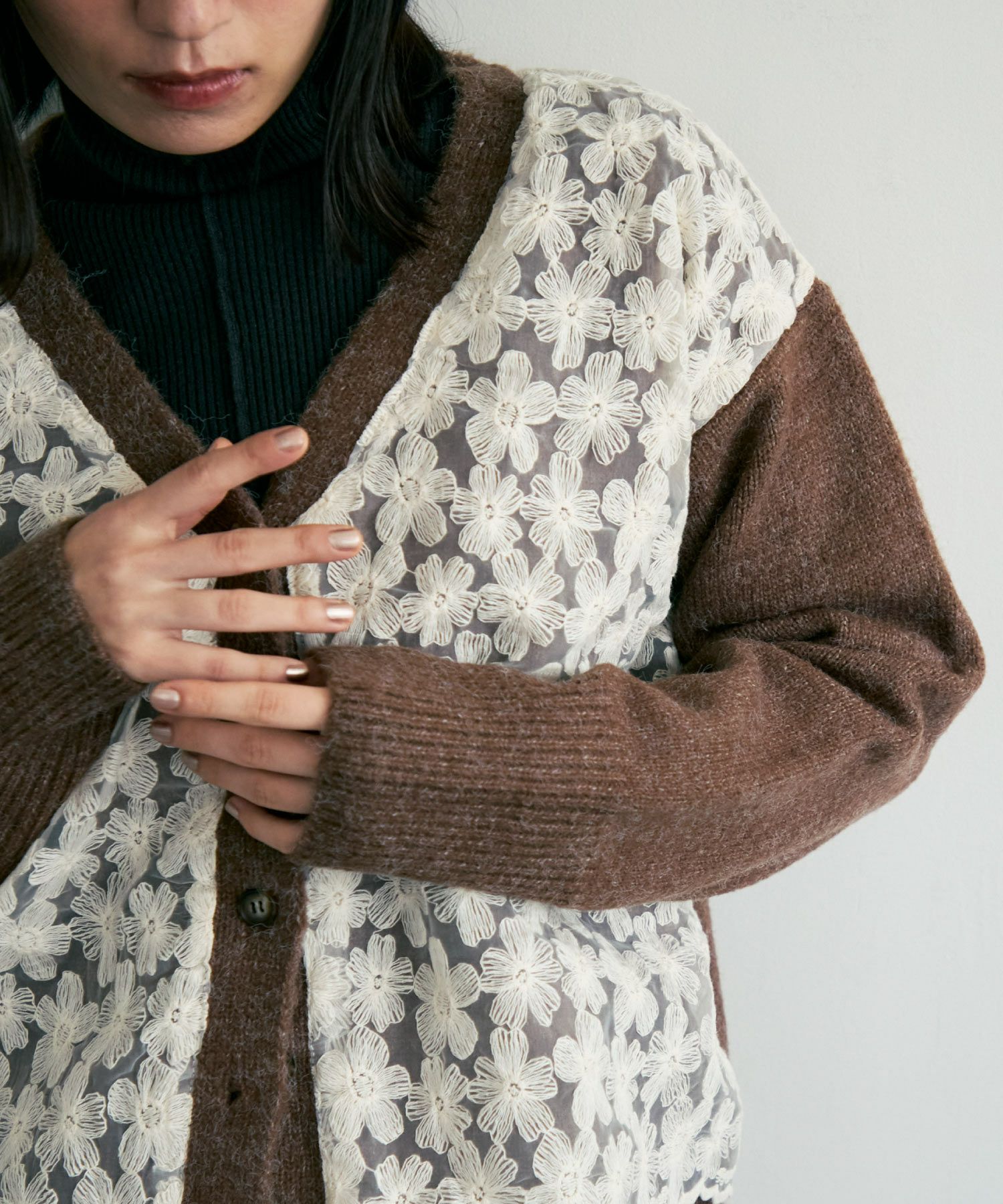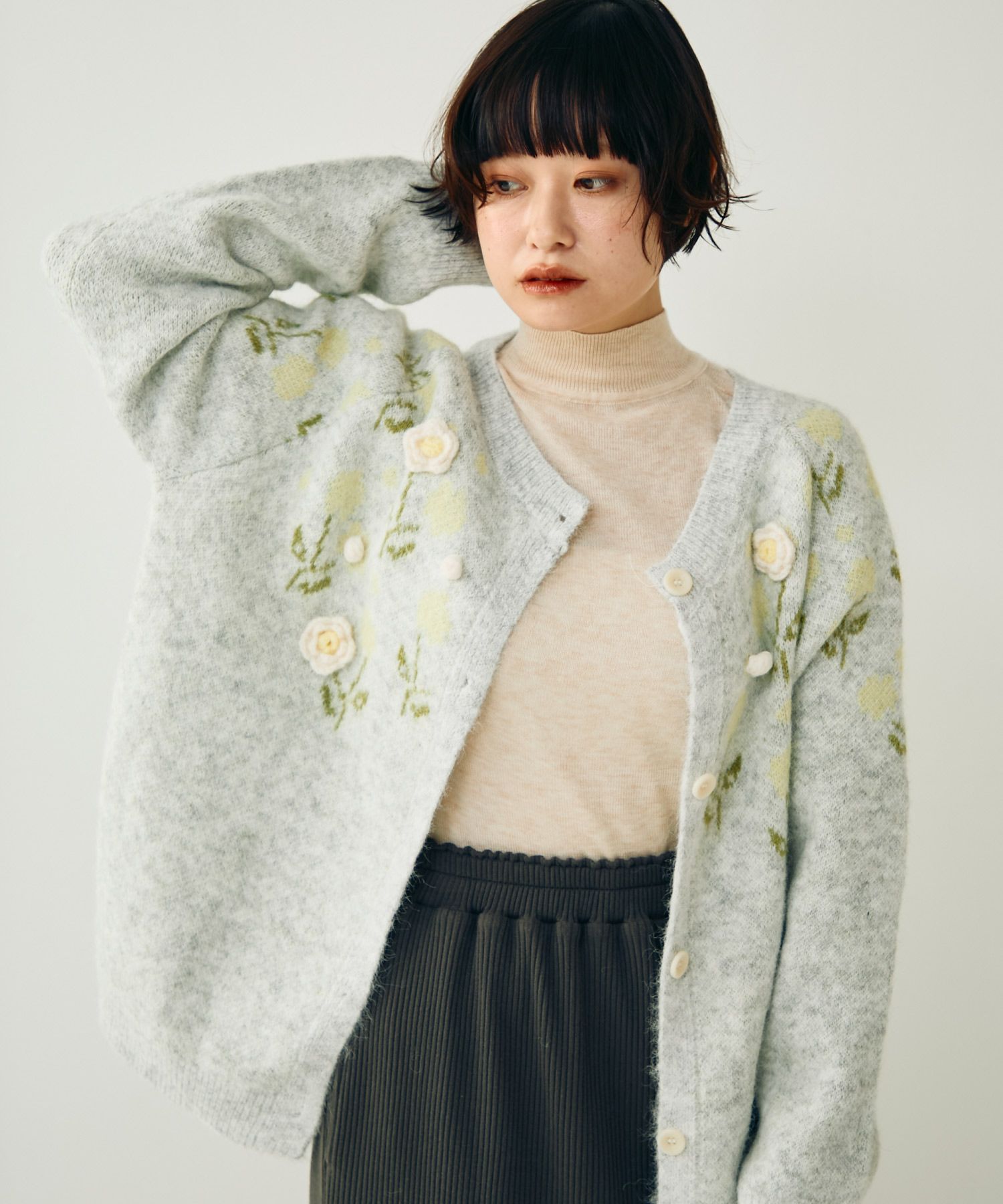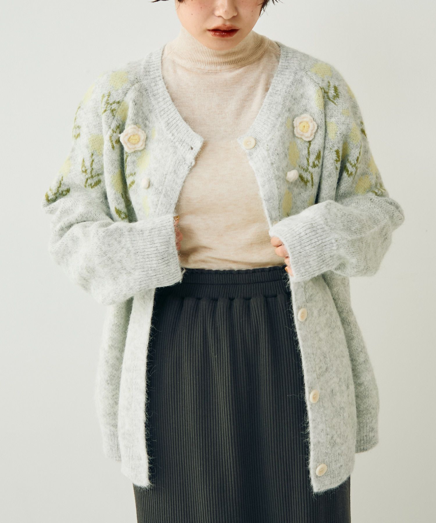 フラワー刺繍ニットカーディガン[c1k3748b]