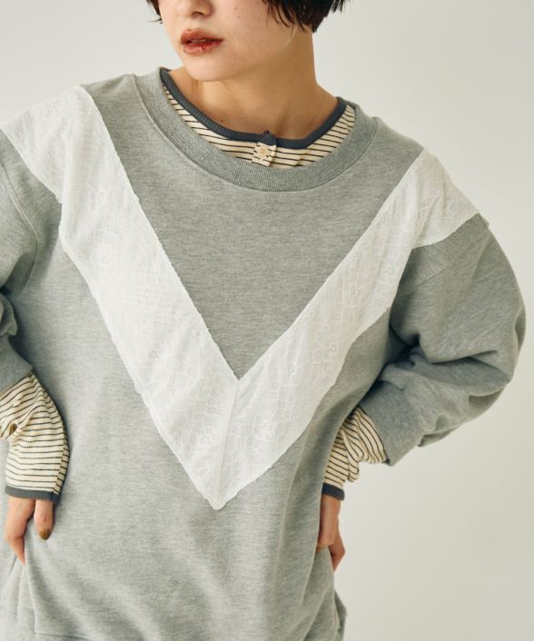 ・切り替え部分のレースはシフォンを当てているので、透け感を気にせず着られるデザイン ・ゆったりシルエットながら手首が見える袖丈で華奢見えが叶う1枚 ・着心地の良い程よい厚みの裏毛素材を使用しており、ロングシーズン着用できます