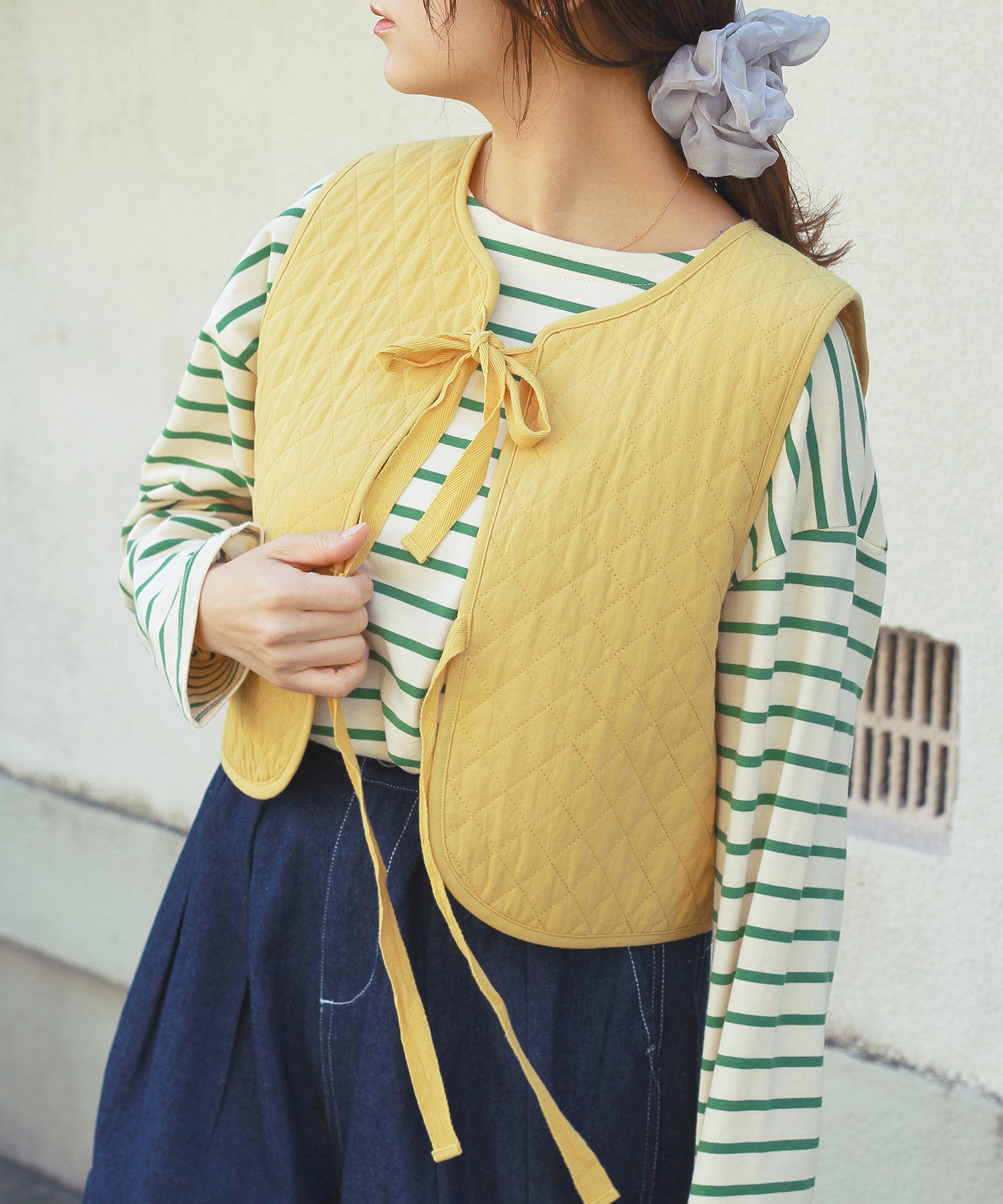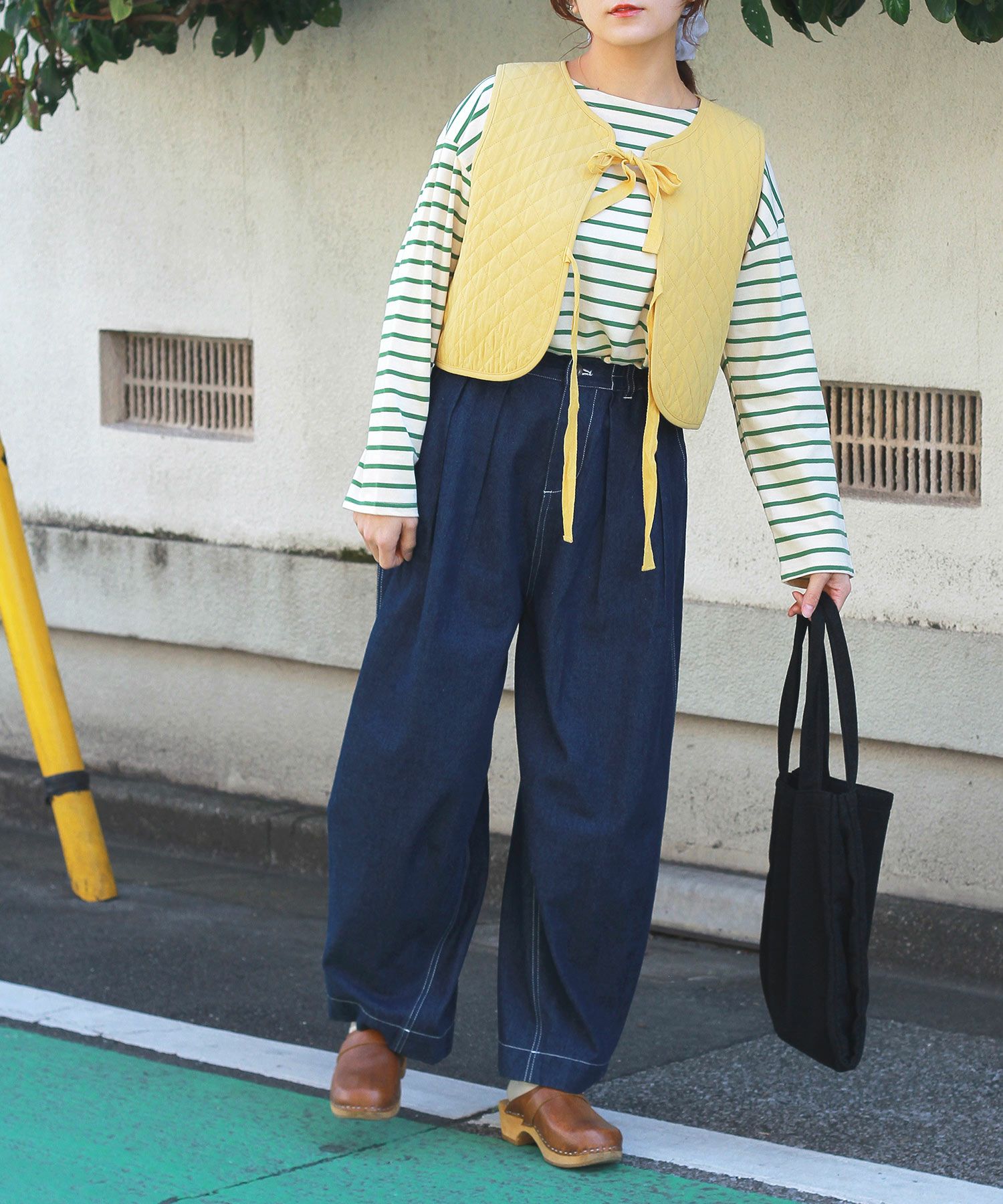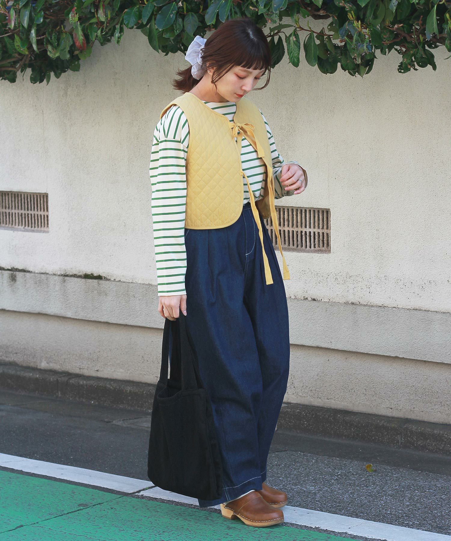 【セットアップ対応可】サイドリボンデニムレースベスト[c1R3423]