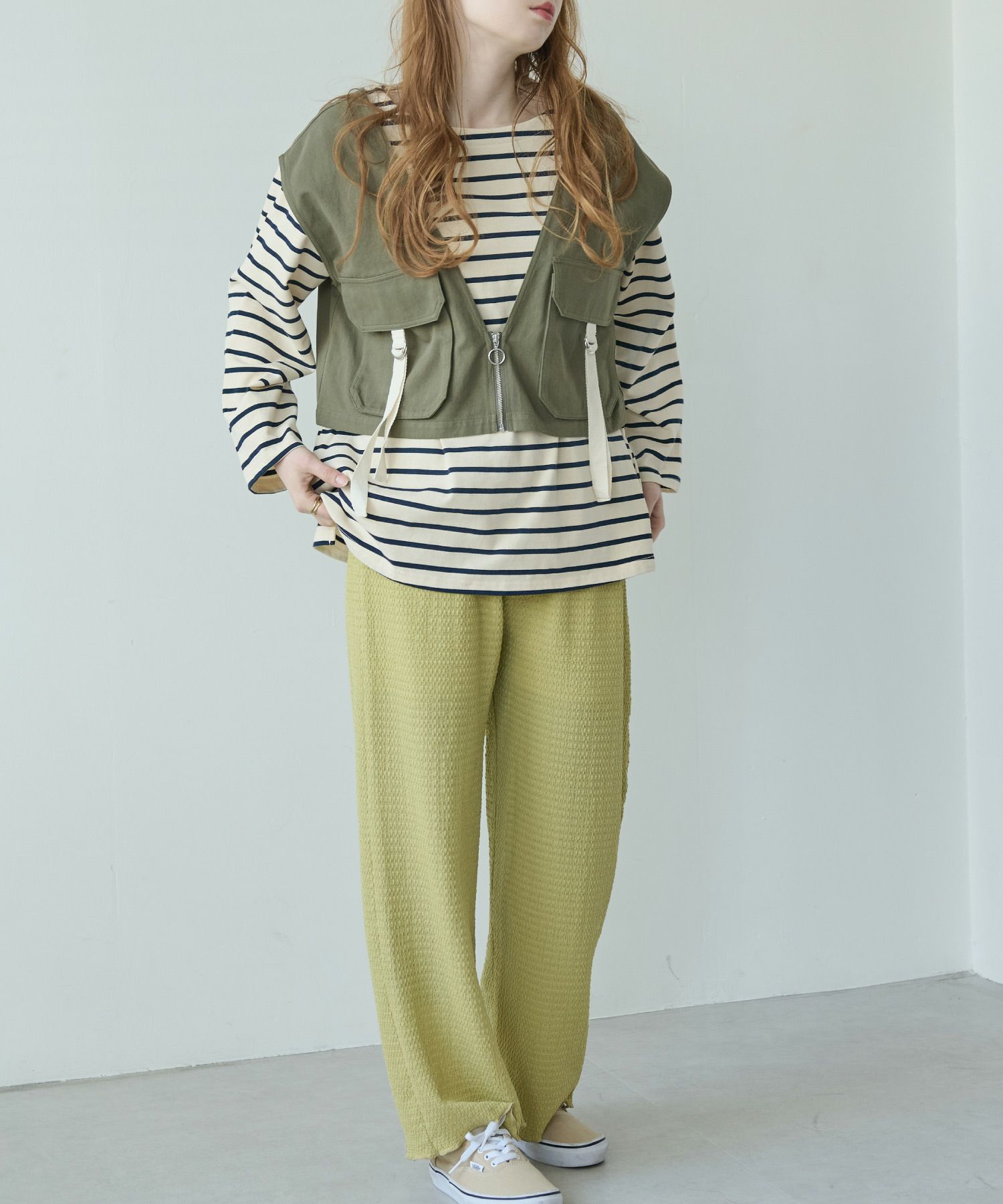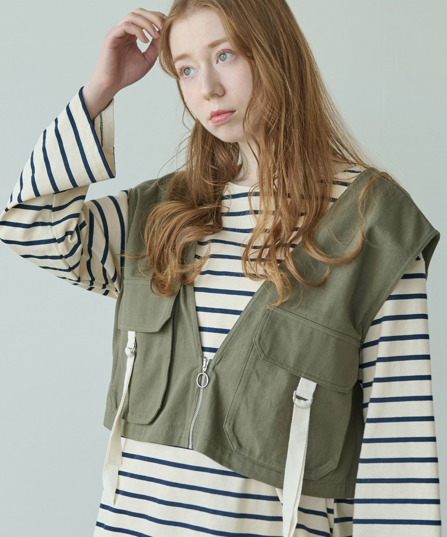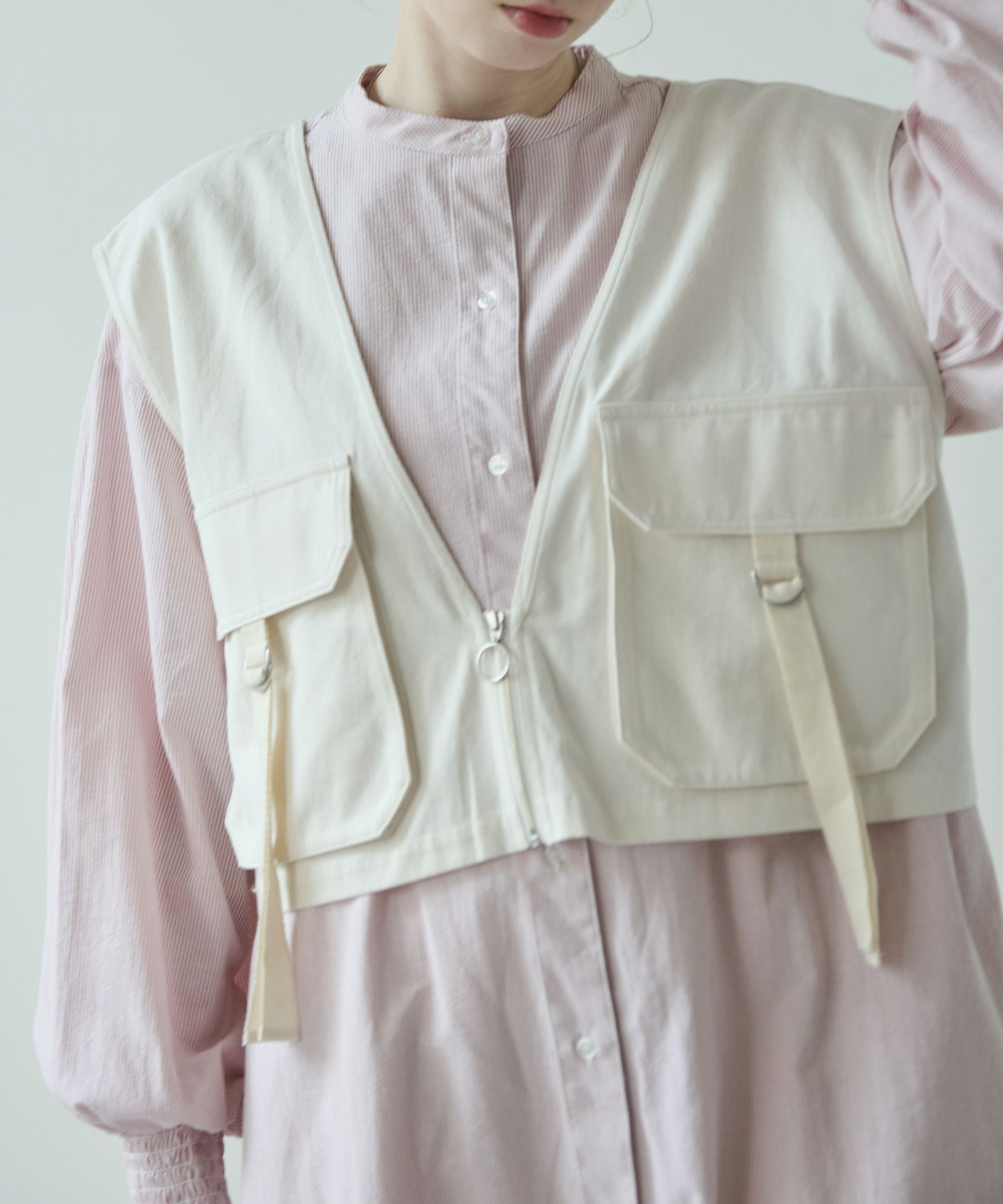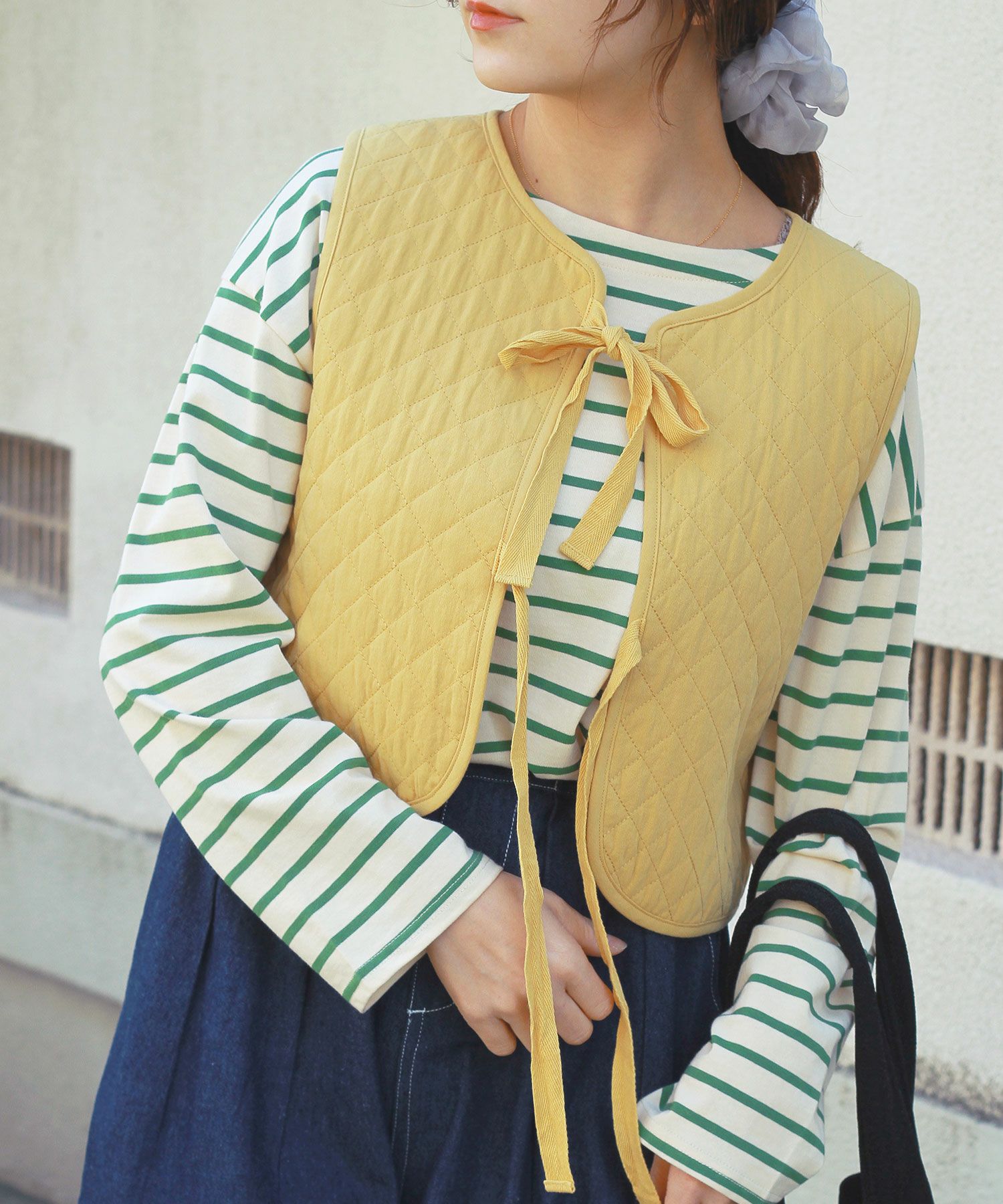 【セットアップ対応可】サイドリボンデニムレースベスト[c1R3423]