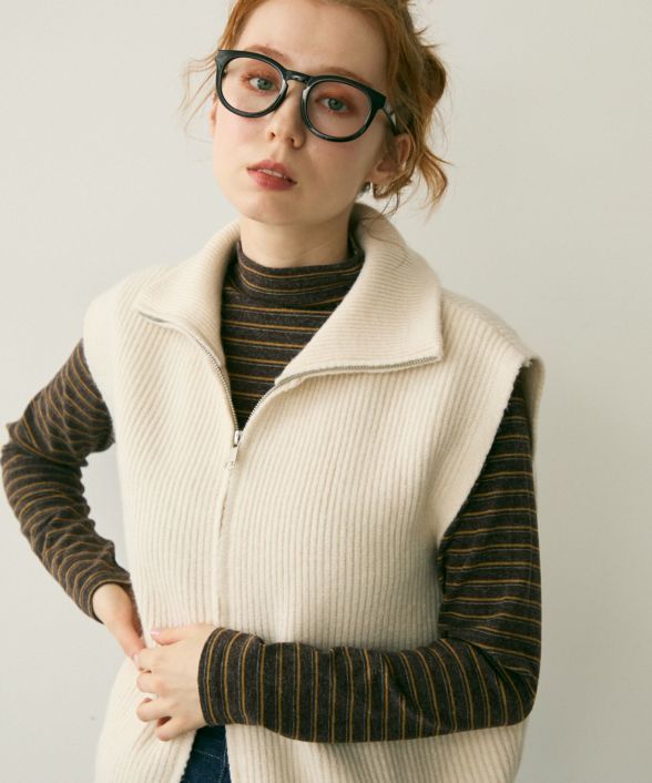 【フロントのジップデザインがアレンジ自在で着こなしの幅が広がるニットベスト】