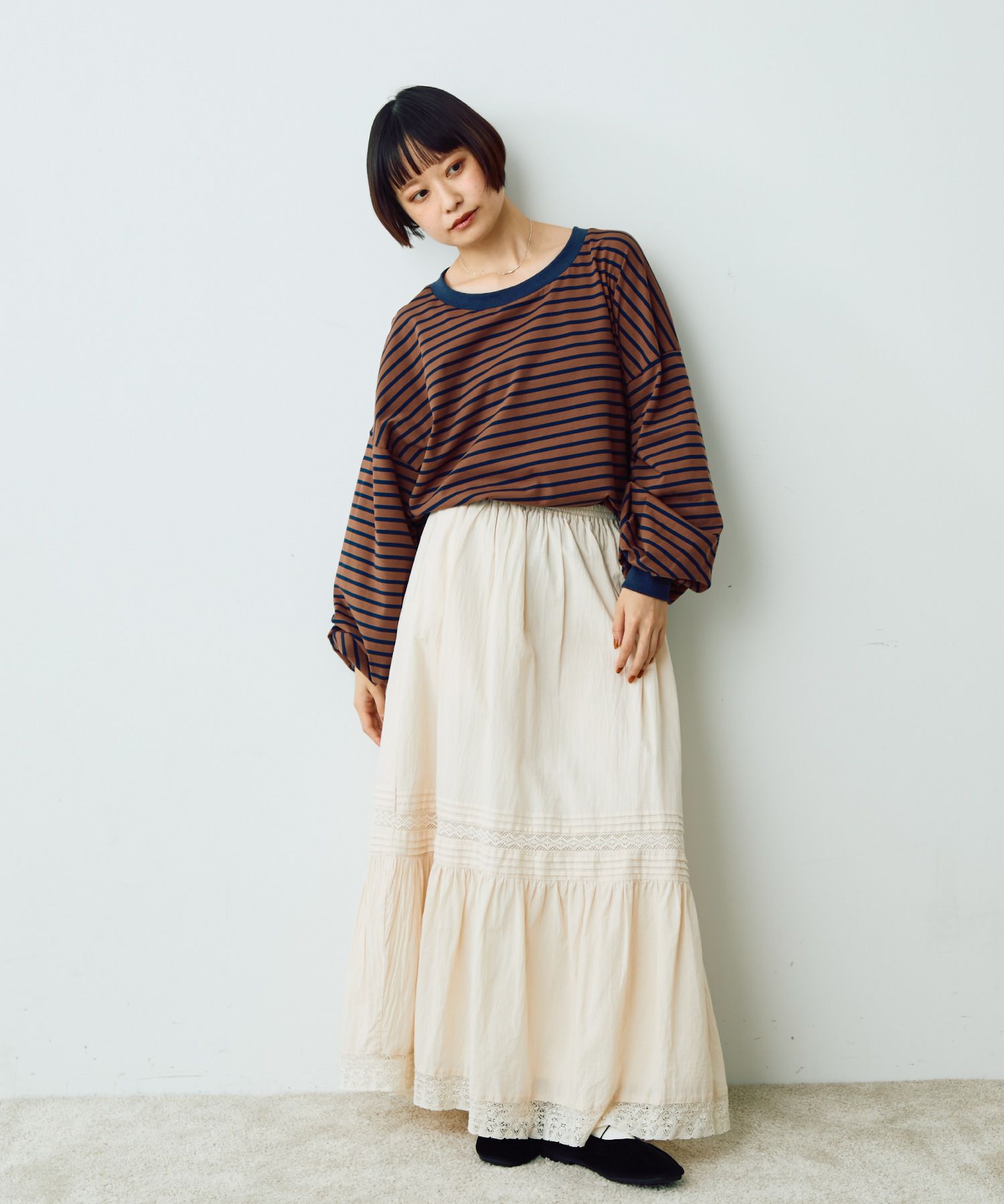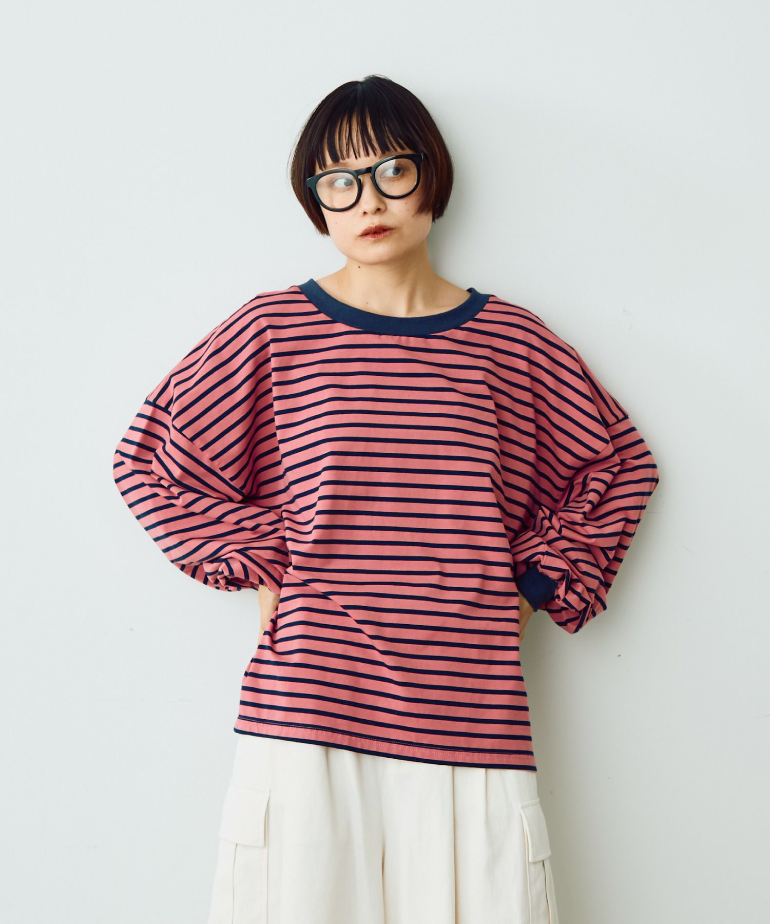 ボリュームボーダーTシャツ[c1R3781]