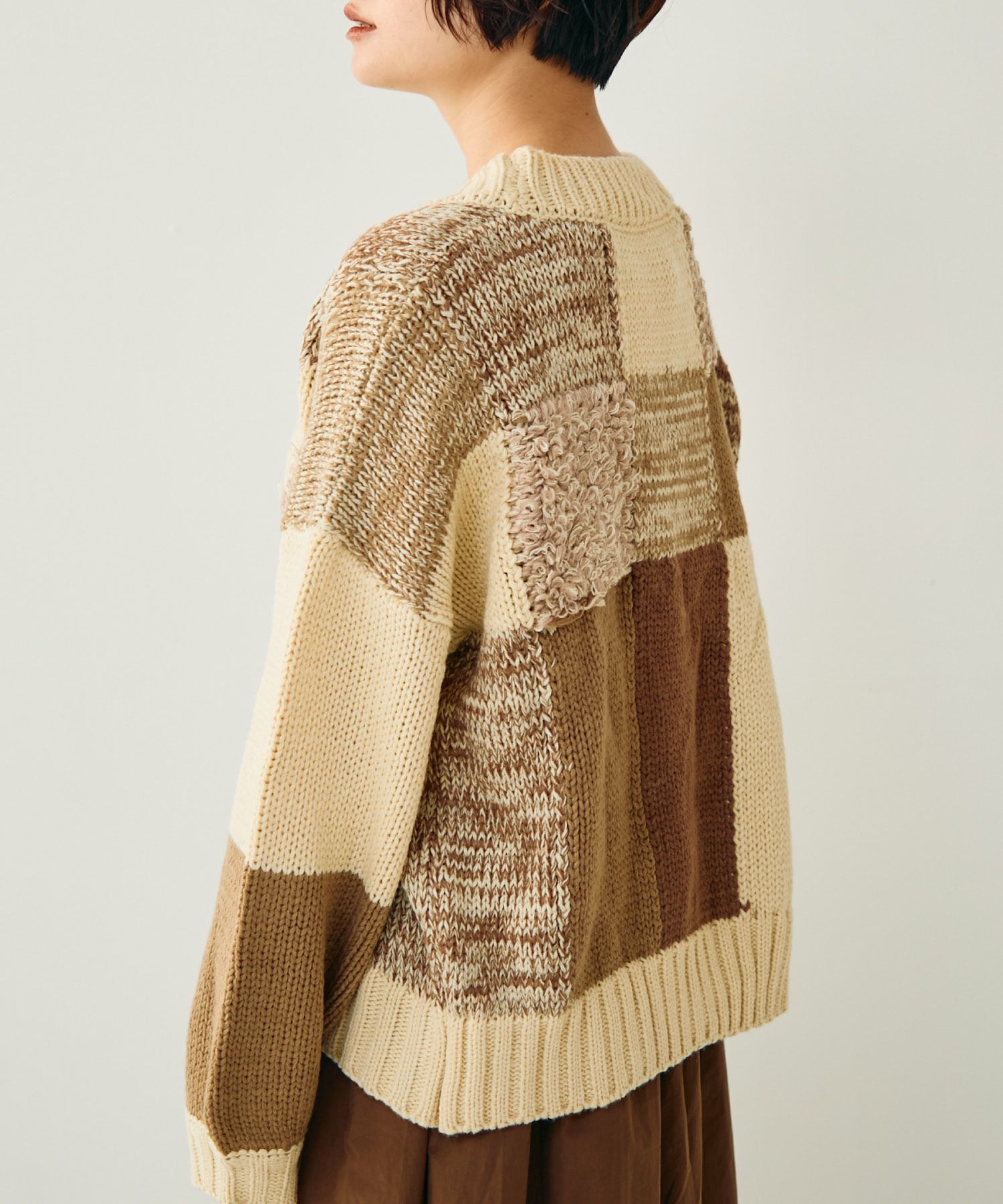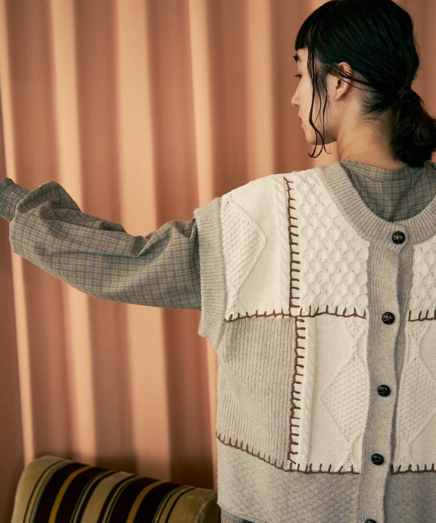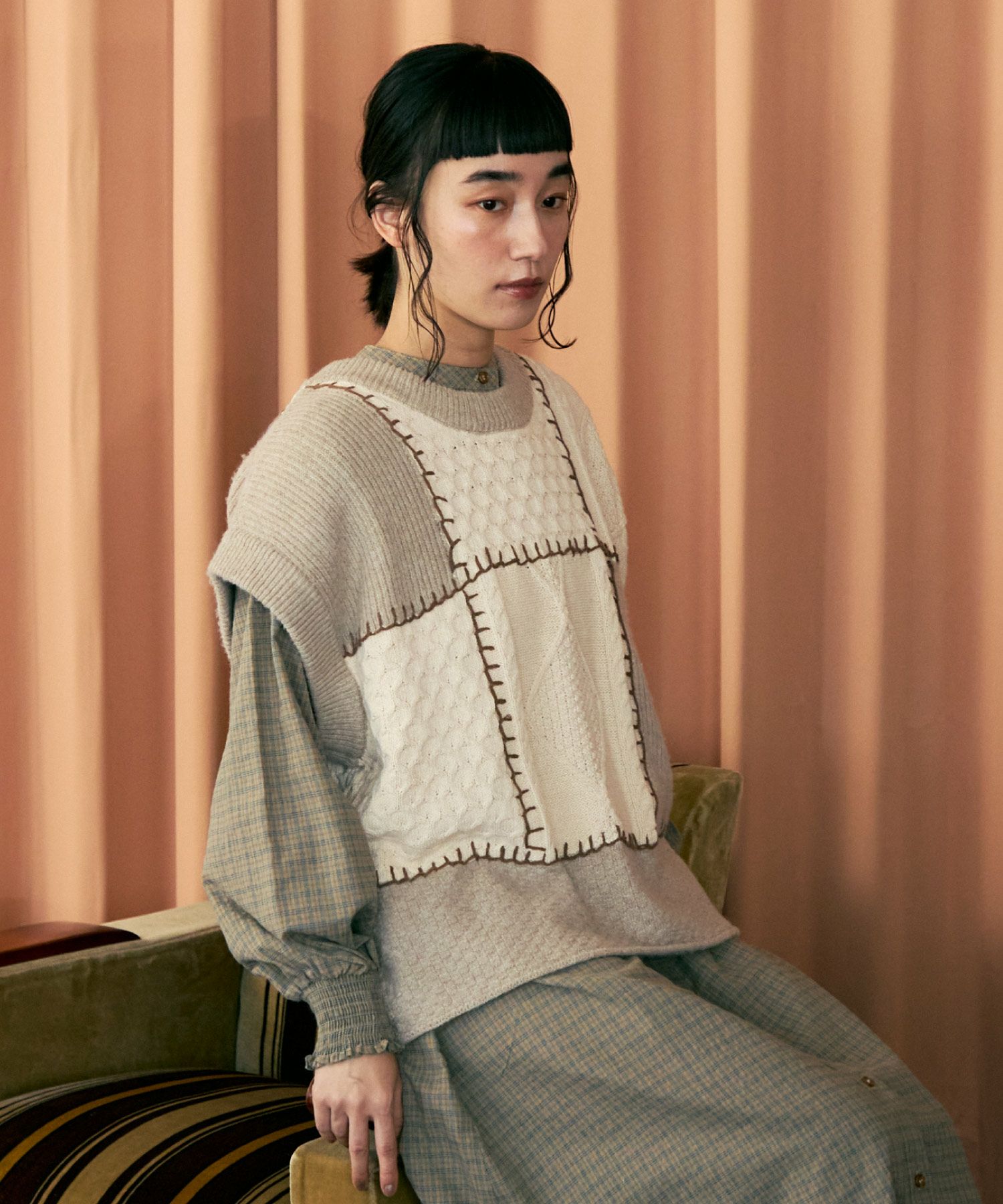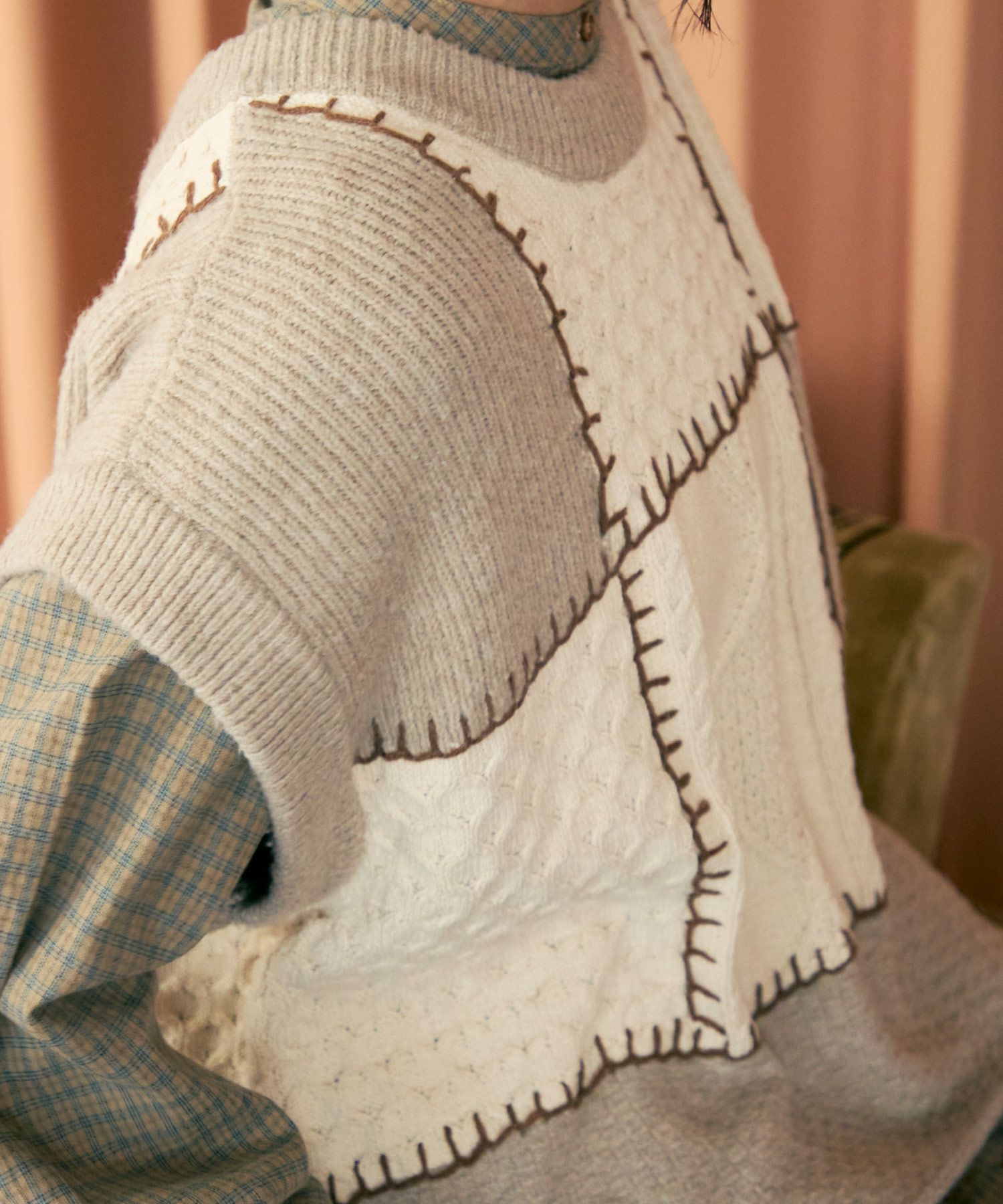パッチワーク2wayニットベスト[c1k3551]