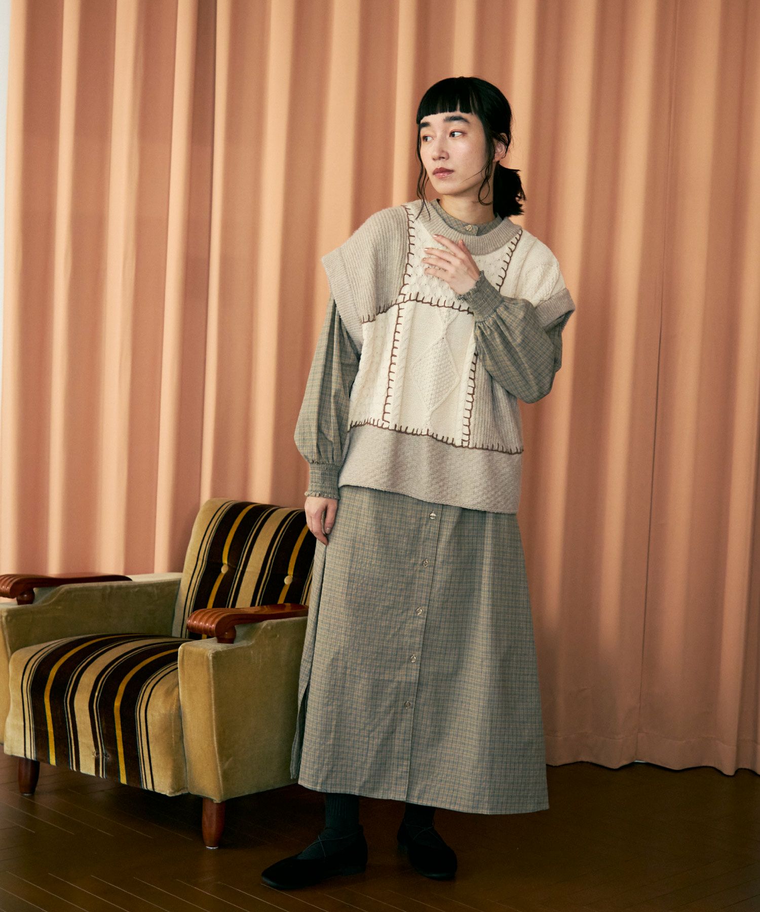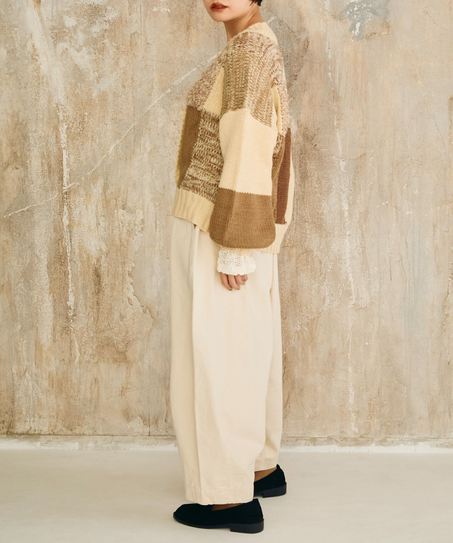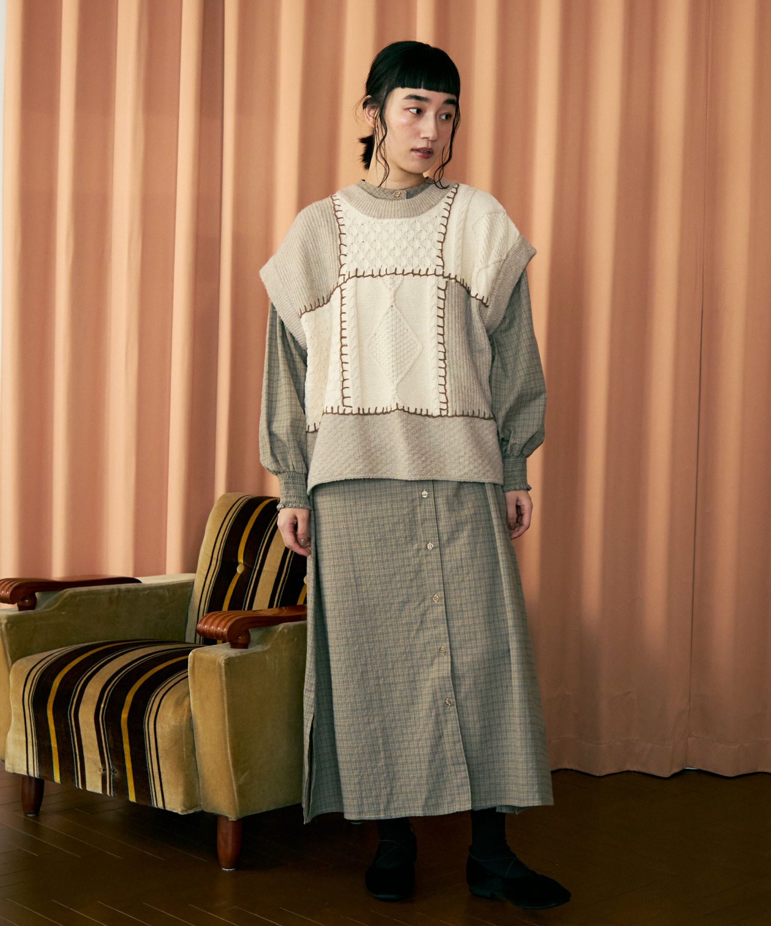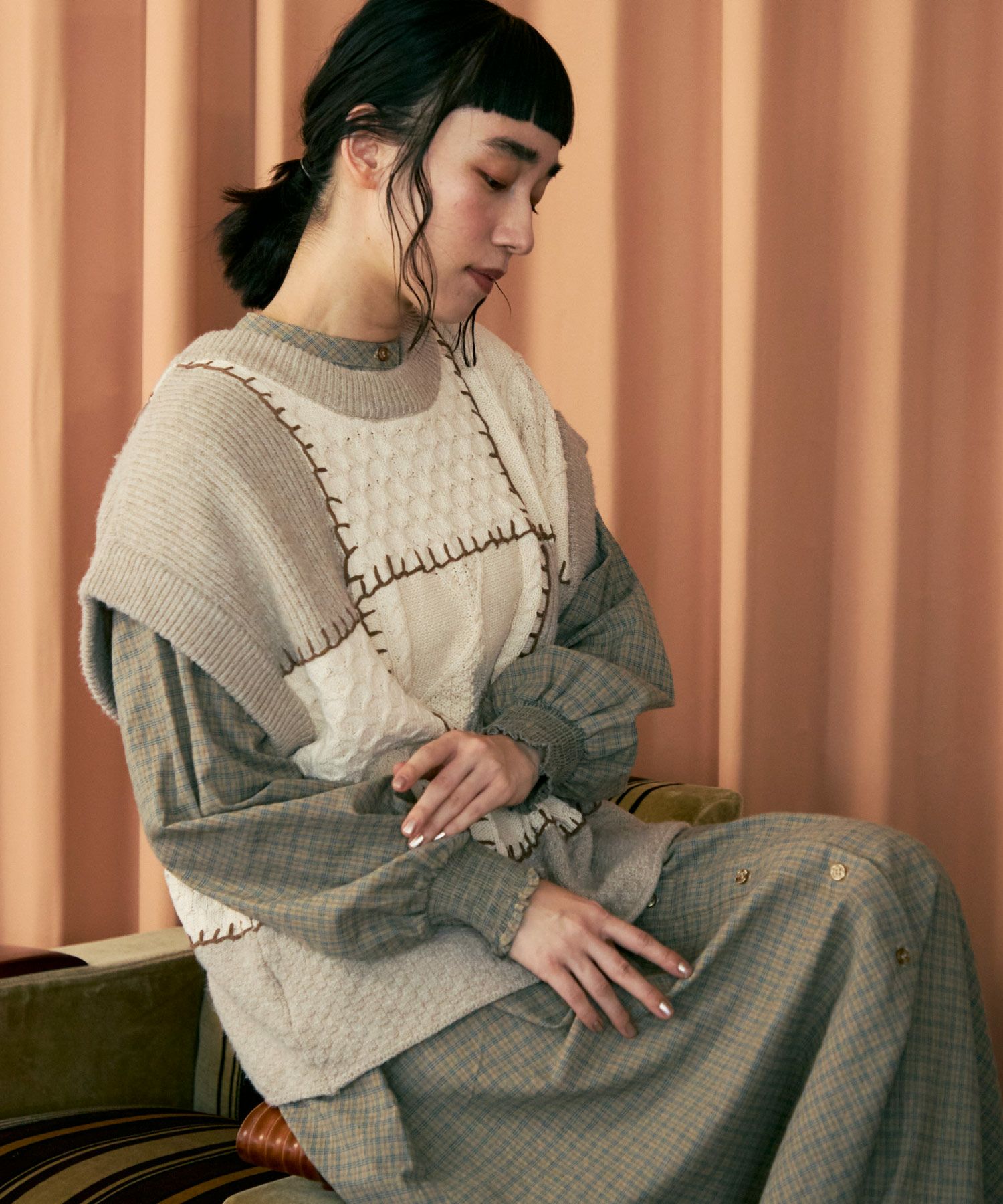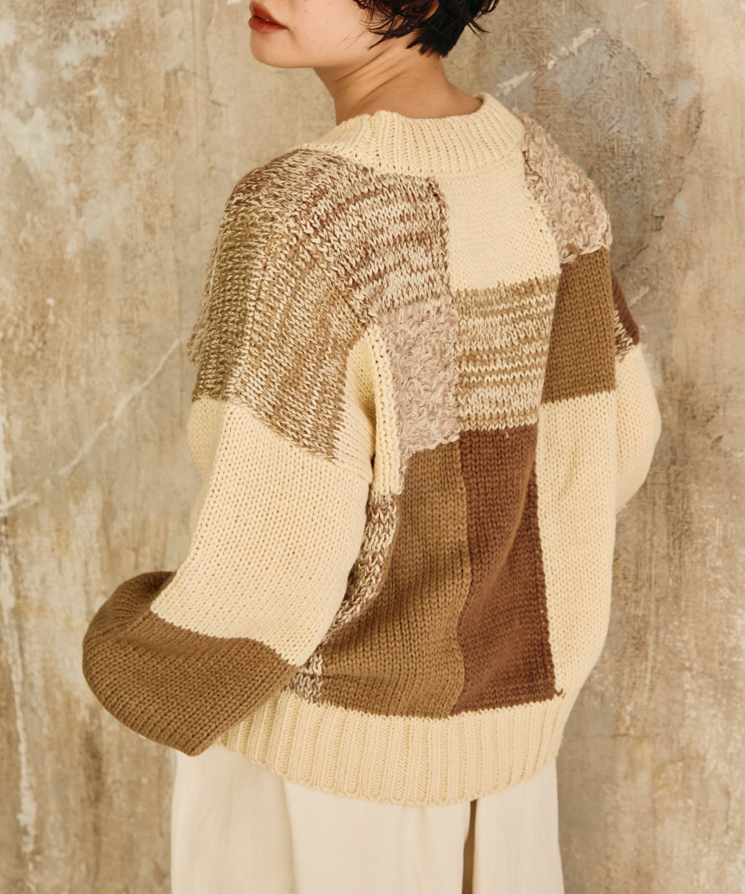 パッチワーク2wayニットベスト[c1k3551]
