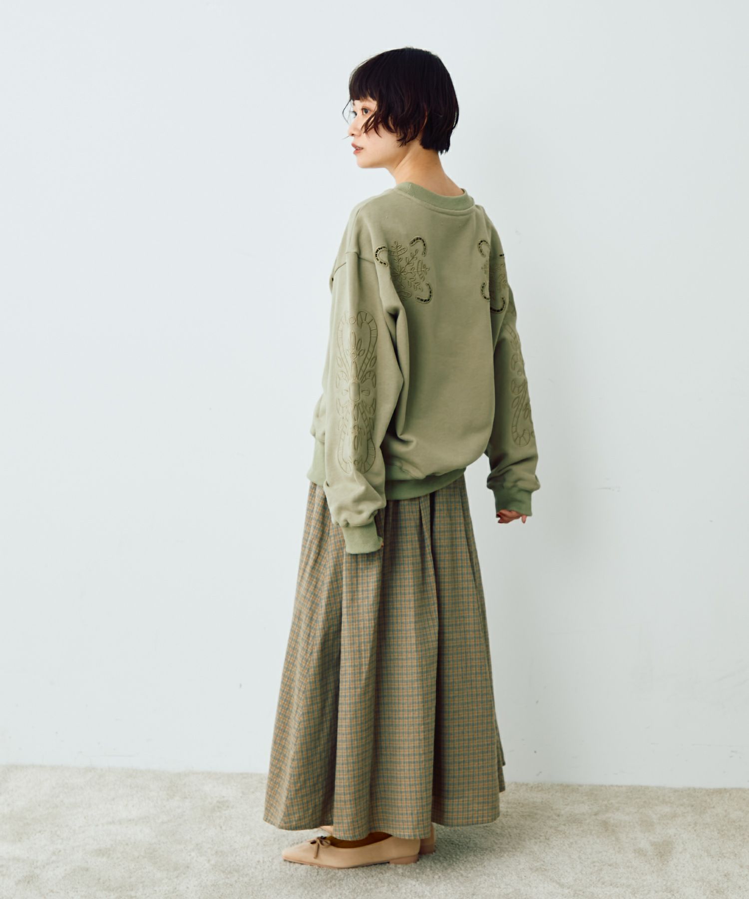 ヴィンテージカットワークデザインスウェット[c1k3786]