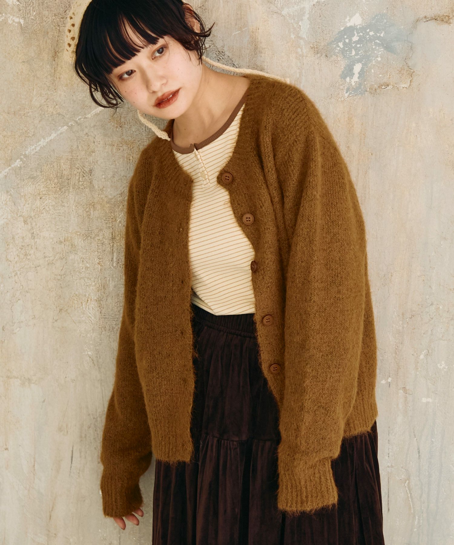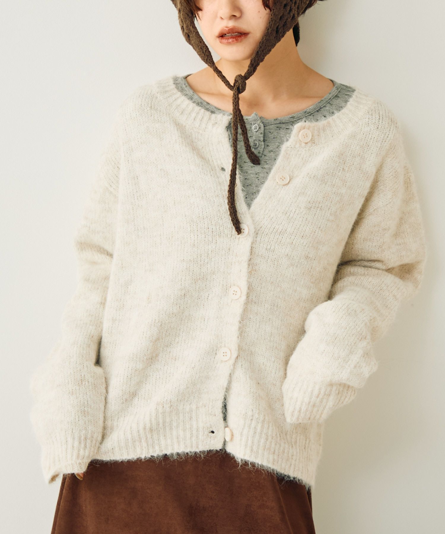 メランジシャギーオーバーニットカーディガン[c1k3740]