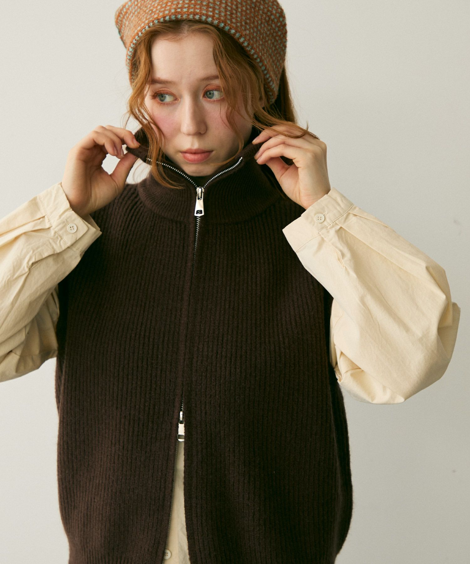 ダブルジップニットベスト[c1k3758b]