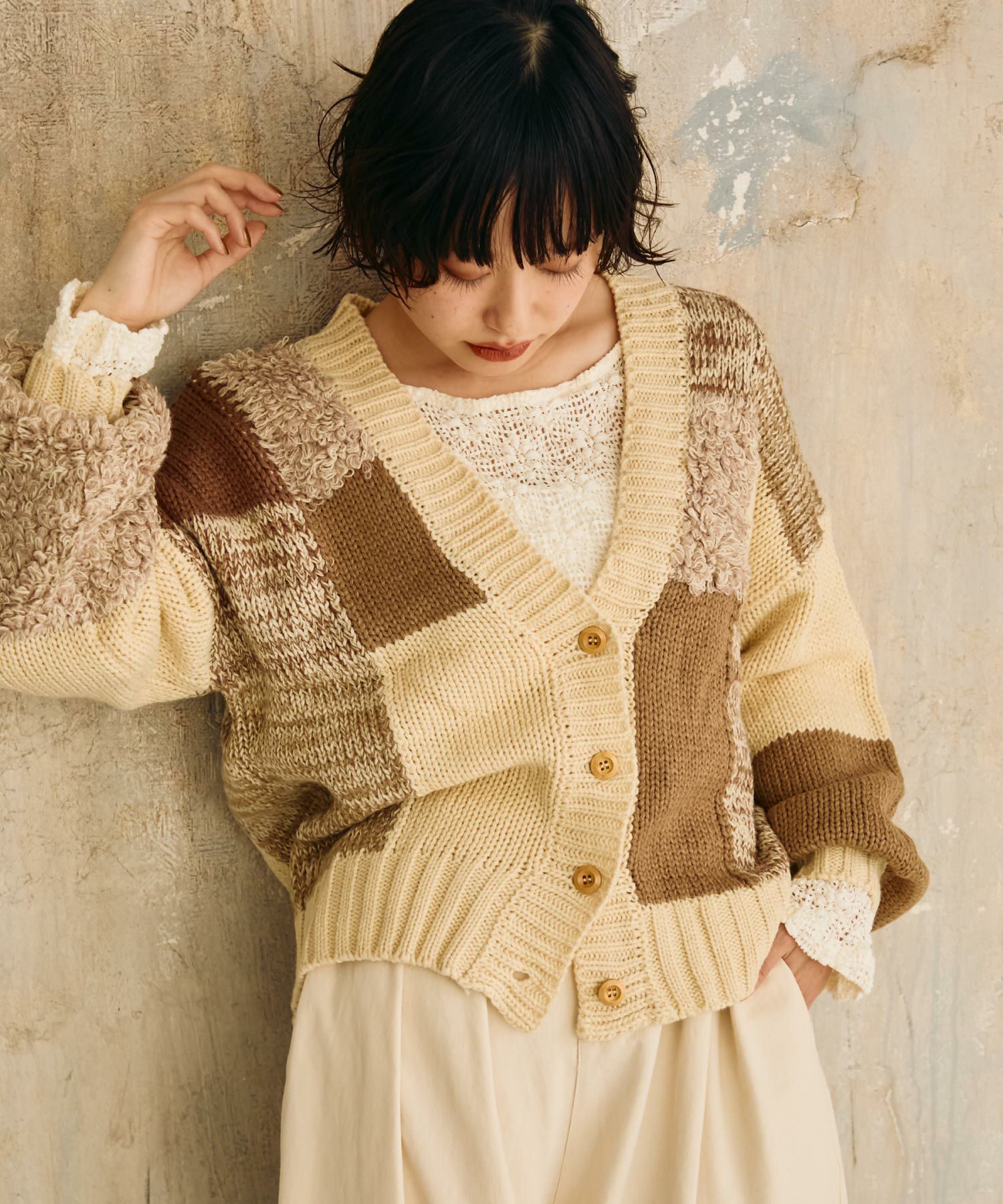 ミックスニットカーディガン[c1k3747]