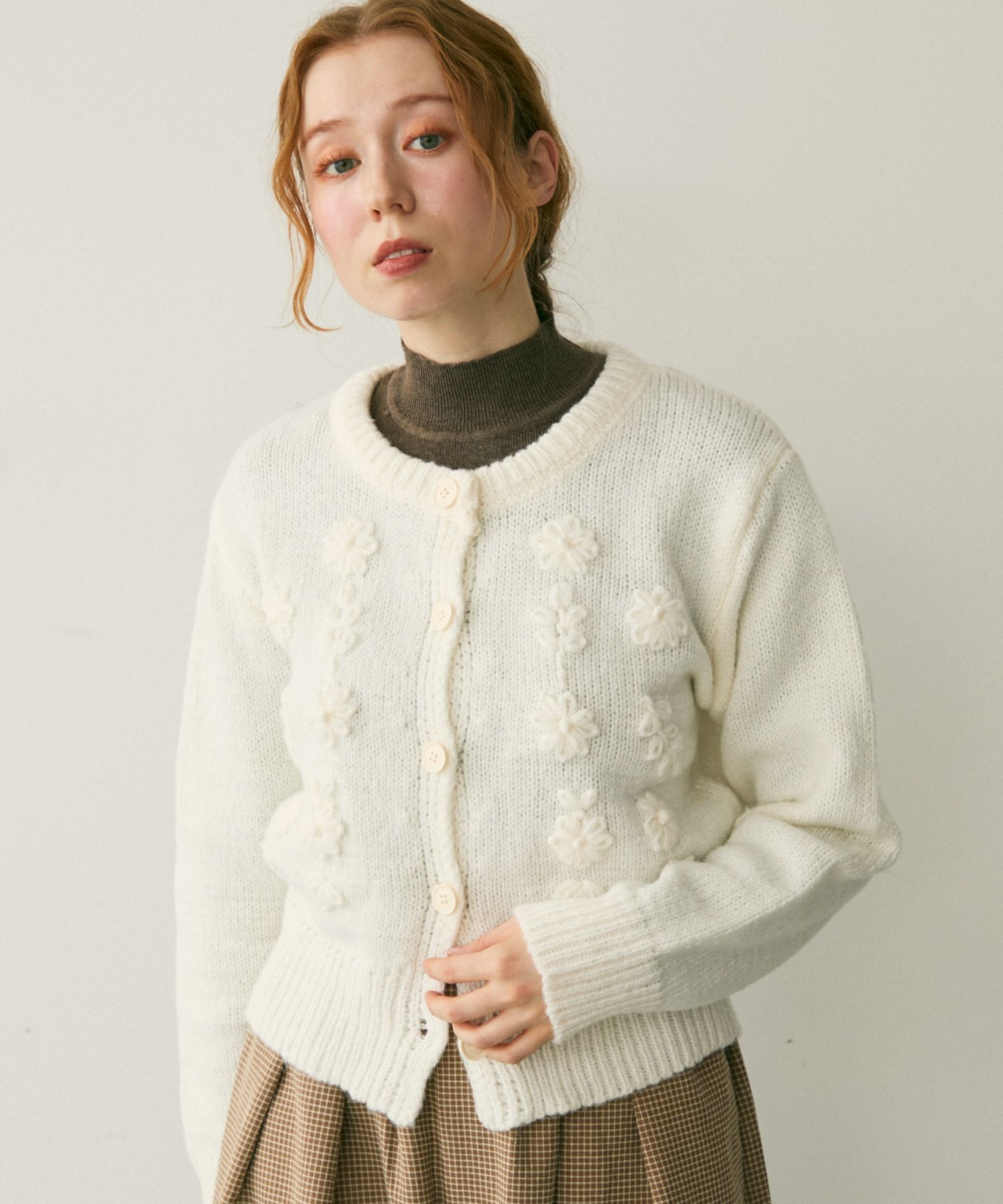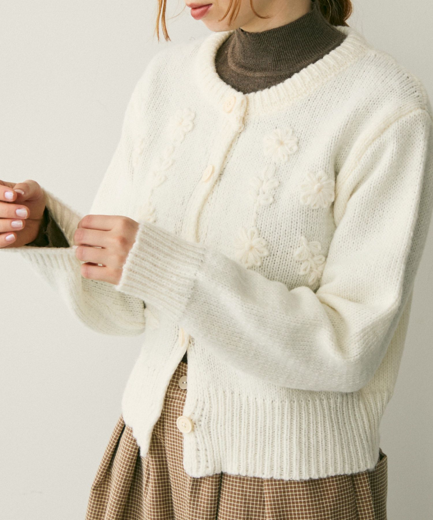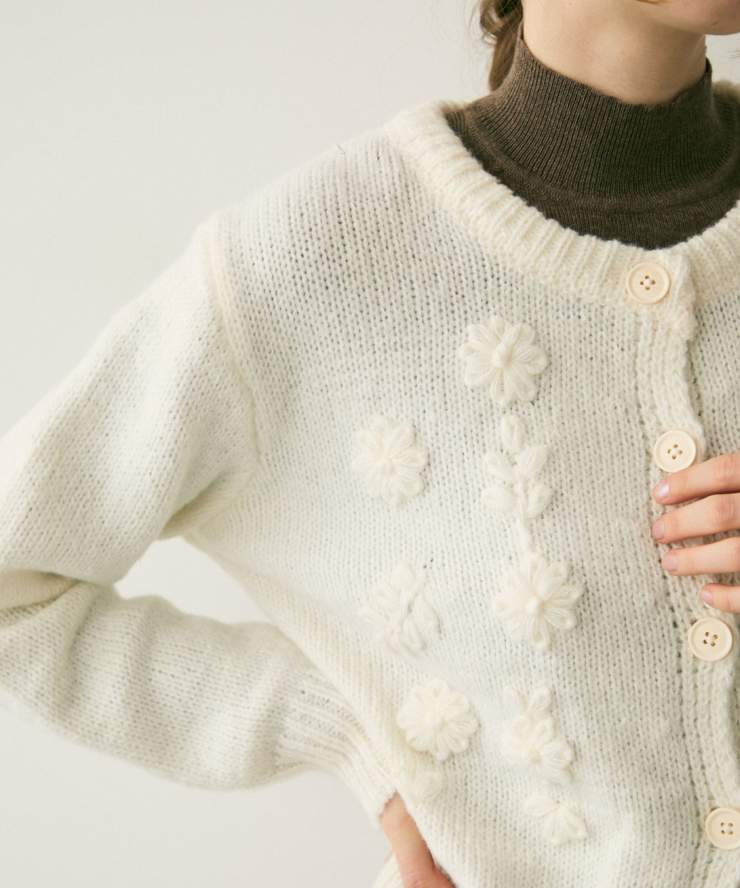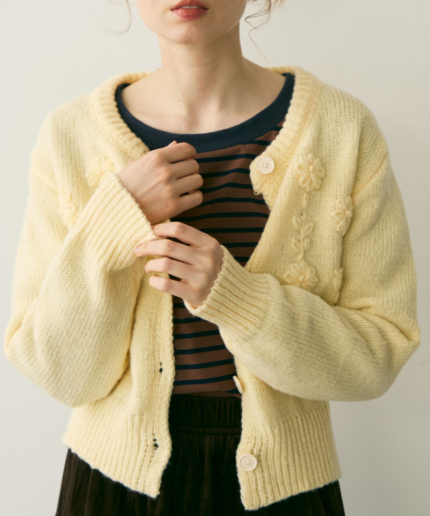 フラワー刺繍ニットカーディガン[c1k3748b]