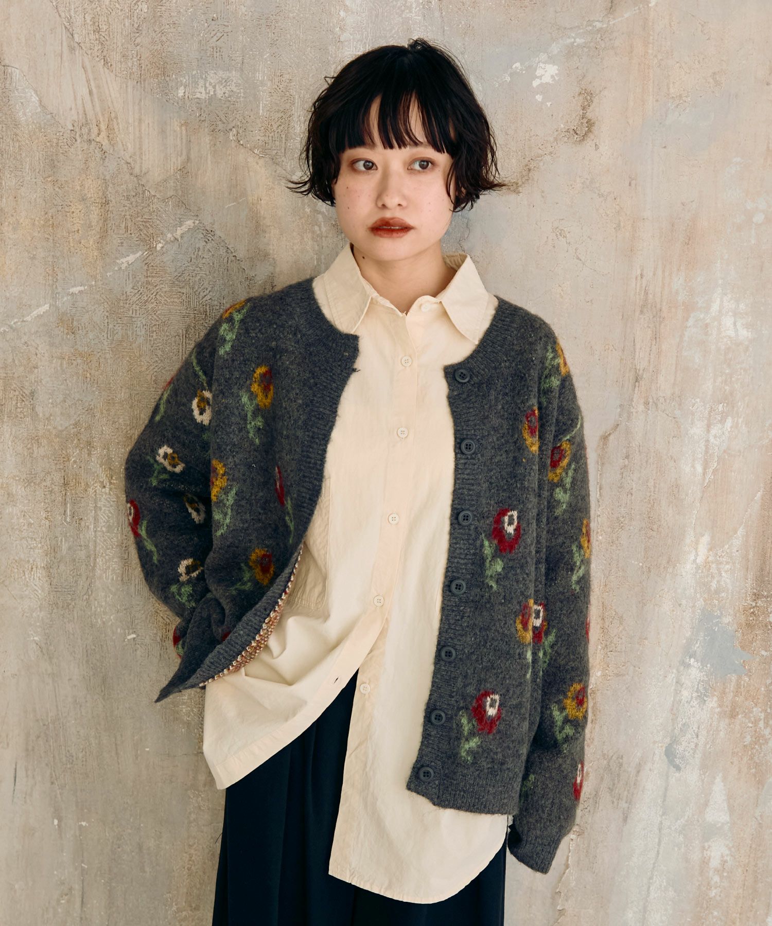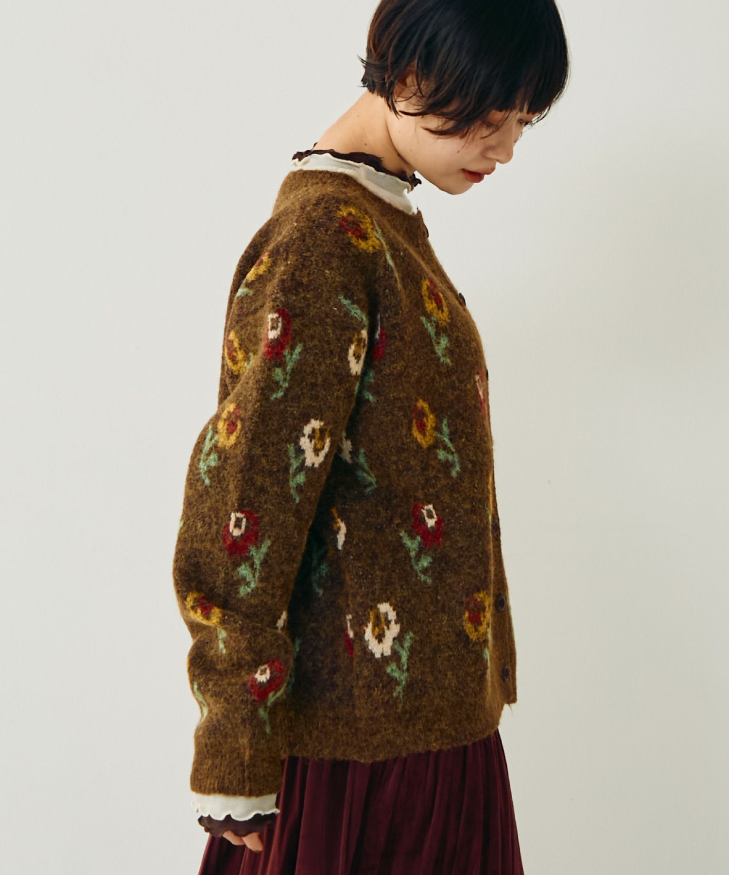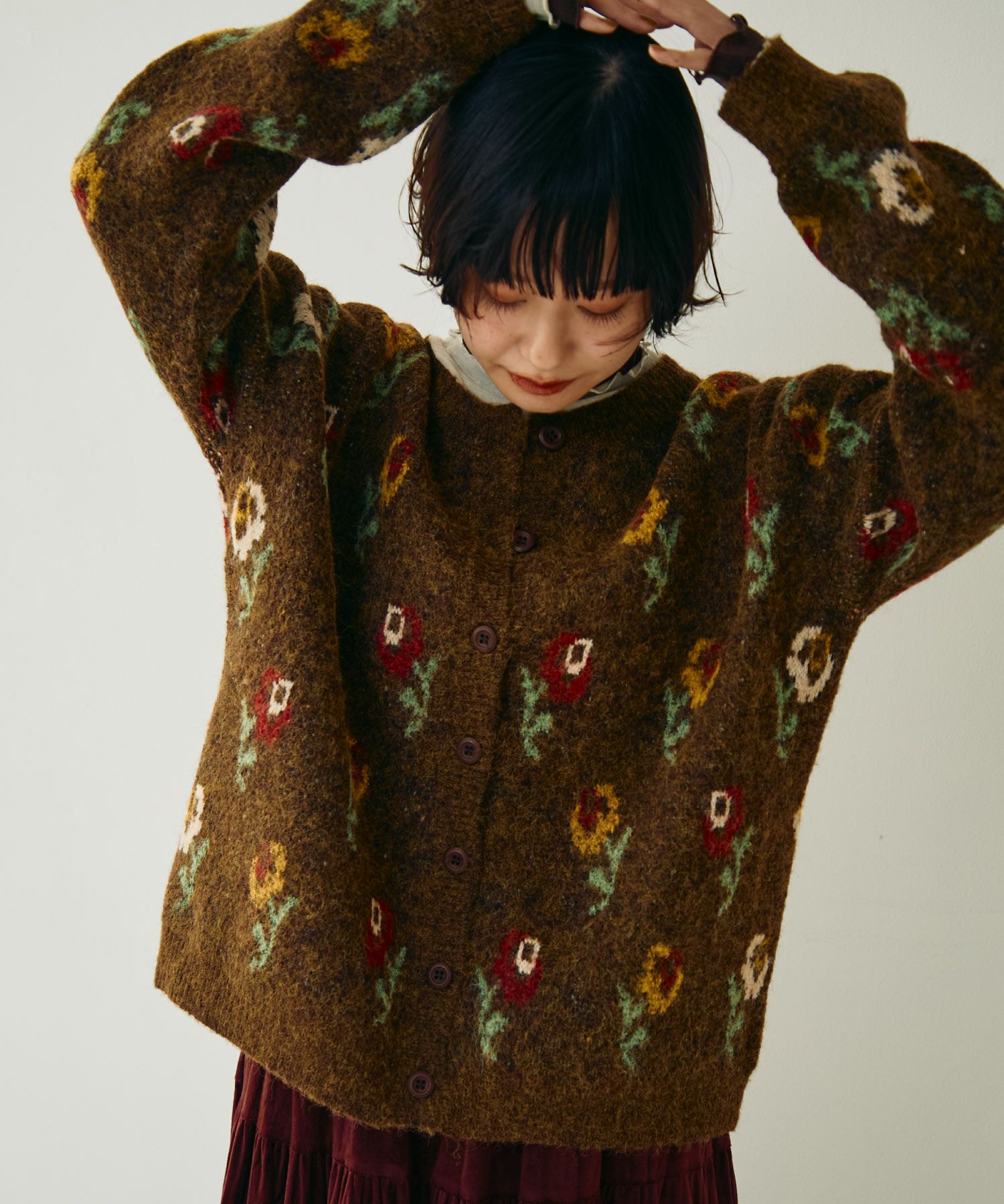 フラワーパターンニットカーディガン[c1k3750b]