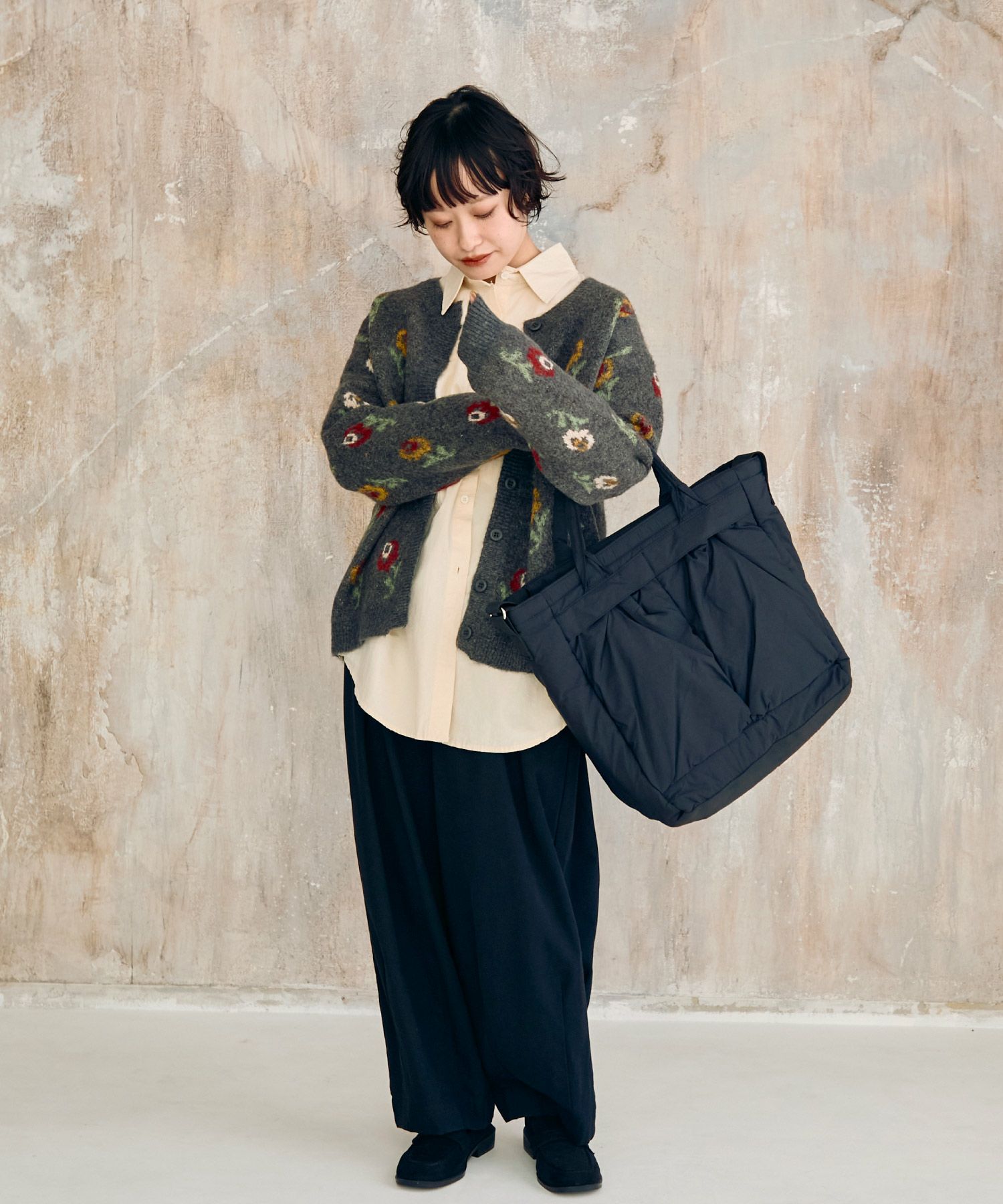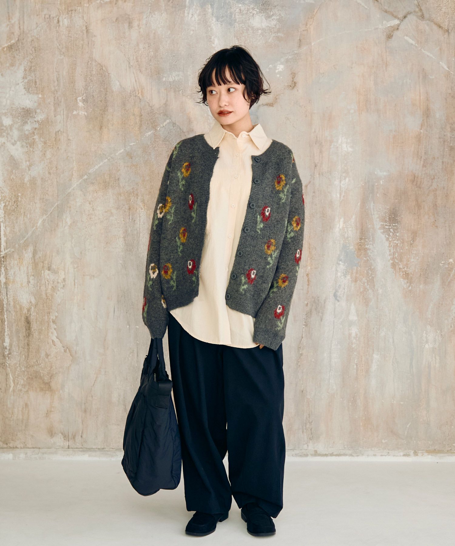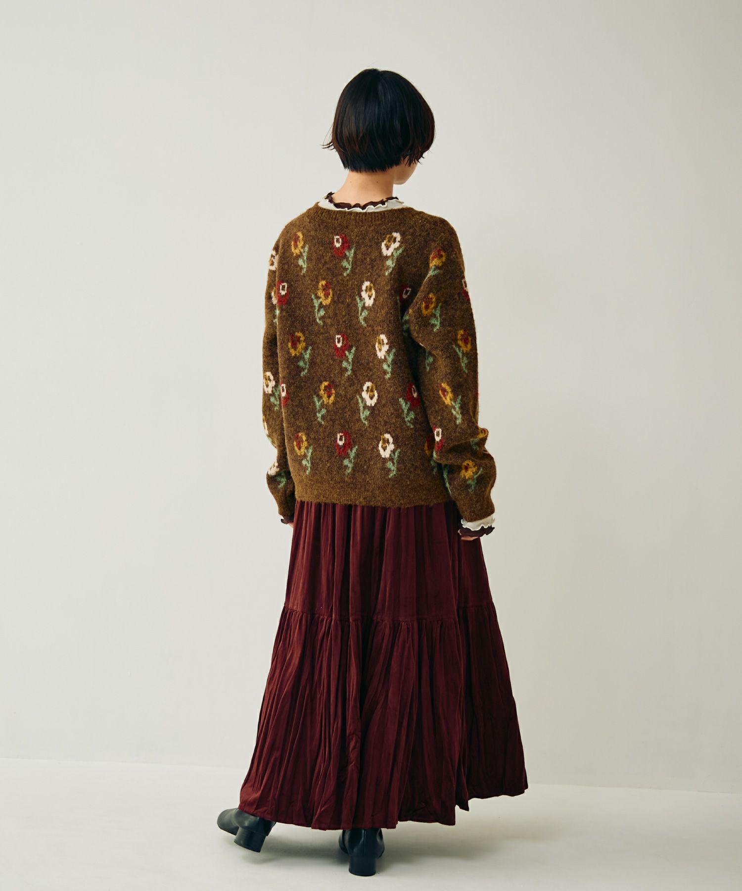 フラワーパターンニットカーディガン[c1k3750b]