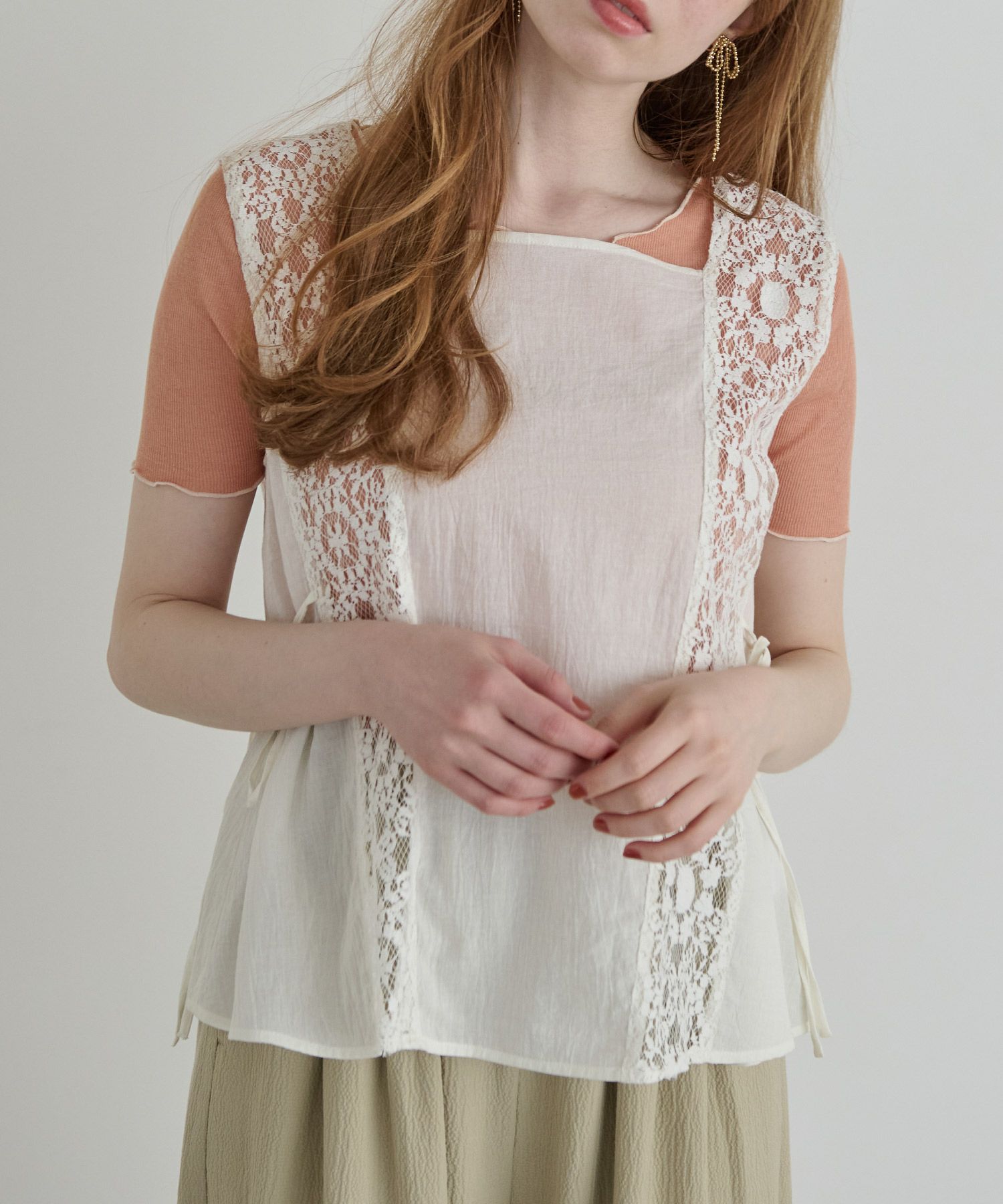サイドラインレースブラウス[c1R3422]