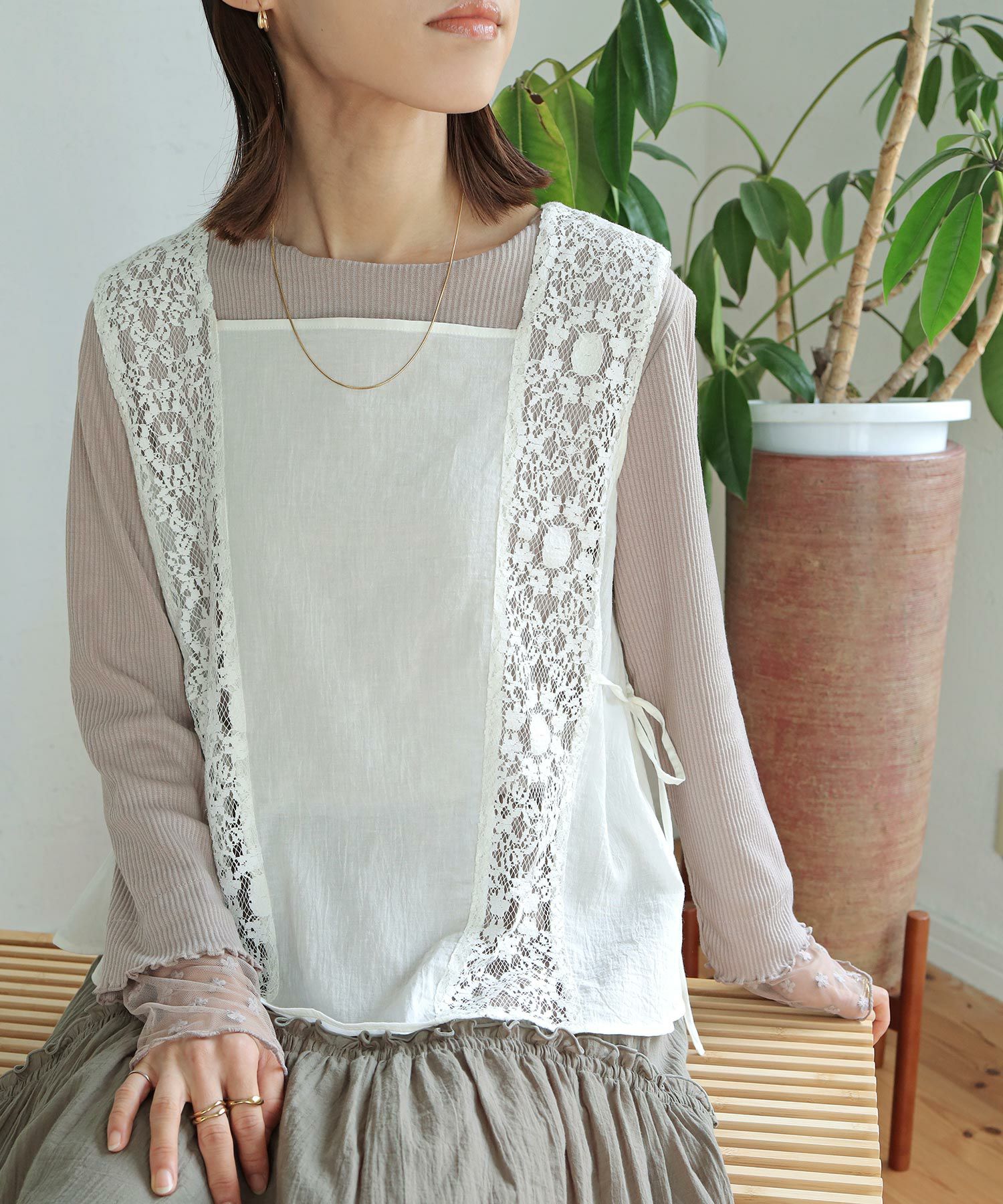 サイドリボンベスト[c1R3604]