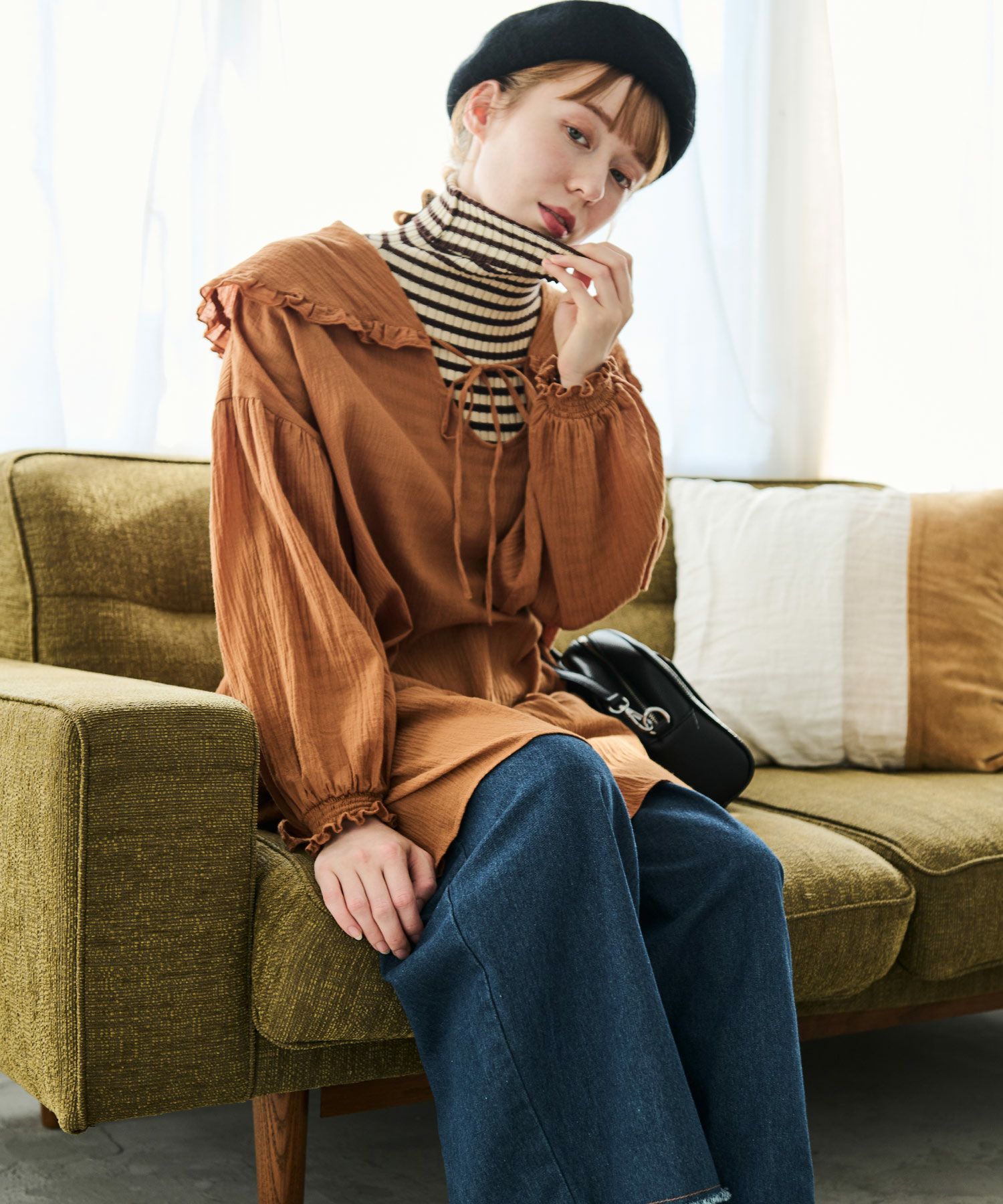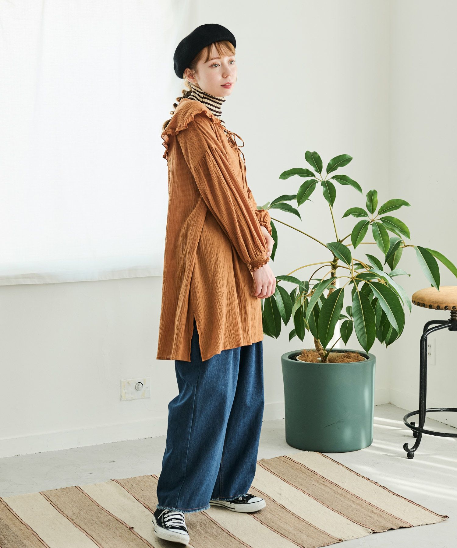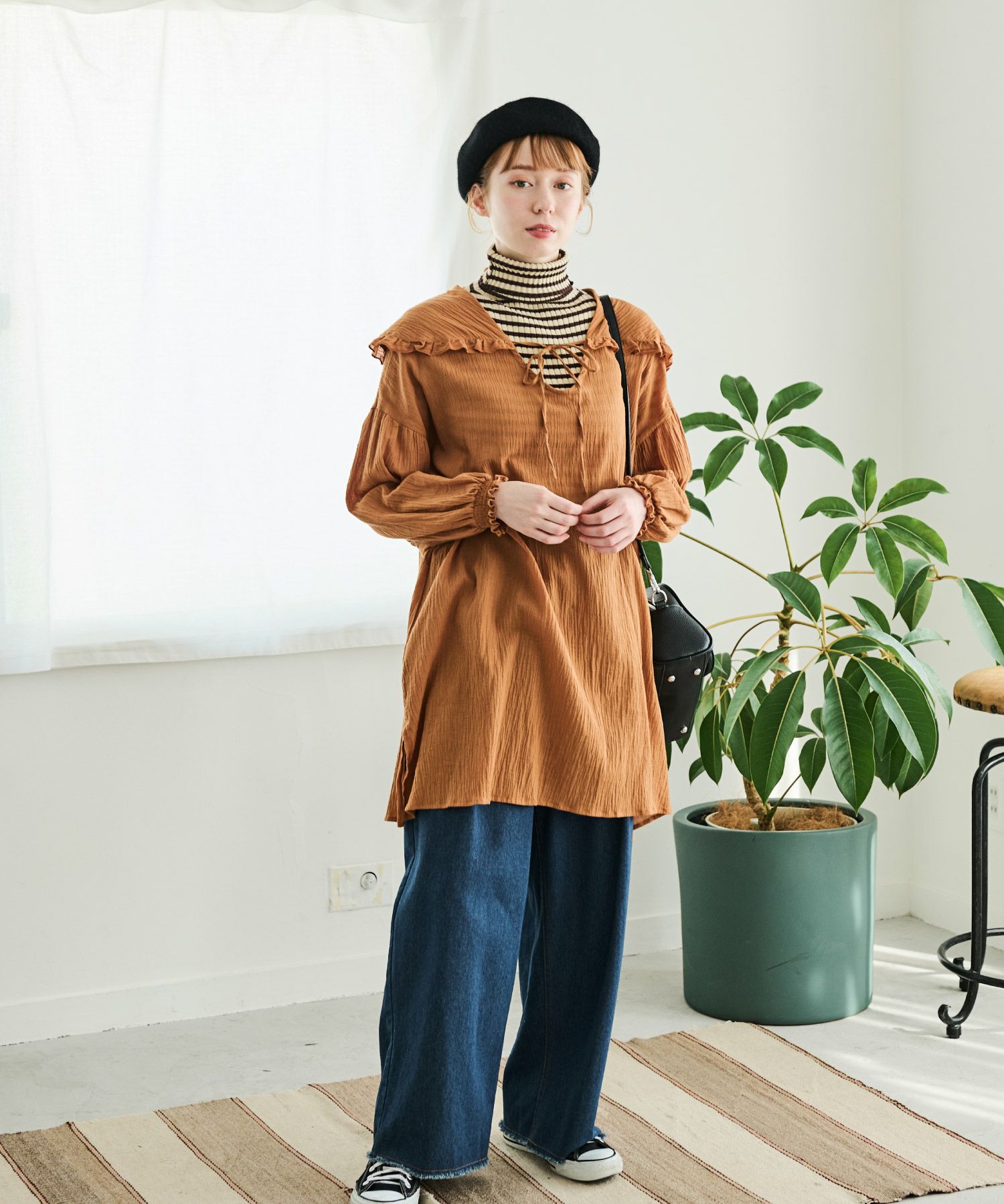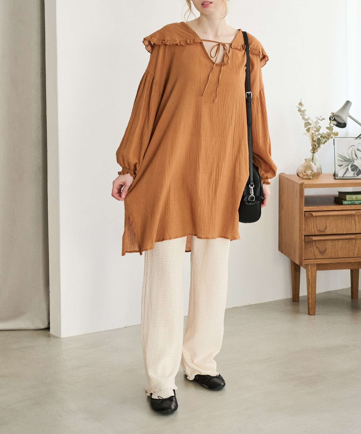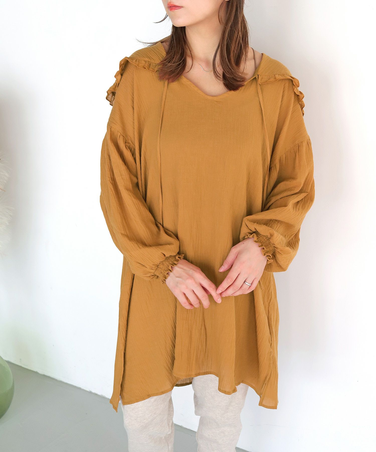 フリルカラースキッパーロングチュニック[c1R3500]