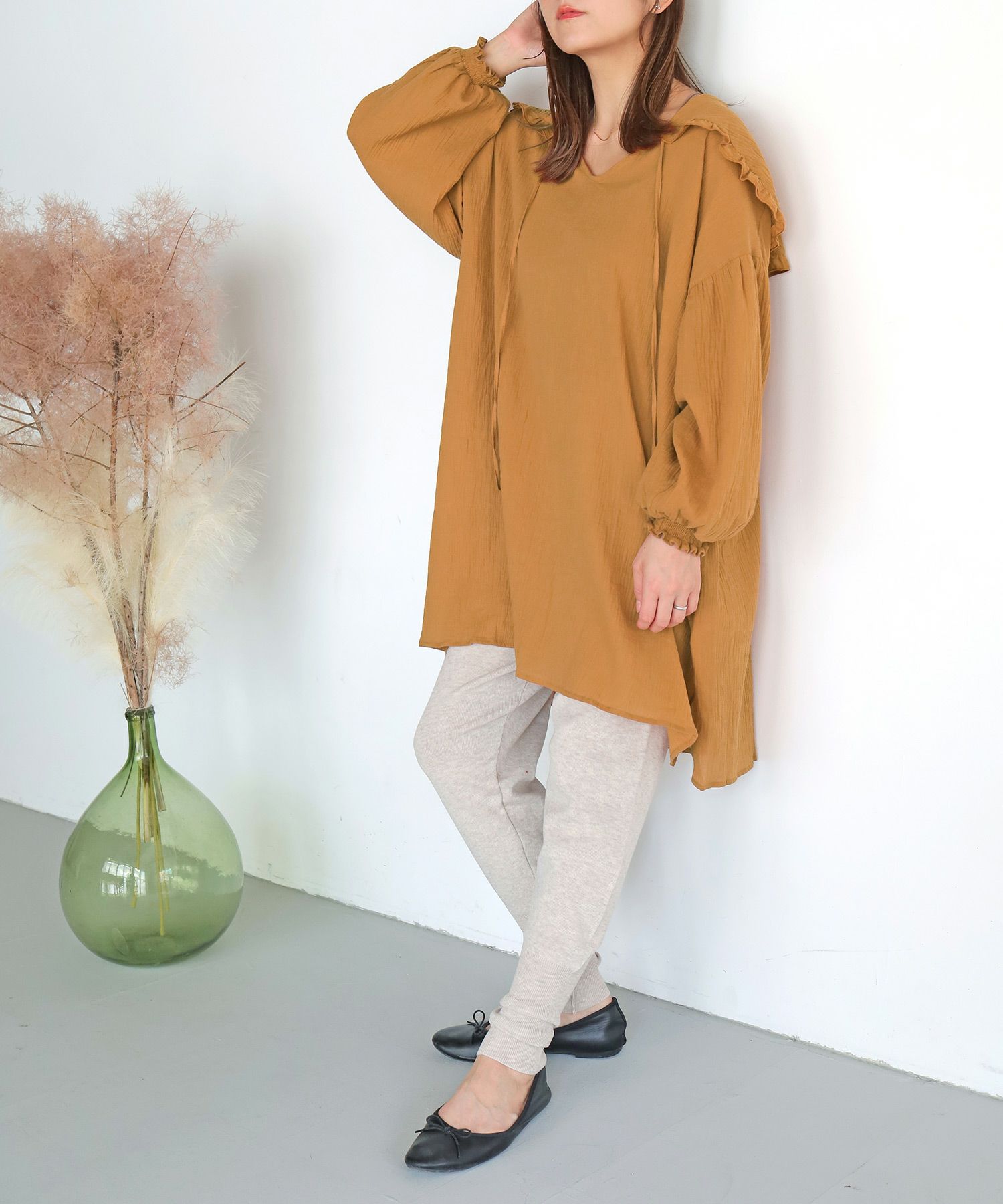 シャーリングギャザーチュニック[c1R3506]