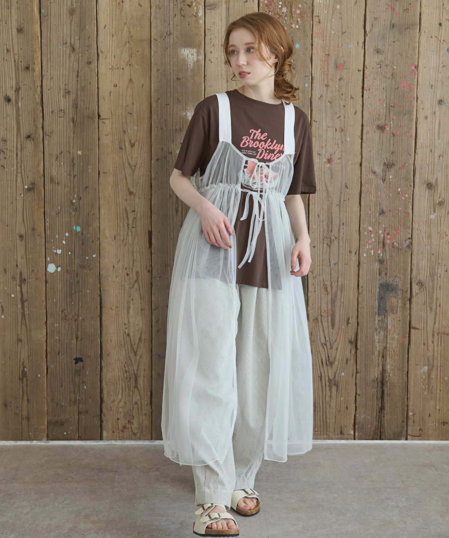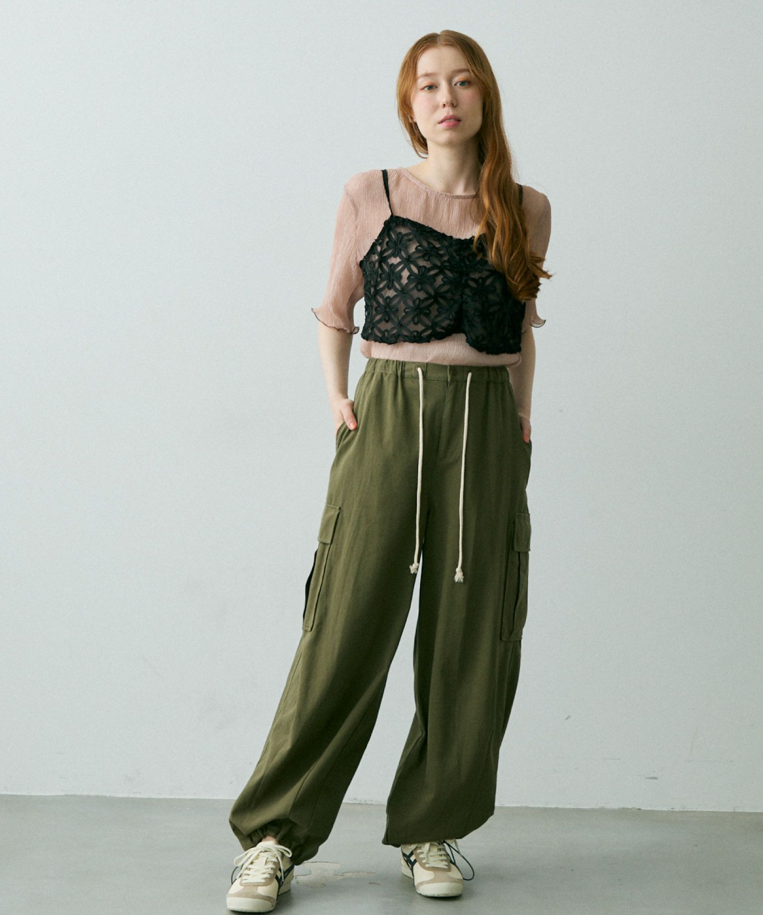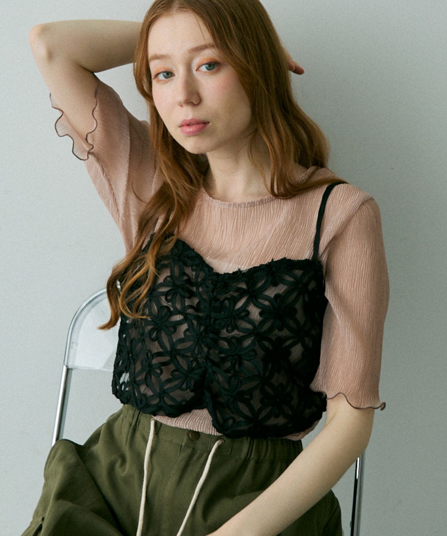 フラワーテープメッシュトップス[c1k3704b]