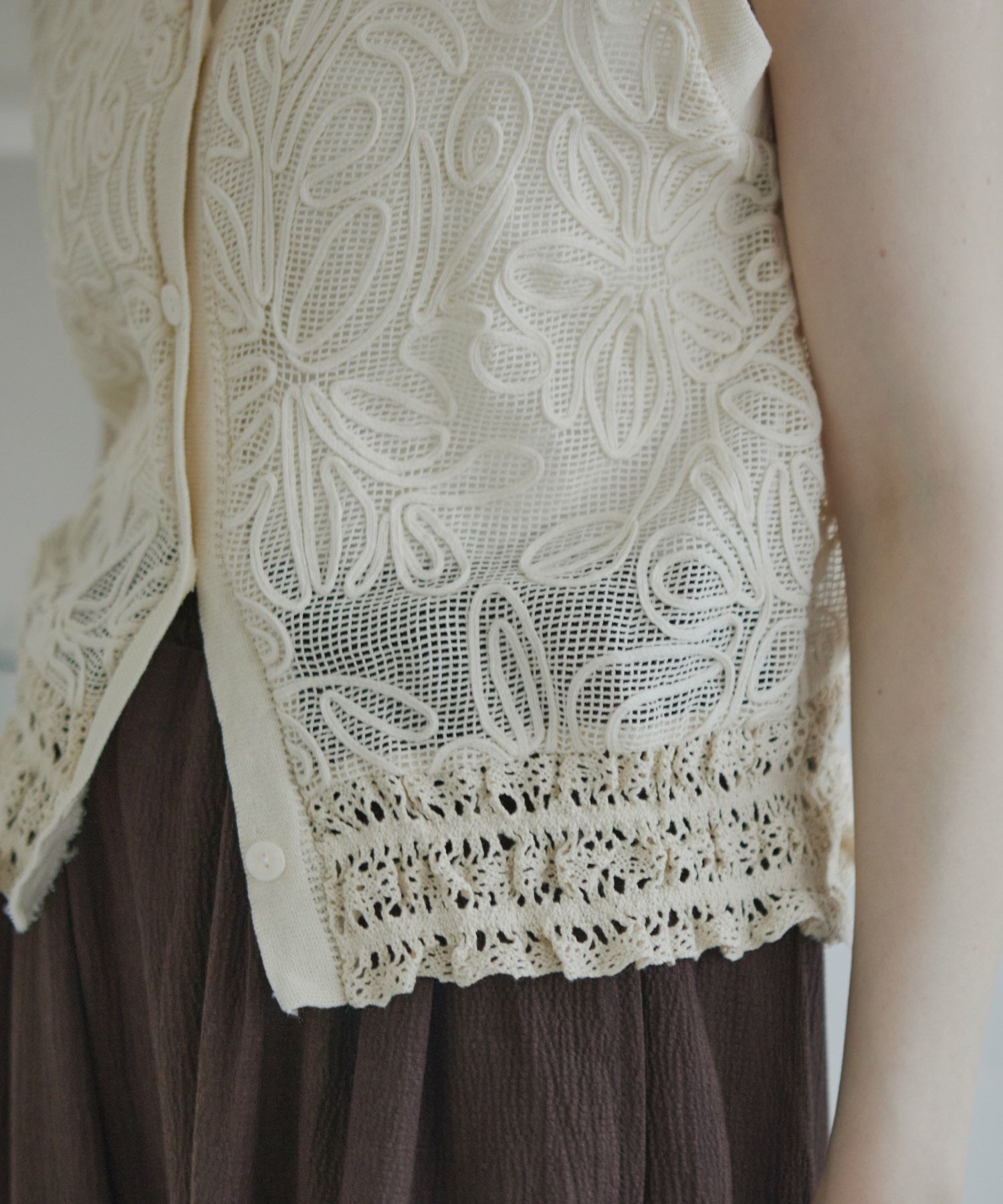ラウンドヘムクロシェレーストップス[c1k3621b]