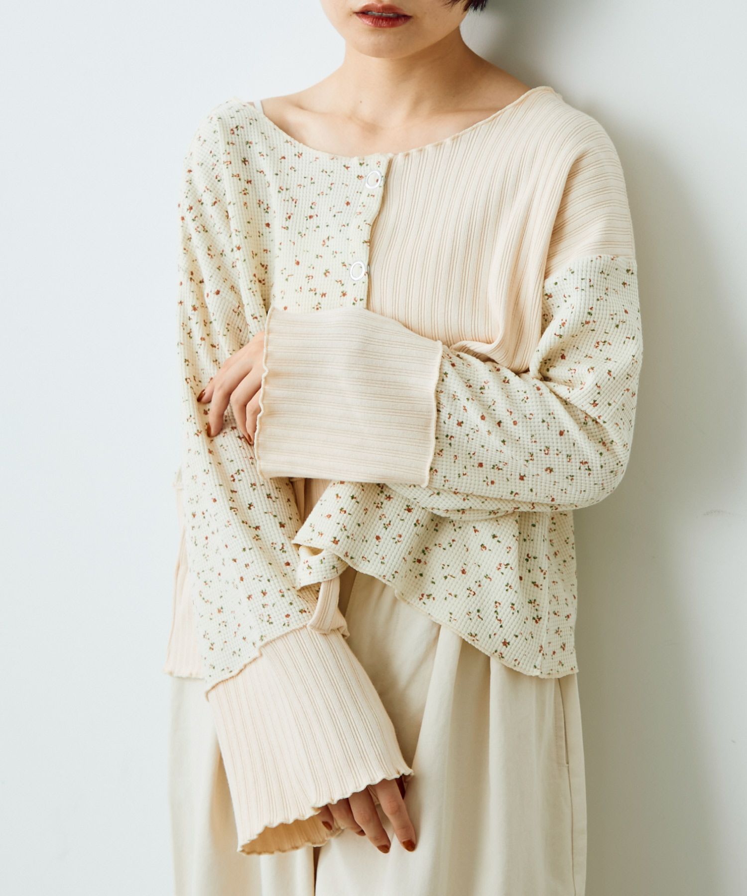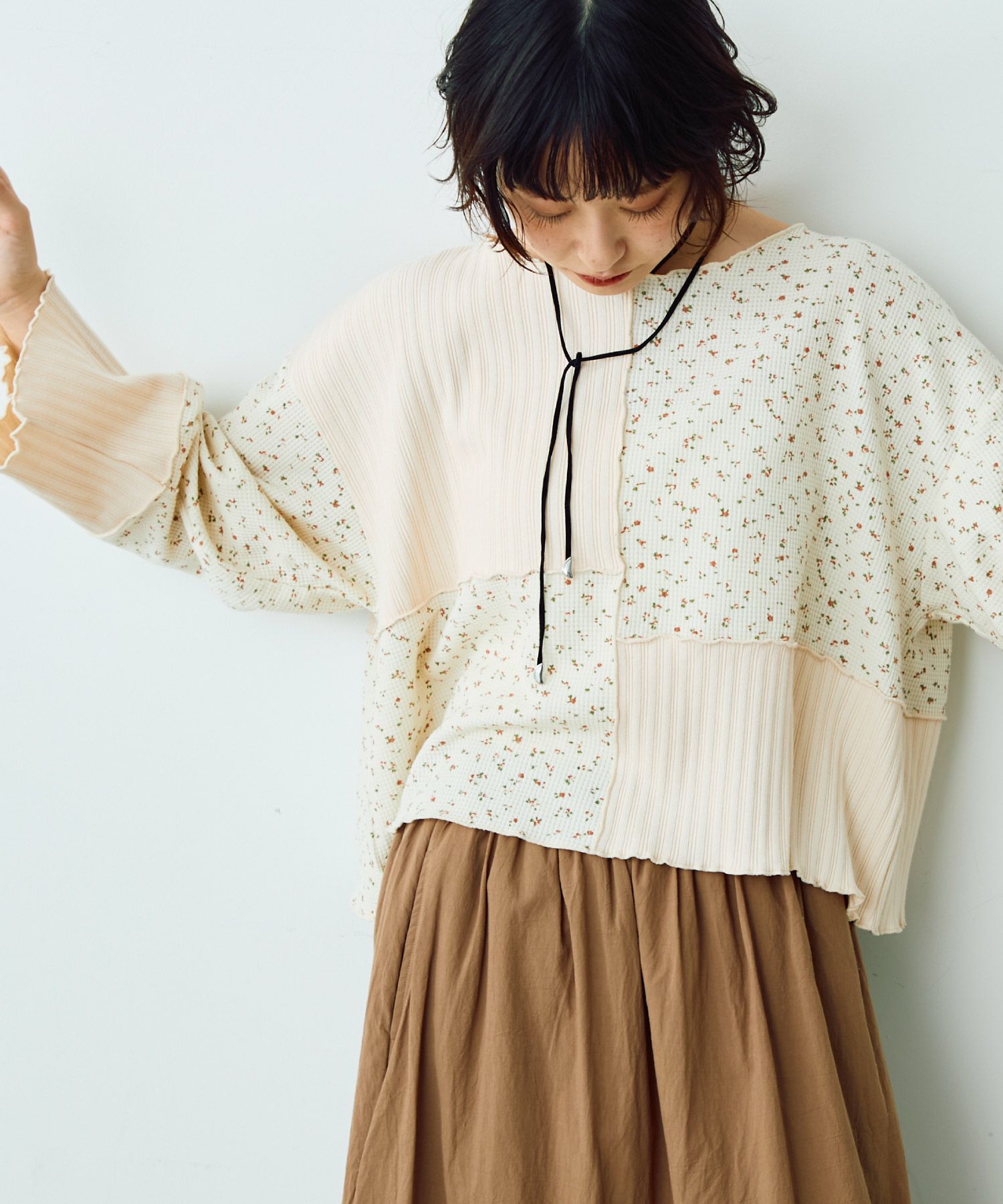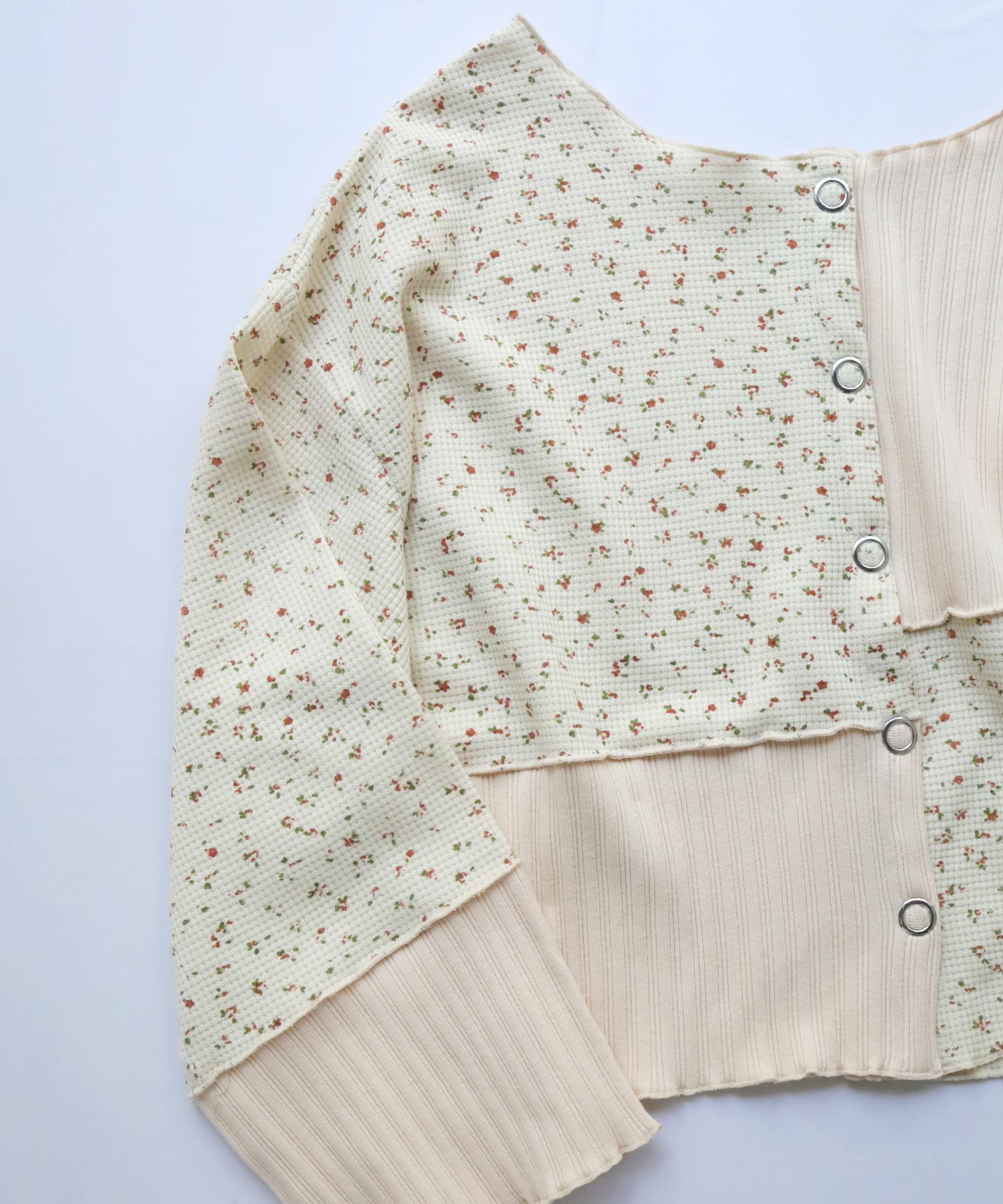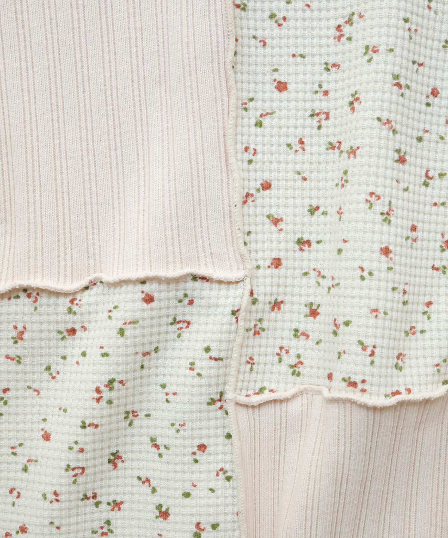 フラワーリブパッチワークトップス[c1R3780]