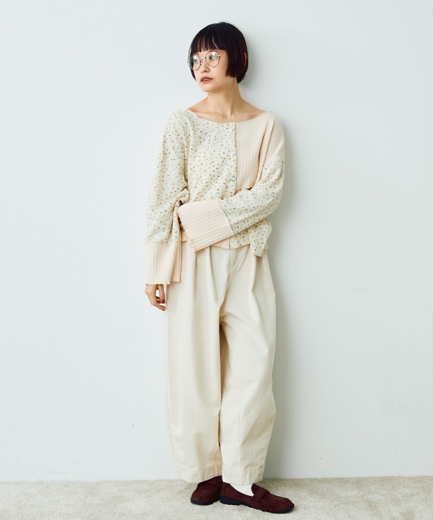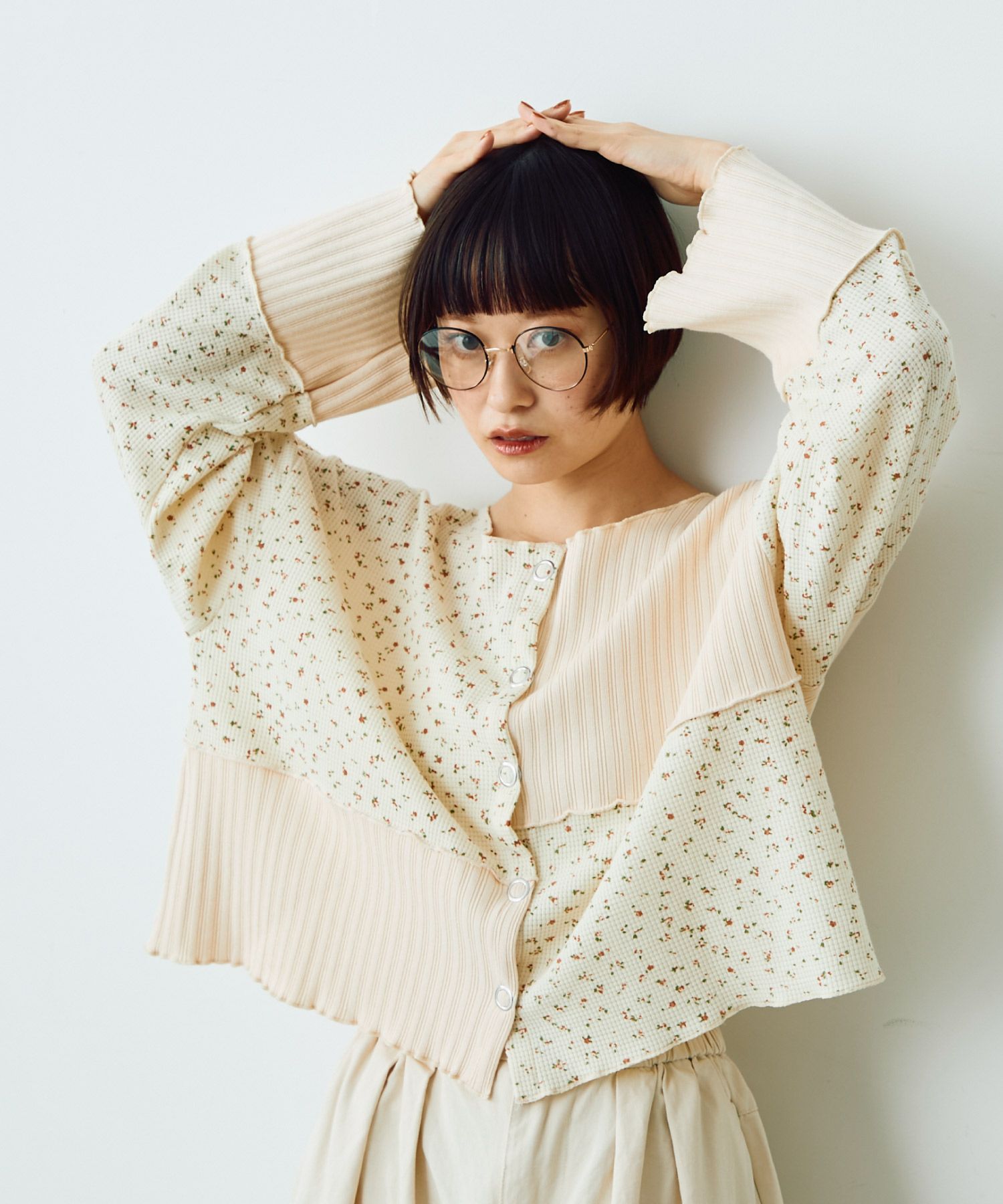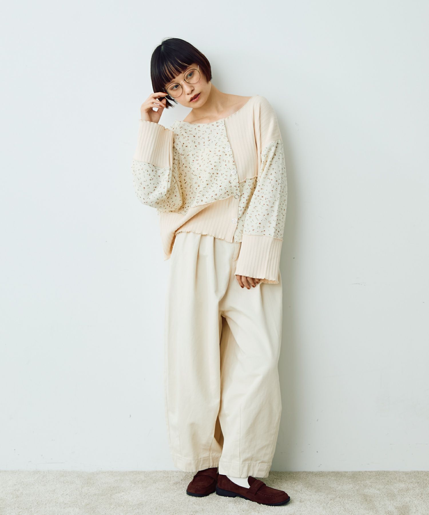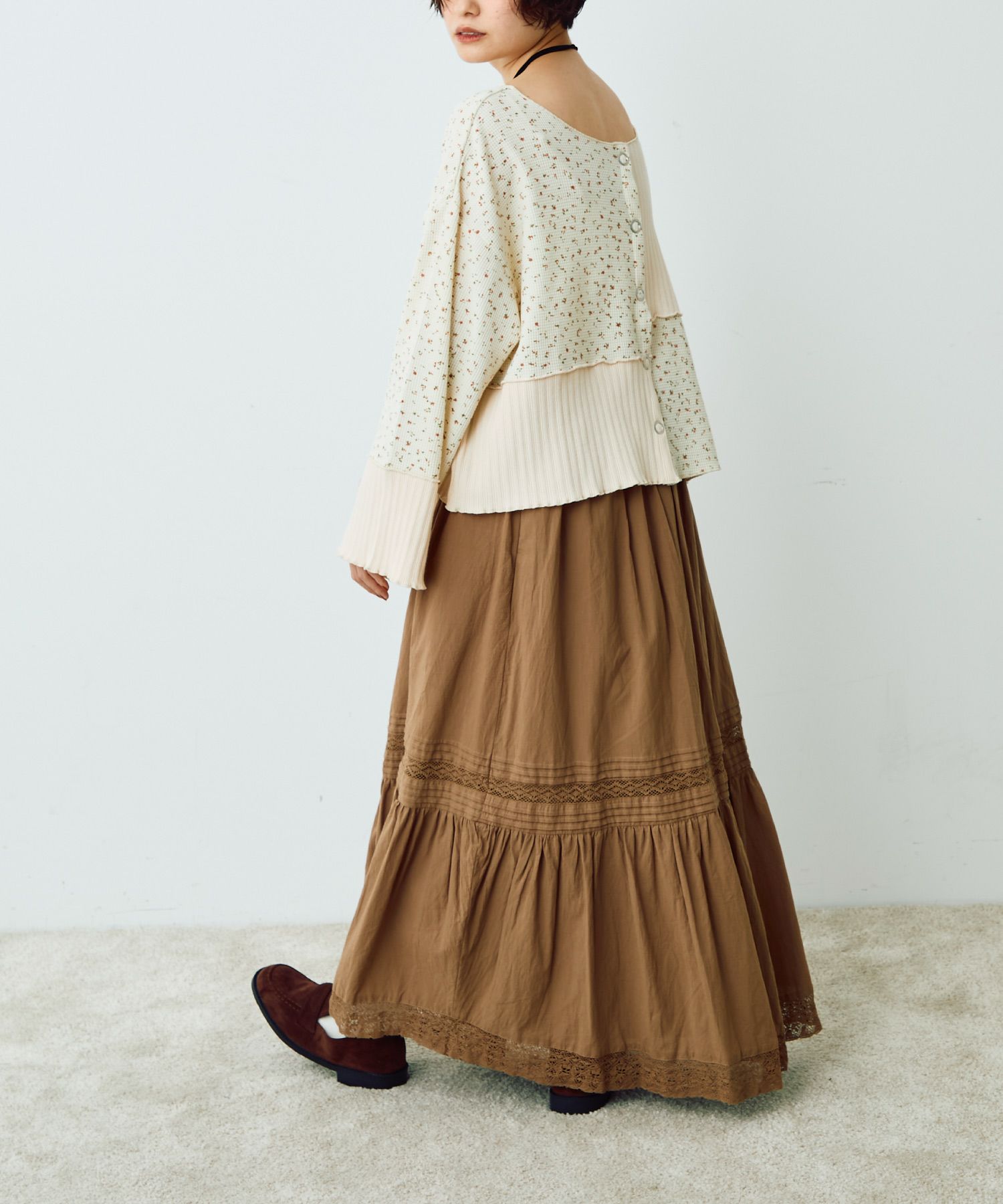 フラワーリブパッチワークトップス[c1R3780]