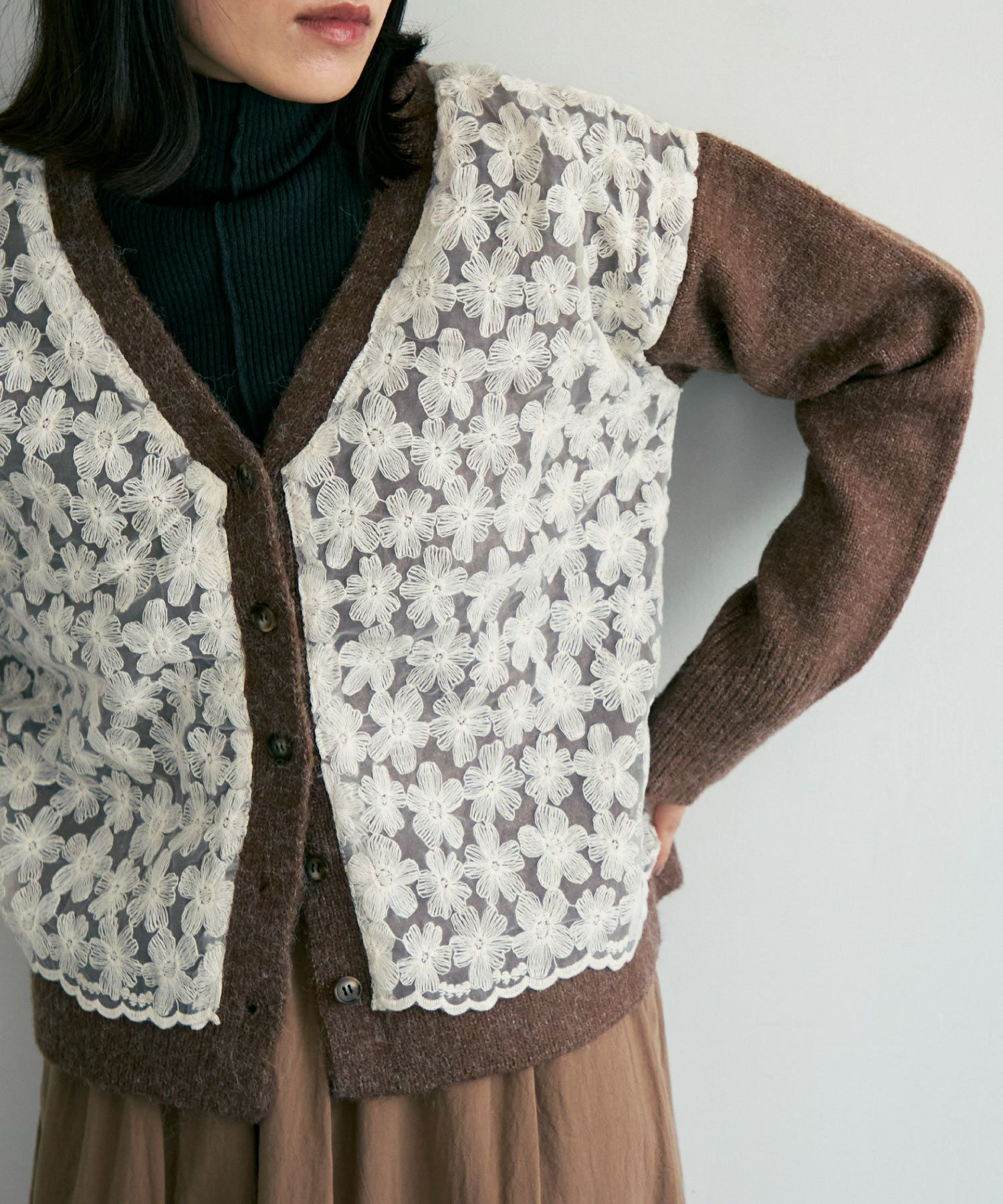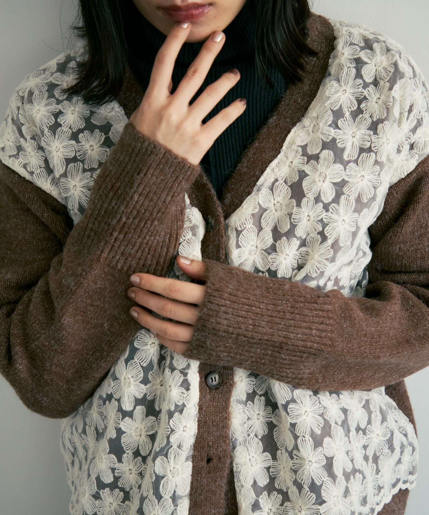 フラワーレースニットカーディガン[ c1k3741]