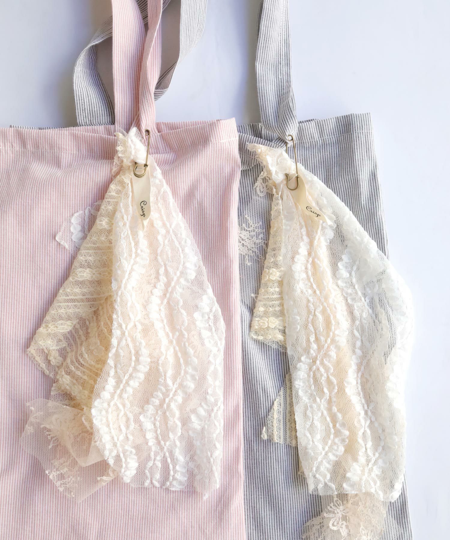 モチーフレースストライプトートバッグ[c3R3514]