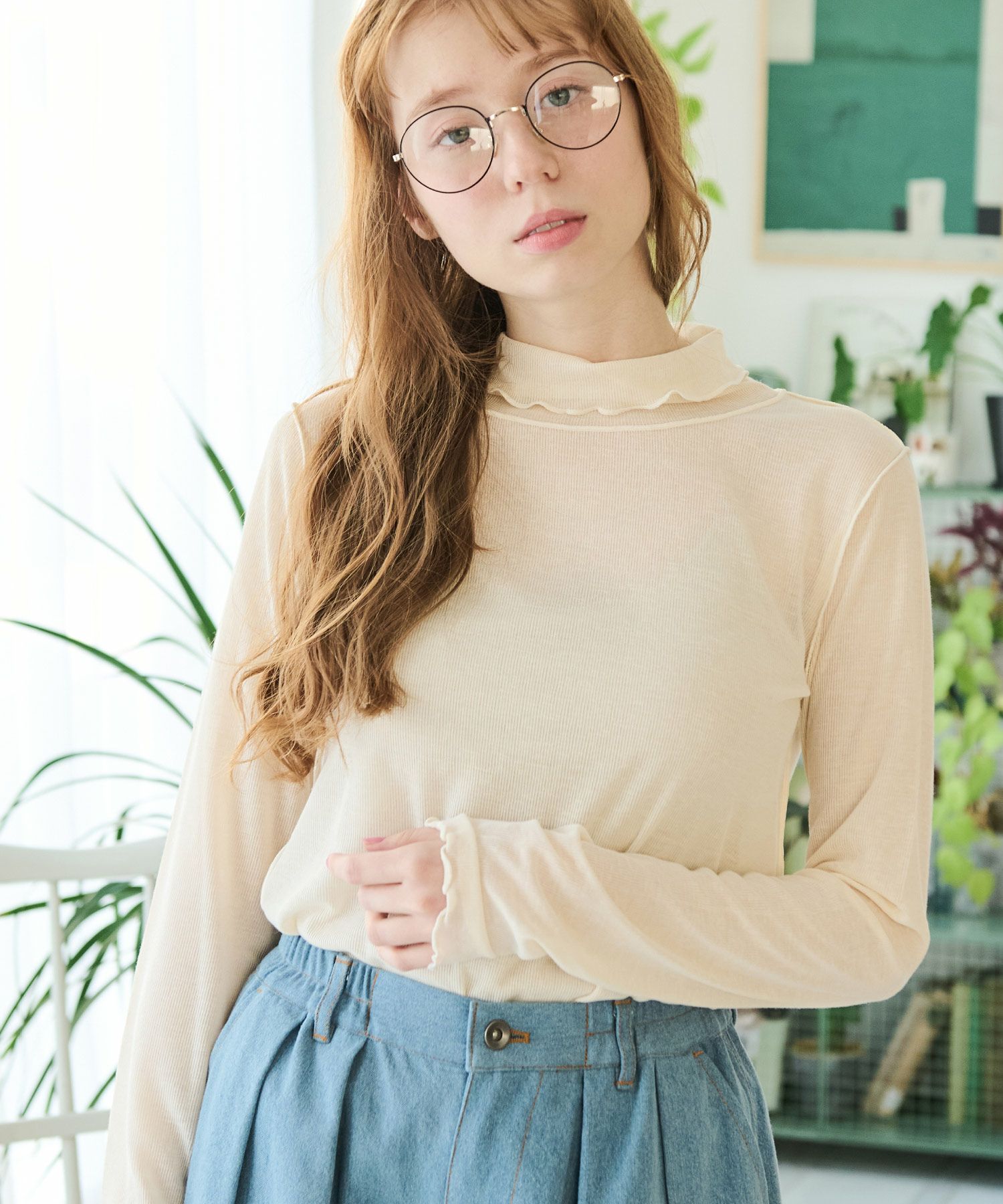 ハイネックシアーメロウTシャツ[c1R3590]