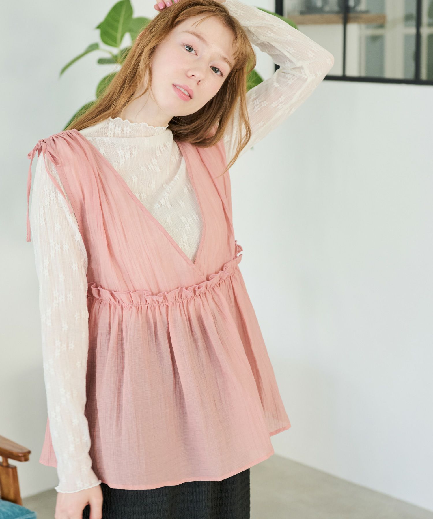 リボンフリルシアータンク[c1R3505]