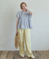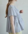 ・ゆるくフィットするシャーリングデザイン ・ウエスト切り替えから広がるぺプラムシルエット ・すっきりとしたUネック、後ろはボタンあき ・長すぎない丈感で身長が低めの方でもコーデのバランスが取りやすいのがポイント ・爽やかなコットン素材のストライプ生地を使用、軽い着心地で夏でも涼しく着られます