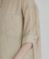 ・ゆったりとしたオーバーサイズにすっきりとした印象のバンドカラーを組み合わせたデザイン ・大きめのポケットがカジュアル感をプラス ・後ろヨークのミニロゴはボディのカラーに合わせたさりげない色味に ・滑らかな風合いで肌離れも良く、通気性も高い快適な素材感
