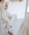 さらっとした肌触りのリネンミックス素材。 これからの季節に涼しく快適に着られる生地感です。