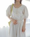 サイドポケット付きで実用性があるのも魅力的。 肘にかかる絶妙な袖丈とふんわりとしたボリュームスリーブで気になる二の腕をカバーしてくれるのも◎ ウエストは一周ゴム仕様でストレスフリーな着心地が叶います。