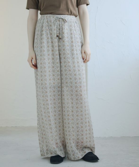 ・コーディネートに取り入れやすい落ち着いたカラーと大人っぽい花柄がポイント ・シフォン素材を使用し薄手でさらっとした穿き心地、裏地付きなので透け感が気にならないのも◎ ・ウエストはゴム仕様のイージーな着心地、リボンでしぼりを調節できるのも嬉しいポイント