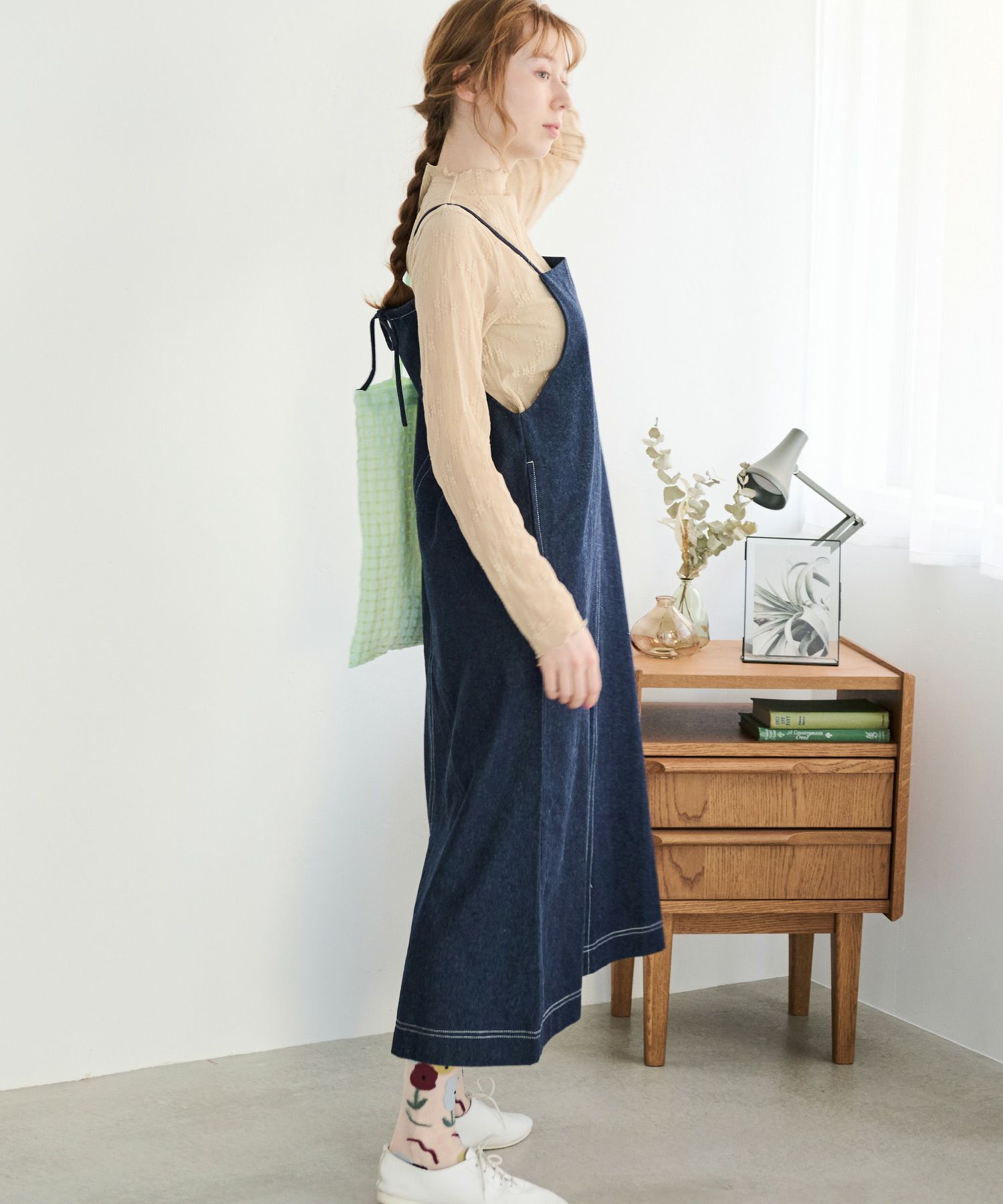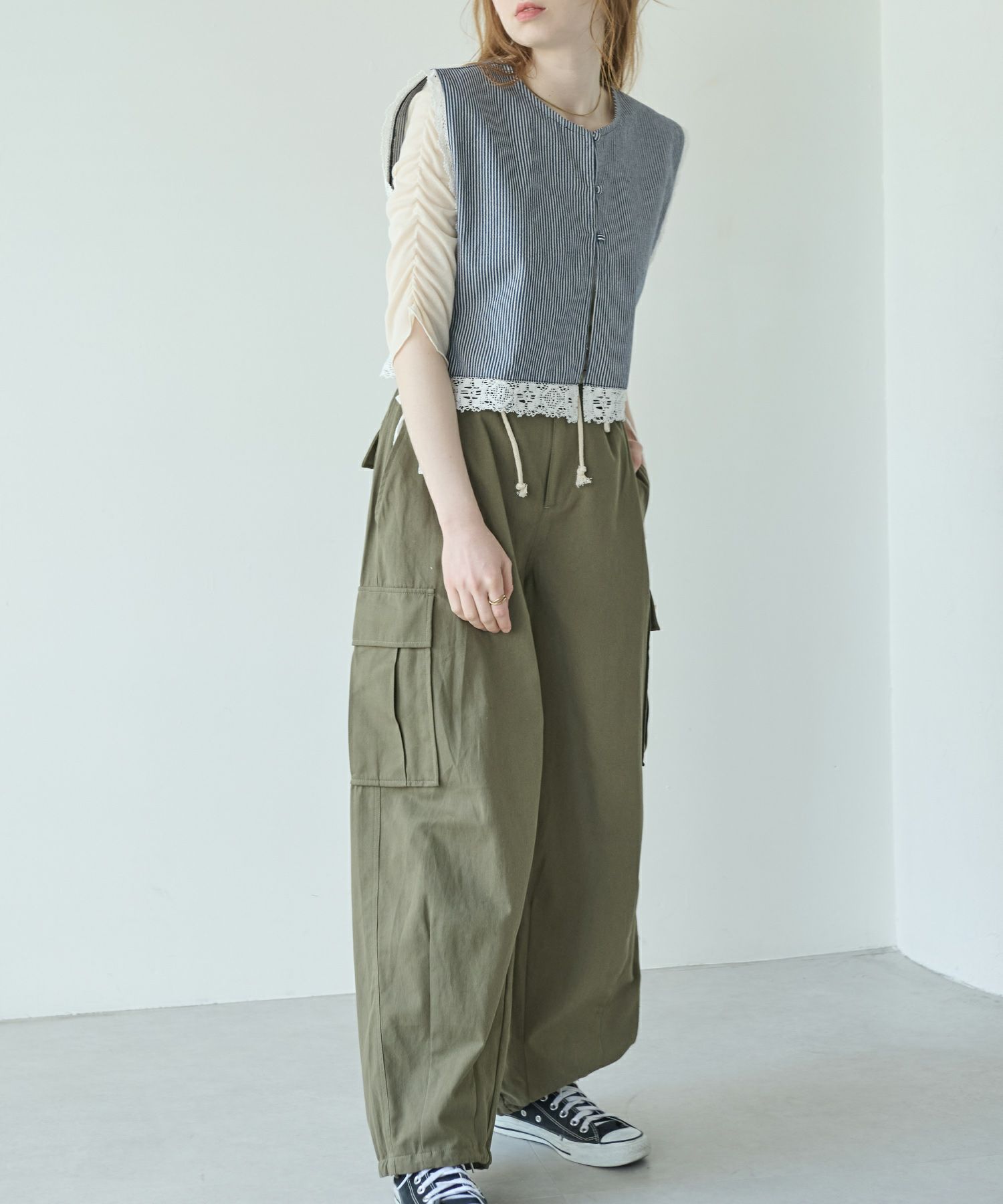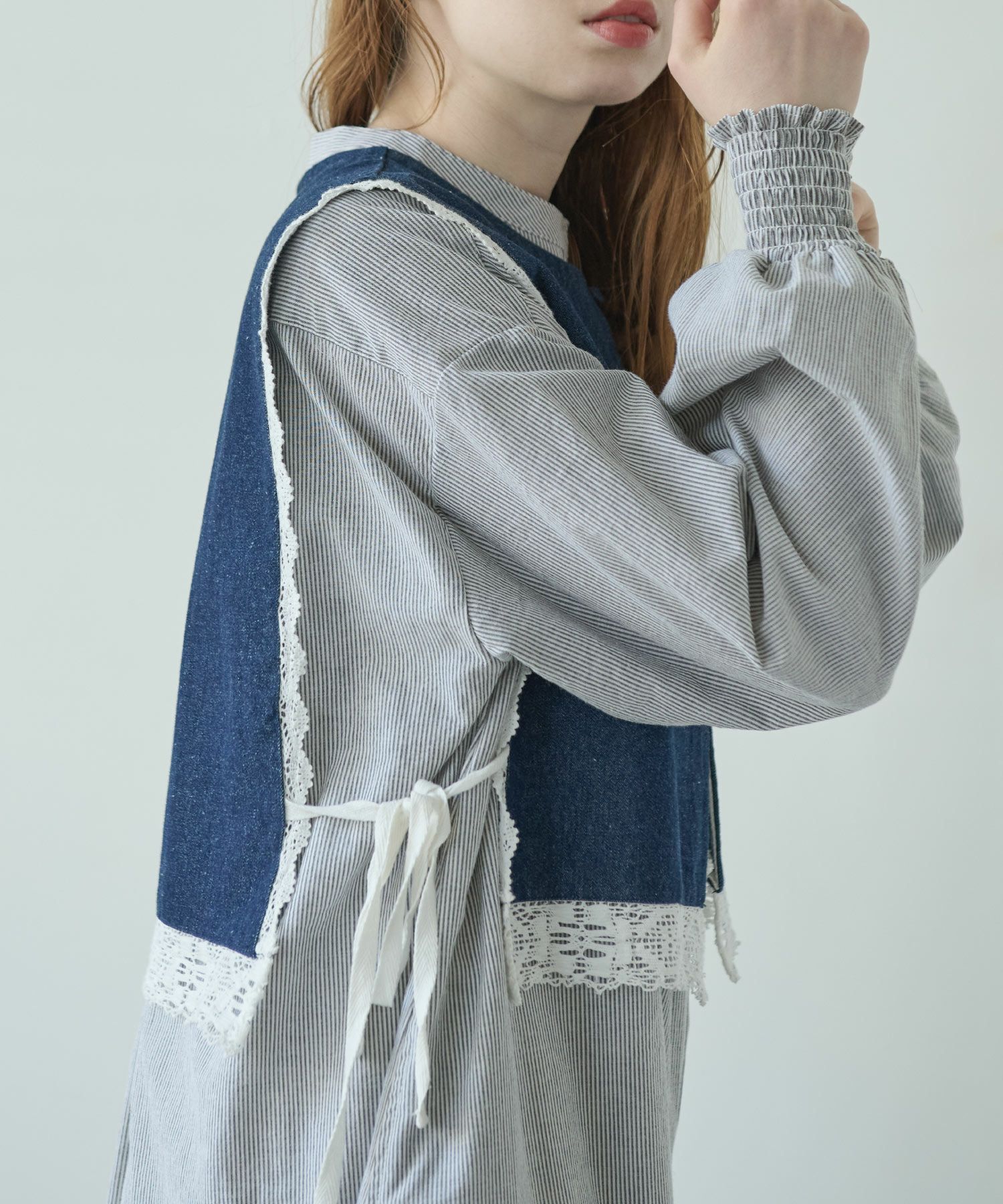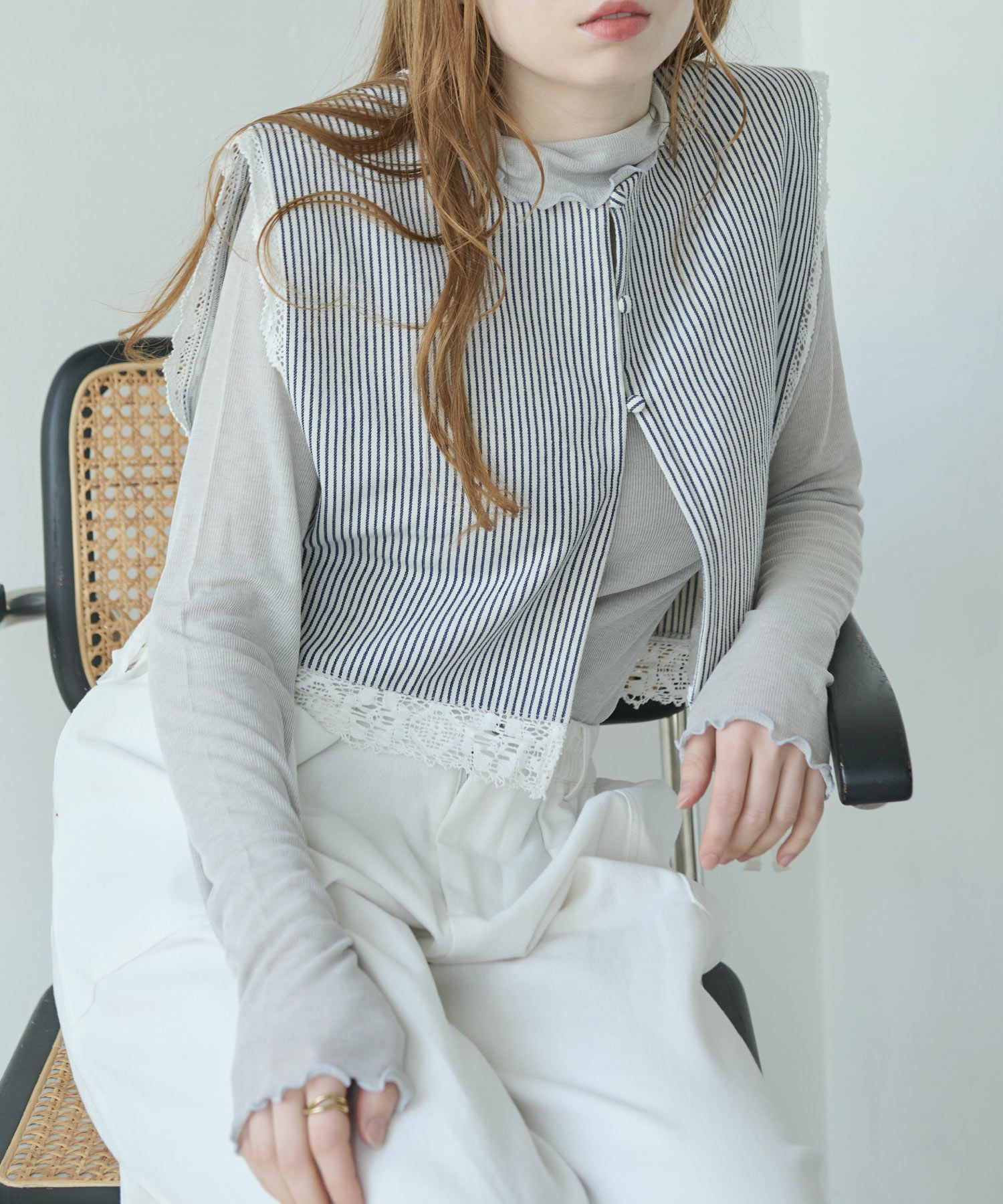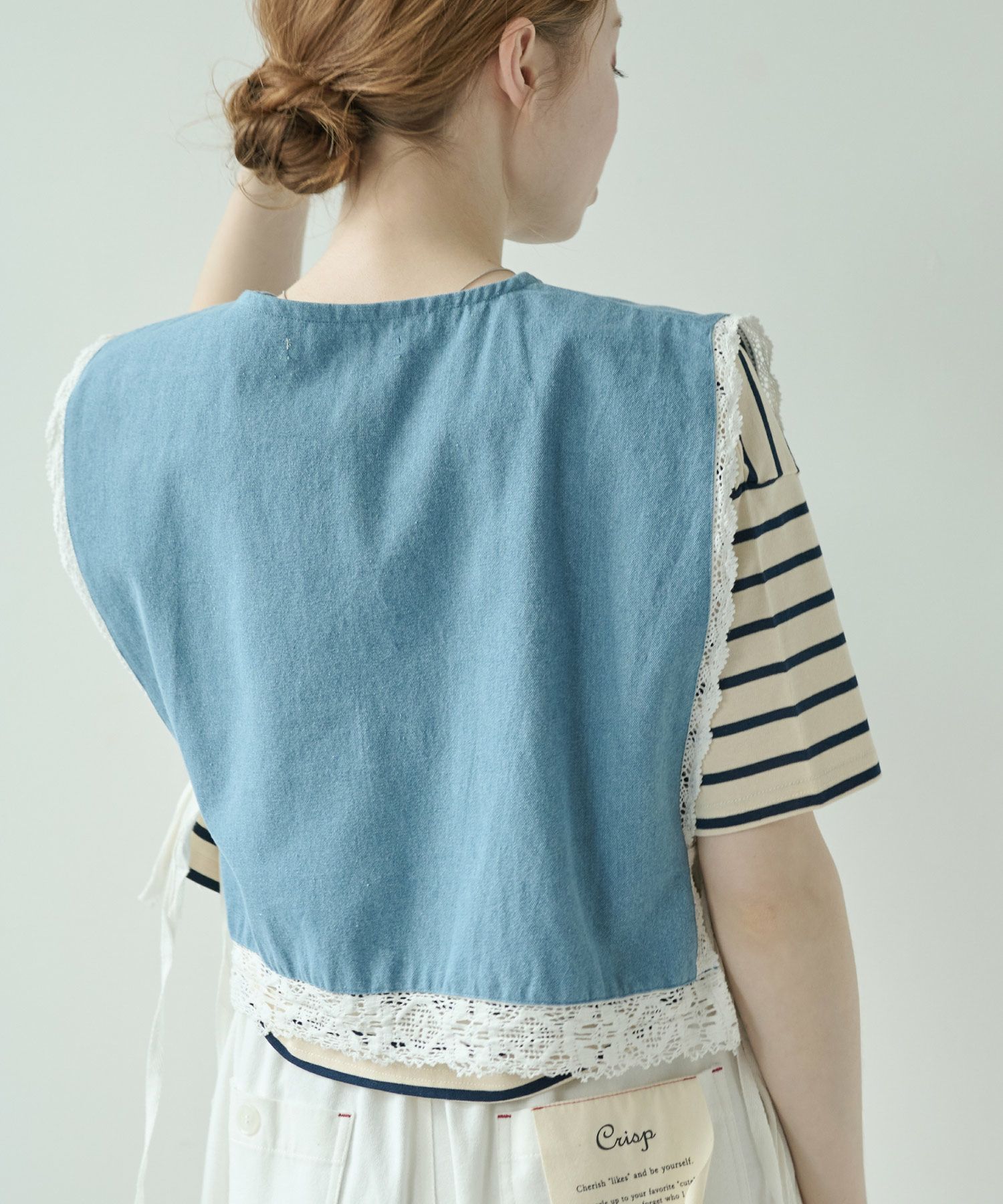 【セットアップ対応可】サイドリボンデニムレースベスト[c1R3423]