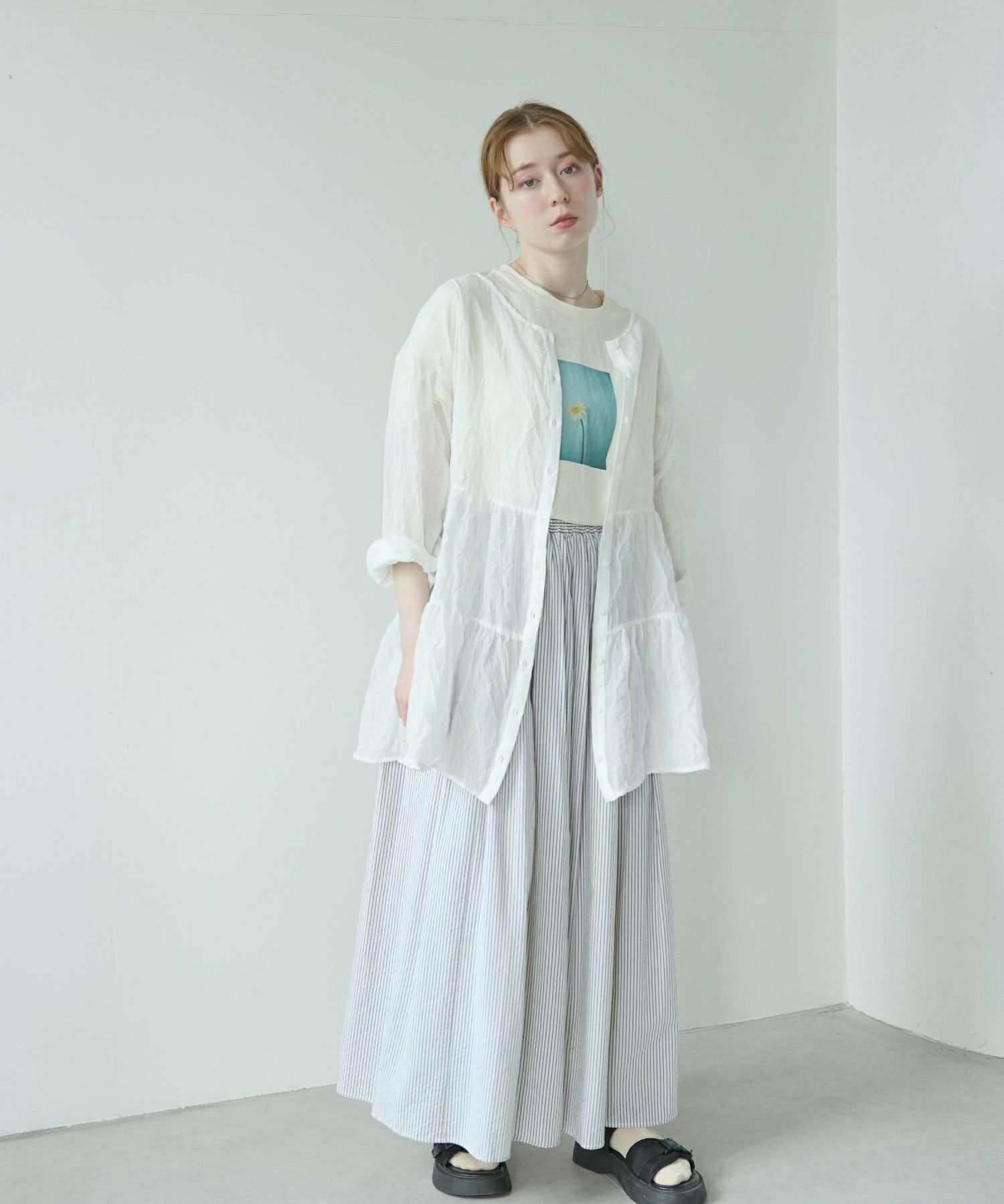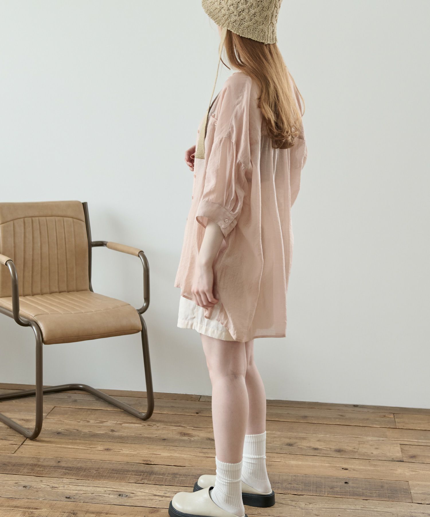 ハーフスリーブシアーオーバーシャツ[c1R3609]