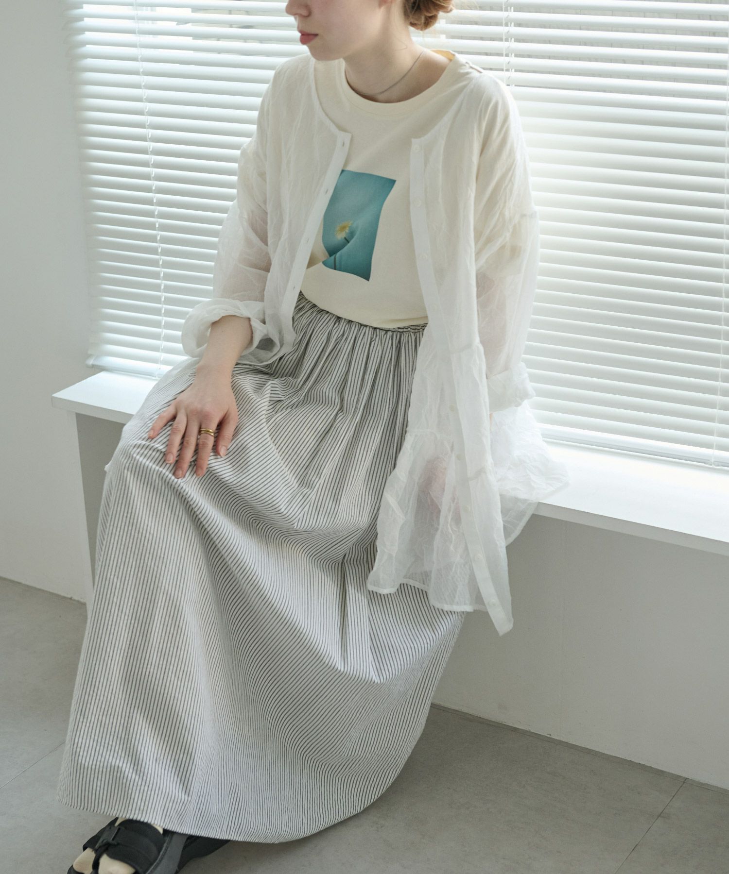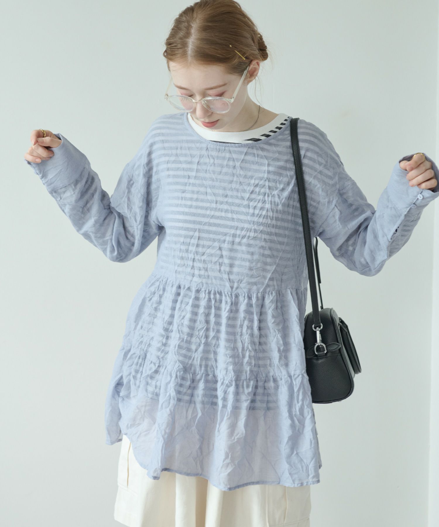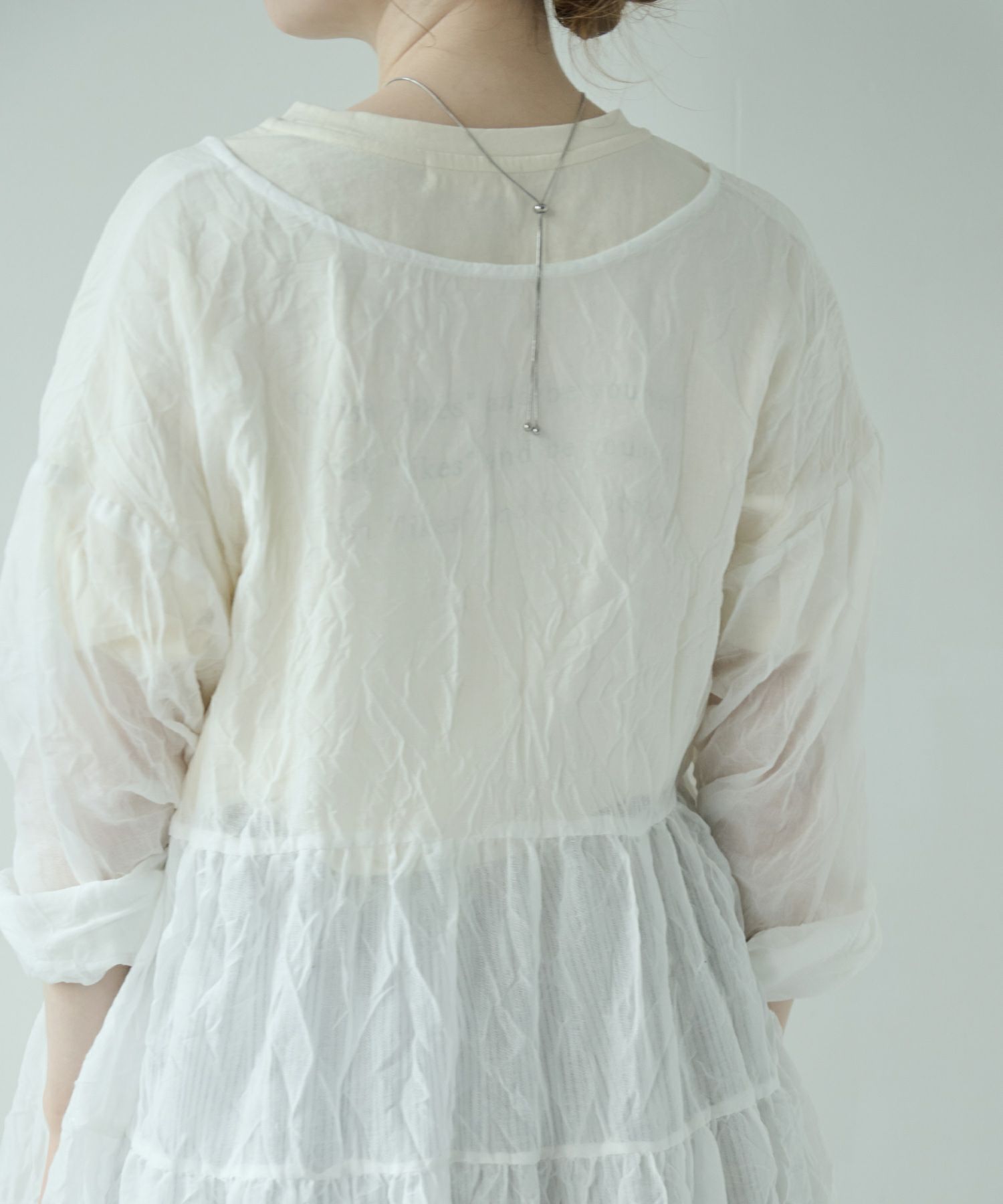 袖シャーリングシアーメロウTシャツ[c1R3580]