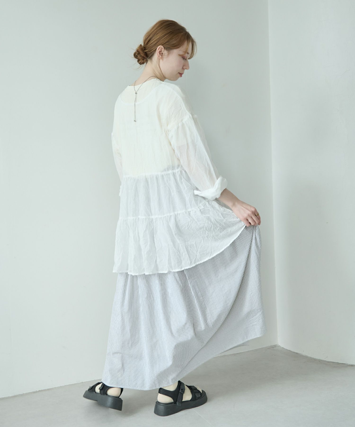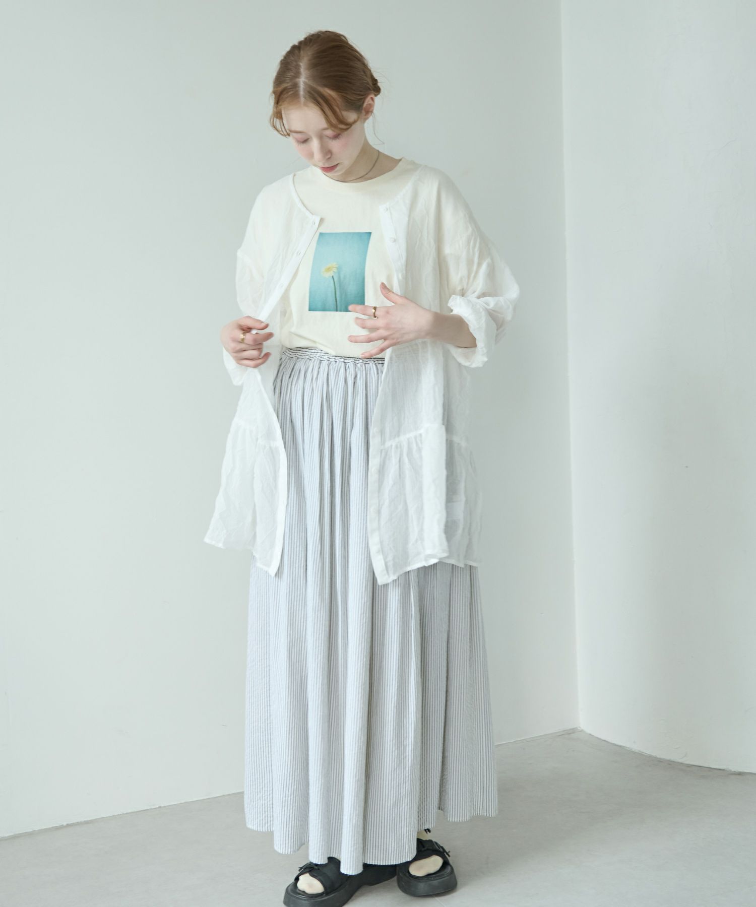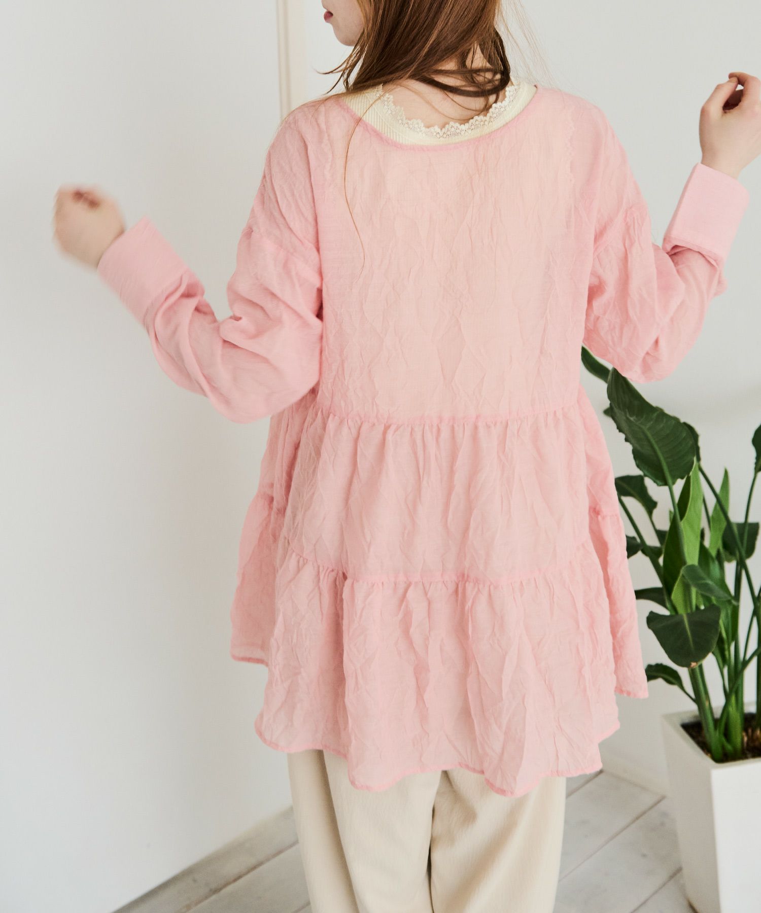 袖シャーリングシアーメロウTシャツ[c1R3580]