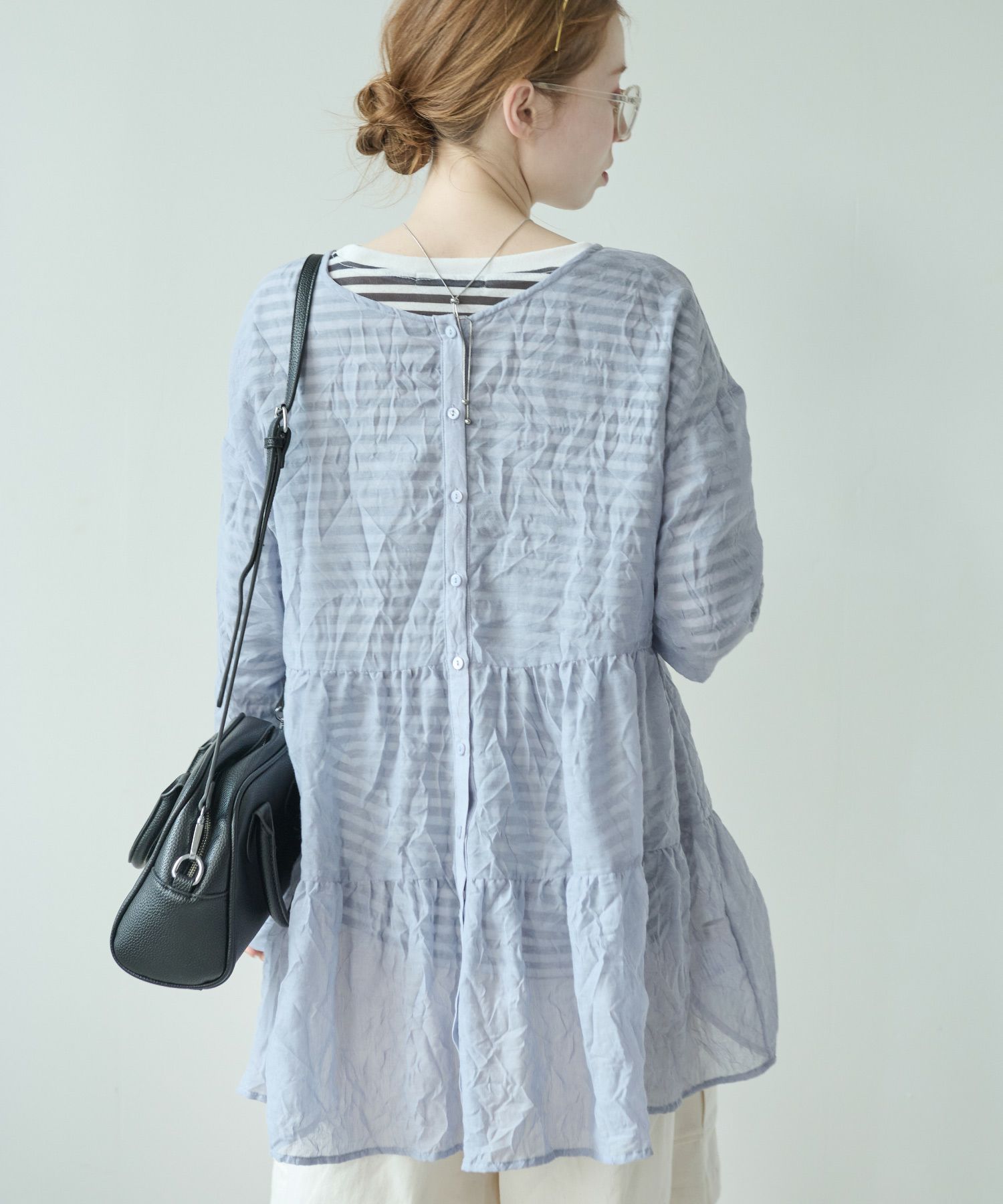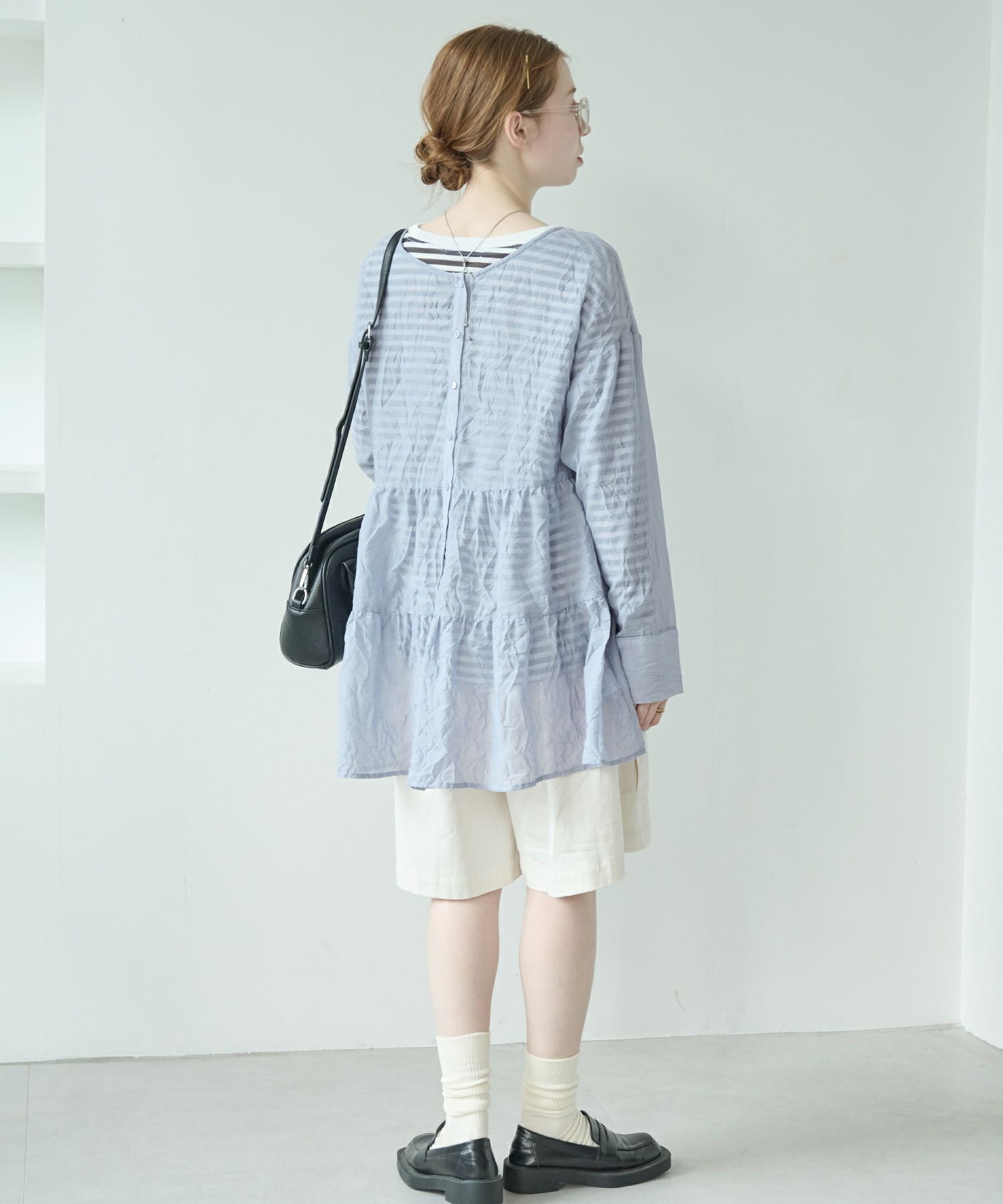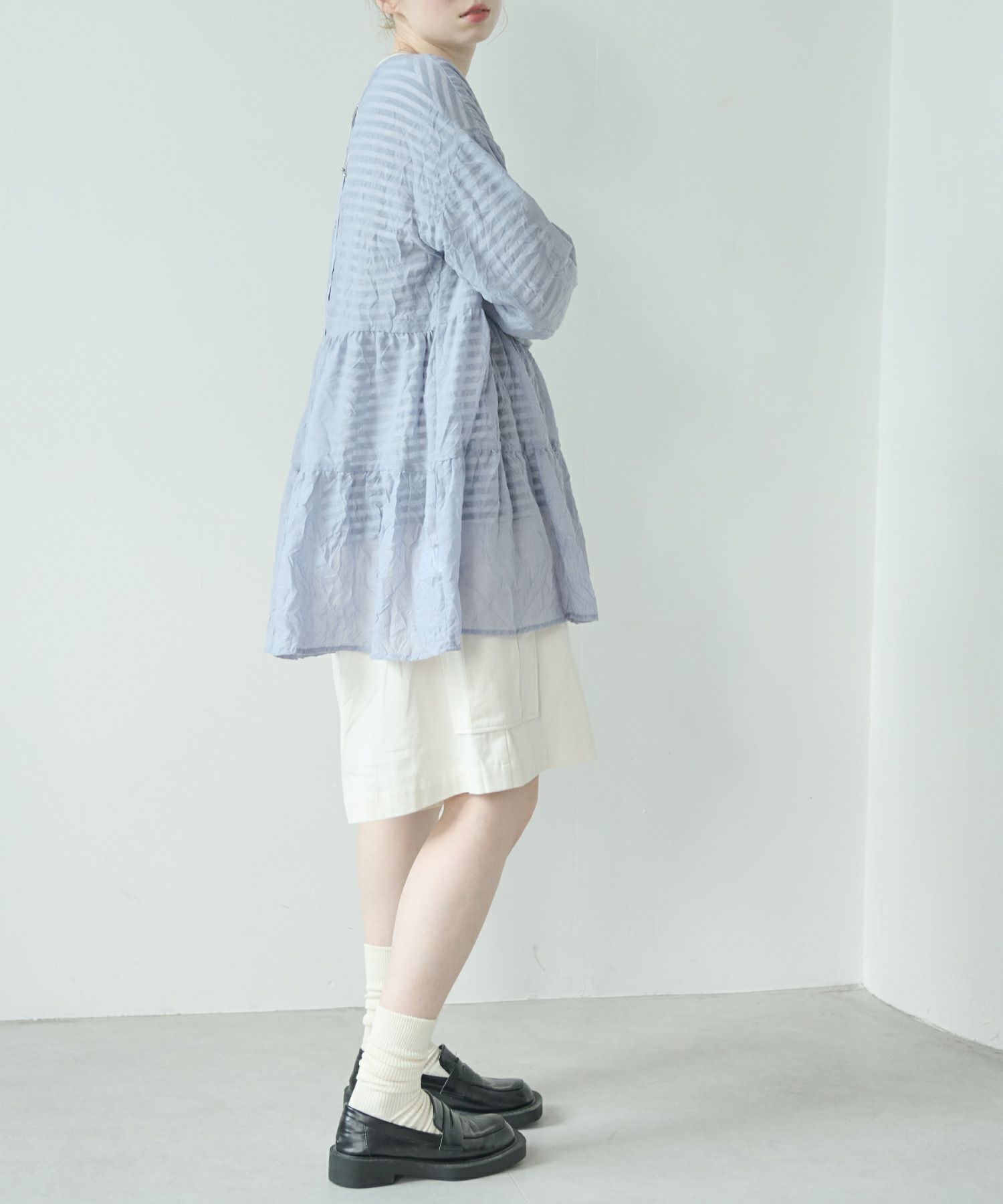 ストライプシャーリングギャザーブラウス[c1k3619b]