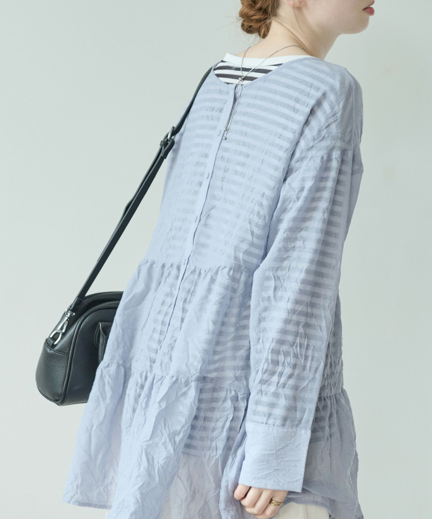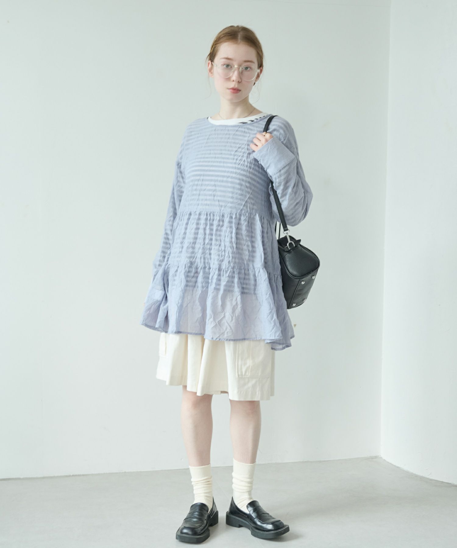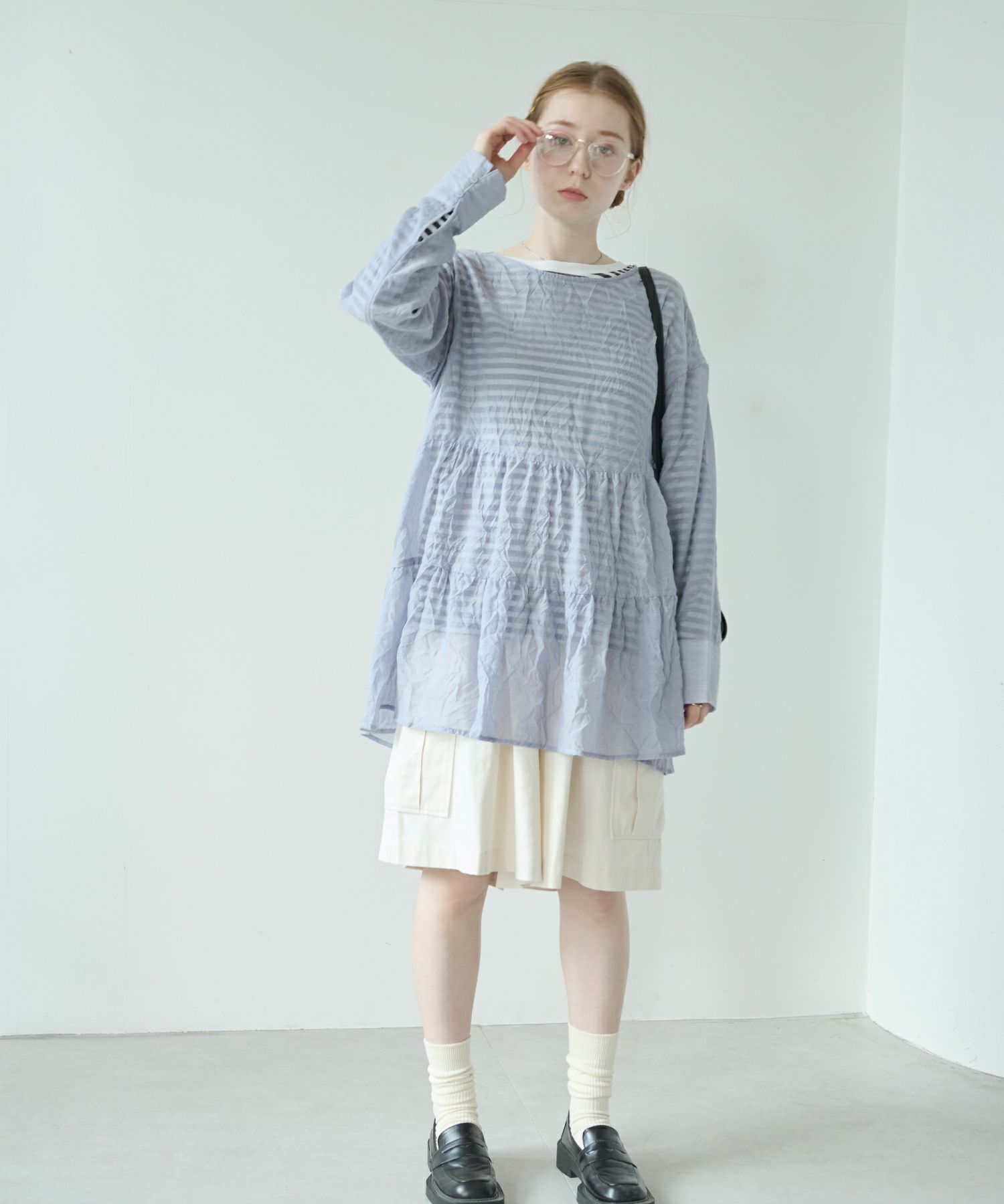 ストライプシャーリングギャザーブラウス[c1k3619b]