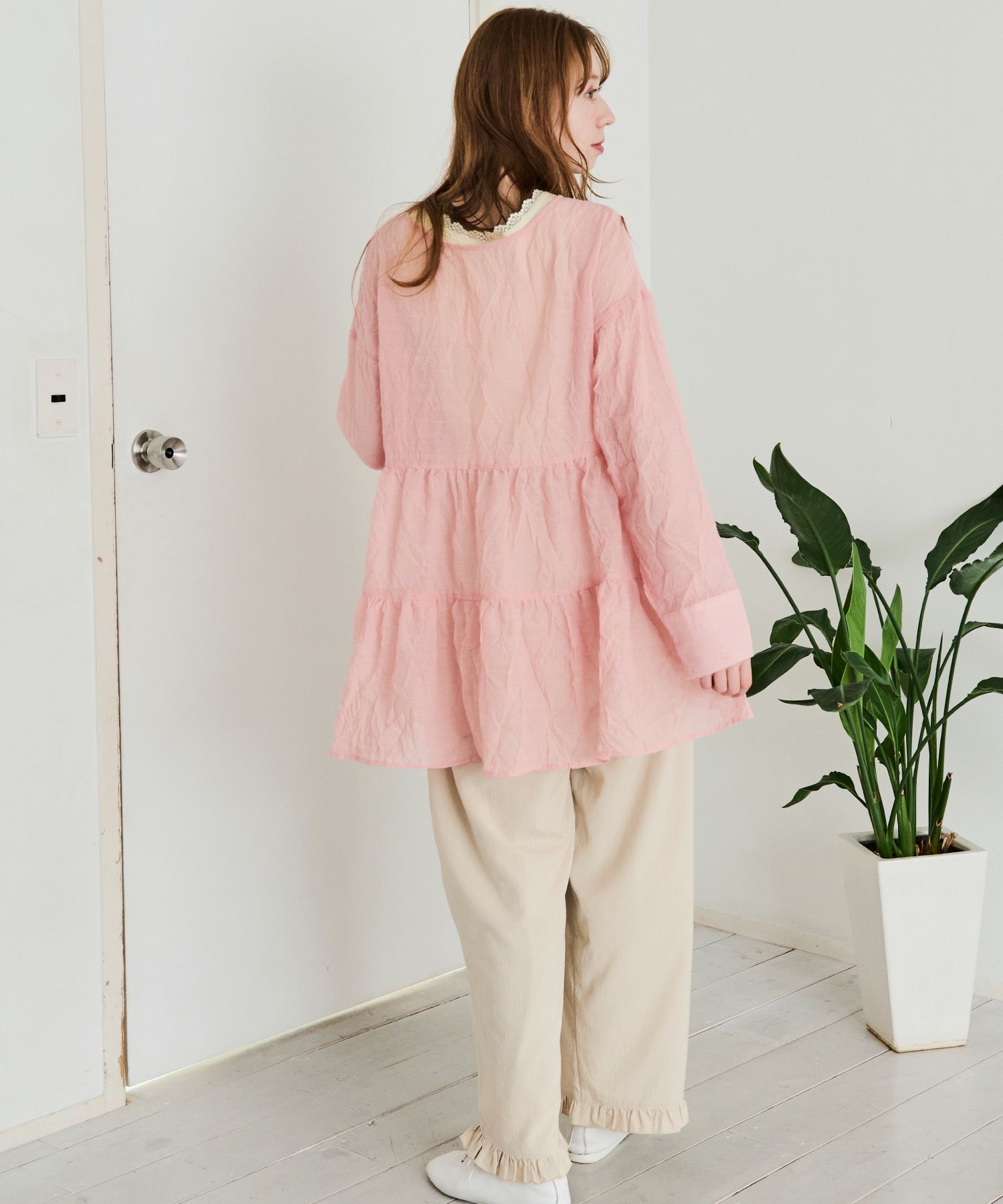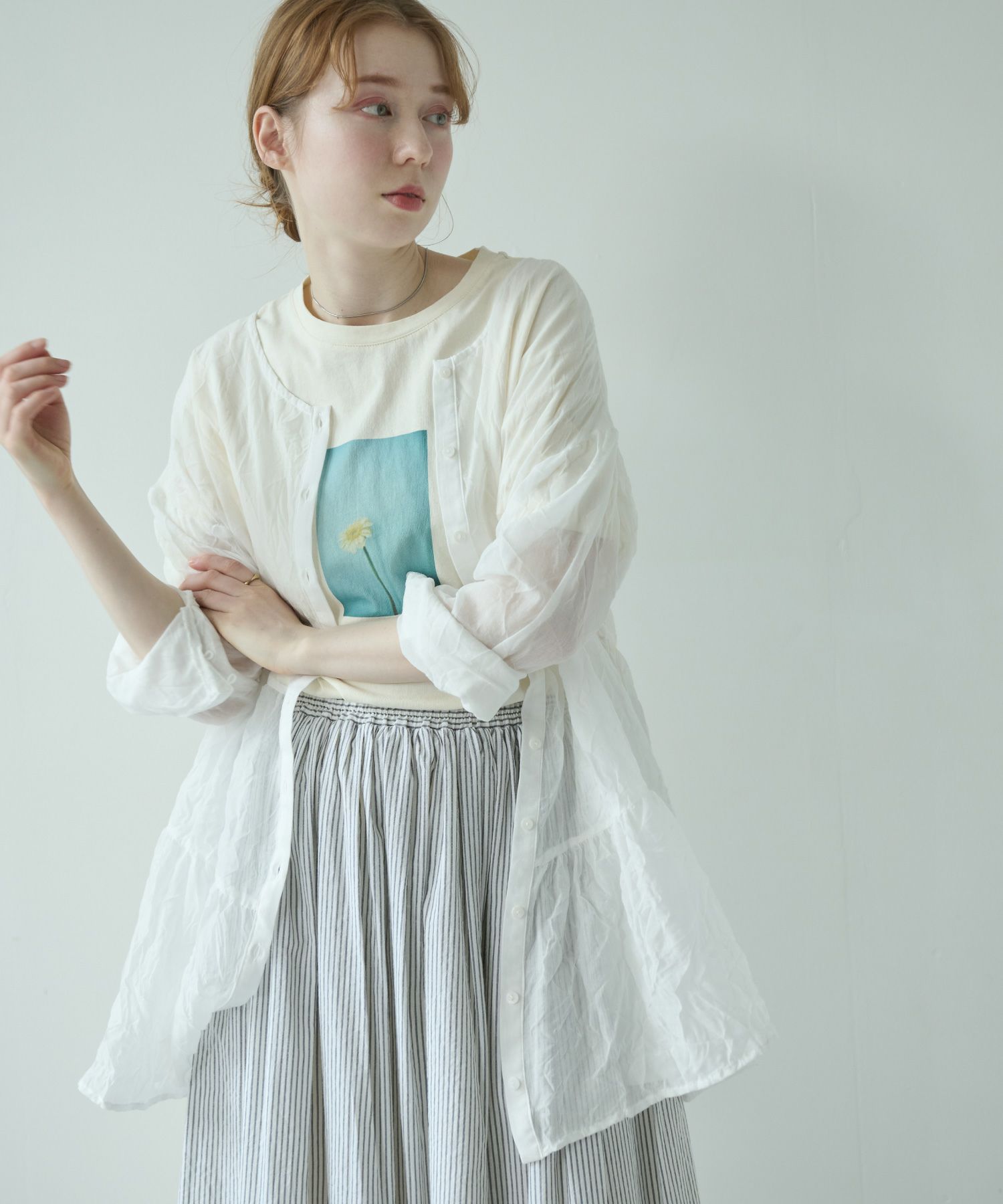 ハーフスリーブシアーオーバーシャツ[c1R3609]
