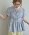 ・ゆるくフィットするシャーリングデザイン ・ウエスト切り替えから広がるぺプラムシルエット ・すっきりとしたUネック、後ろはボタンあき ・長すぎない丈感で身長が低めの方でもコーデのバランスが取りやすいのがポイント ・爽やかなコットン素材のストライプ生地を使用、軽い着心地で夏でも涼しく着られます