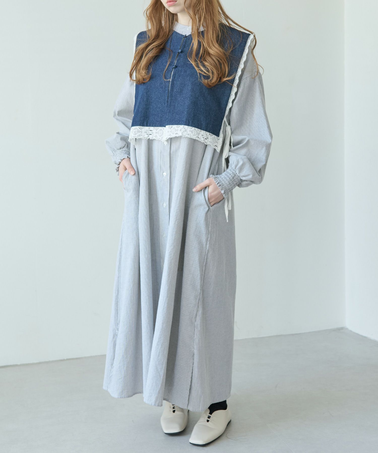 【セットアップ対応可】サイドリボンデニムレースベスト[c1R3423]