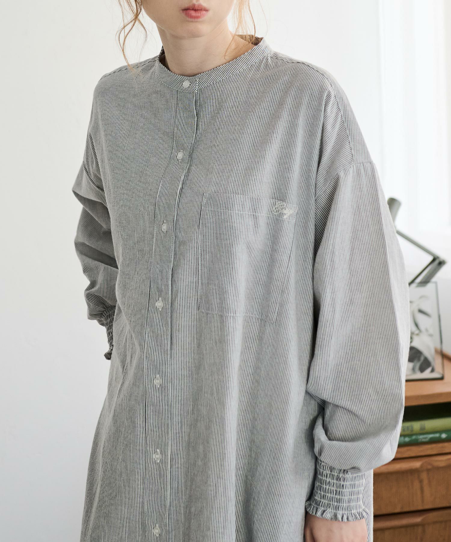 ストライプギャザーチュニックワンピース[c2R3644b]