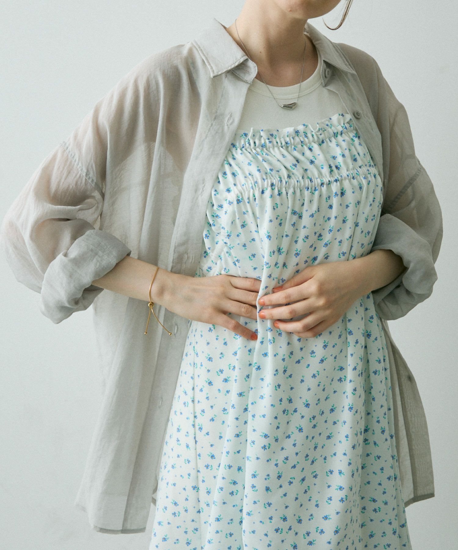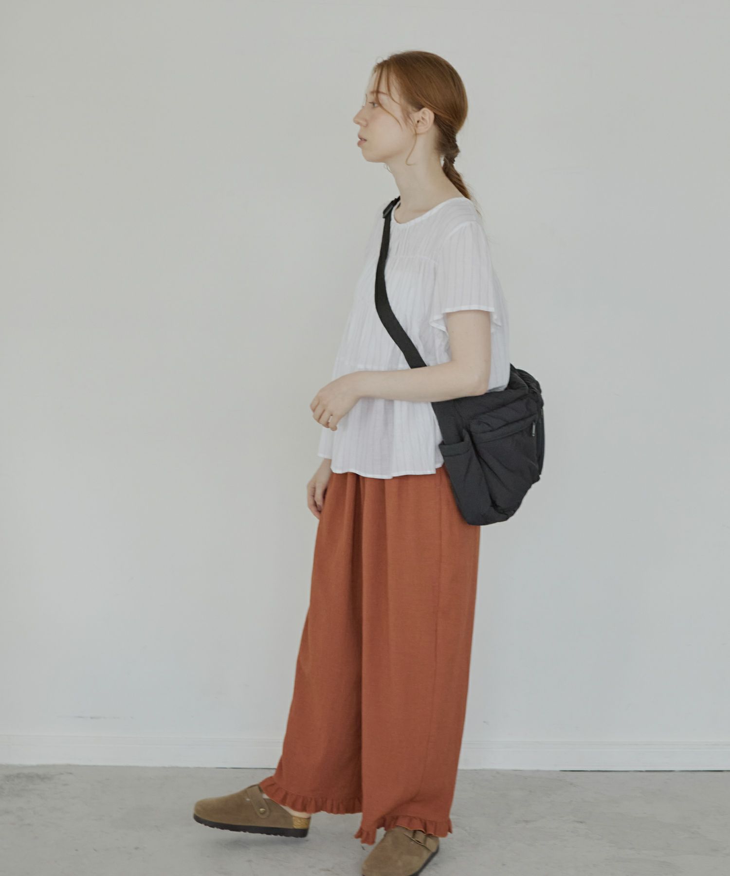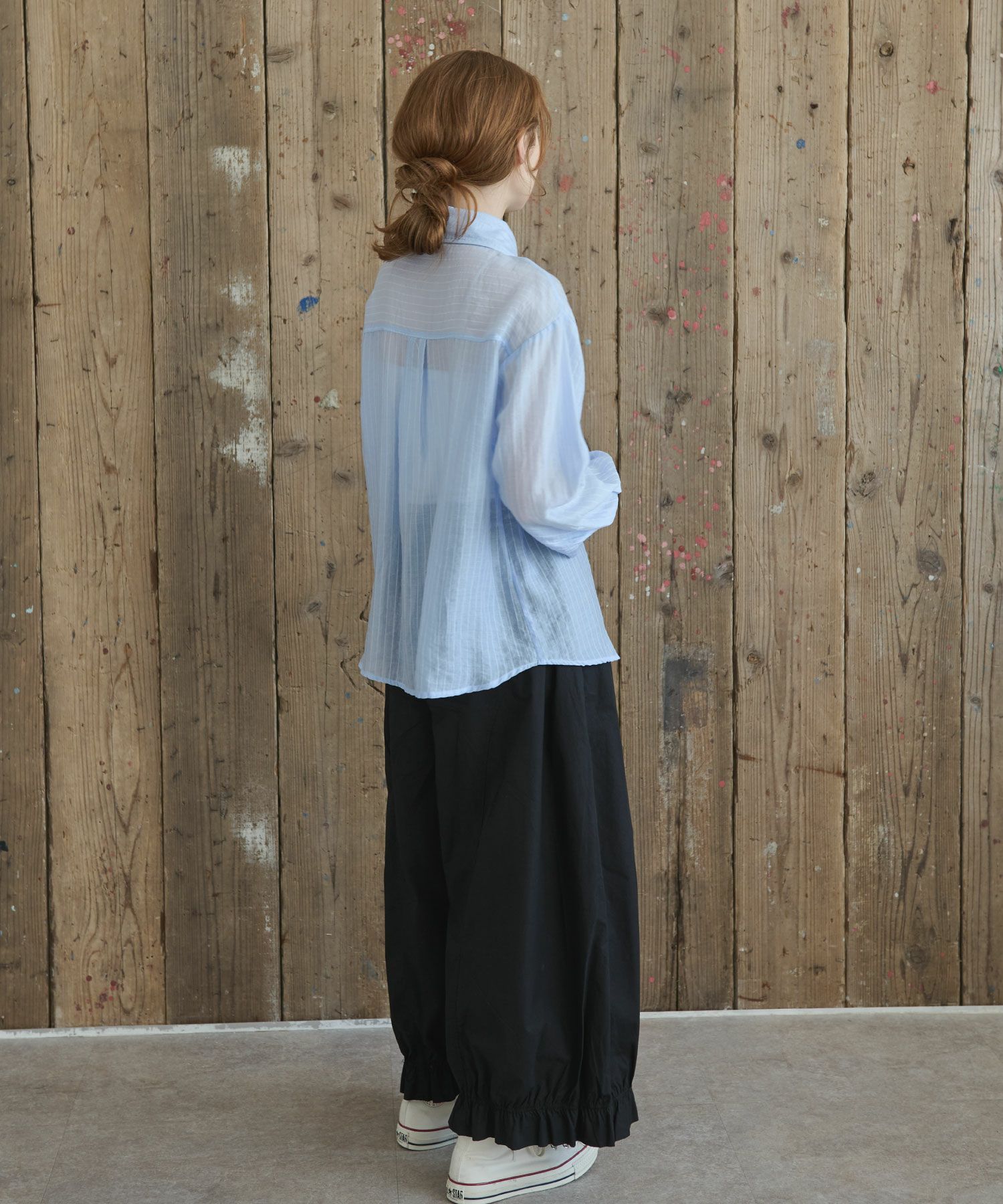 ストライプシャーリングギャザーブラウス[c1k3619b]
