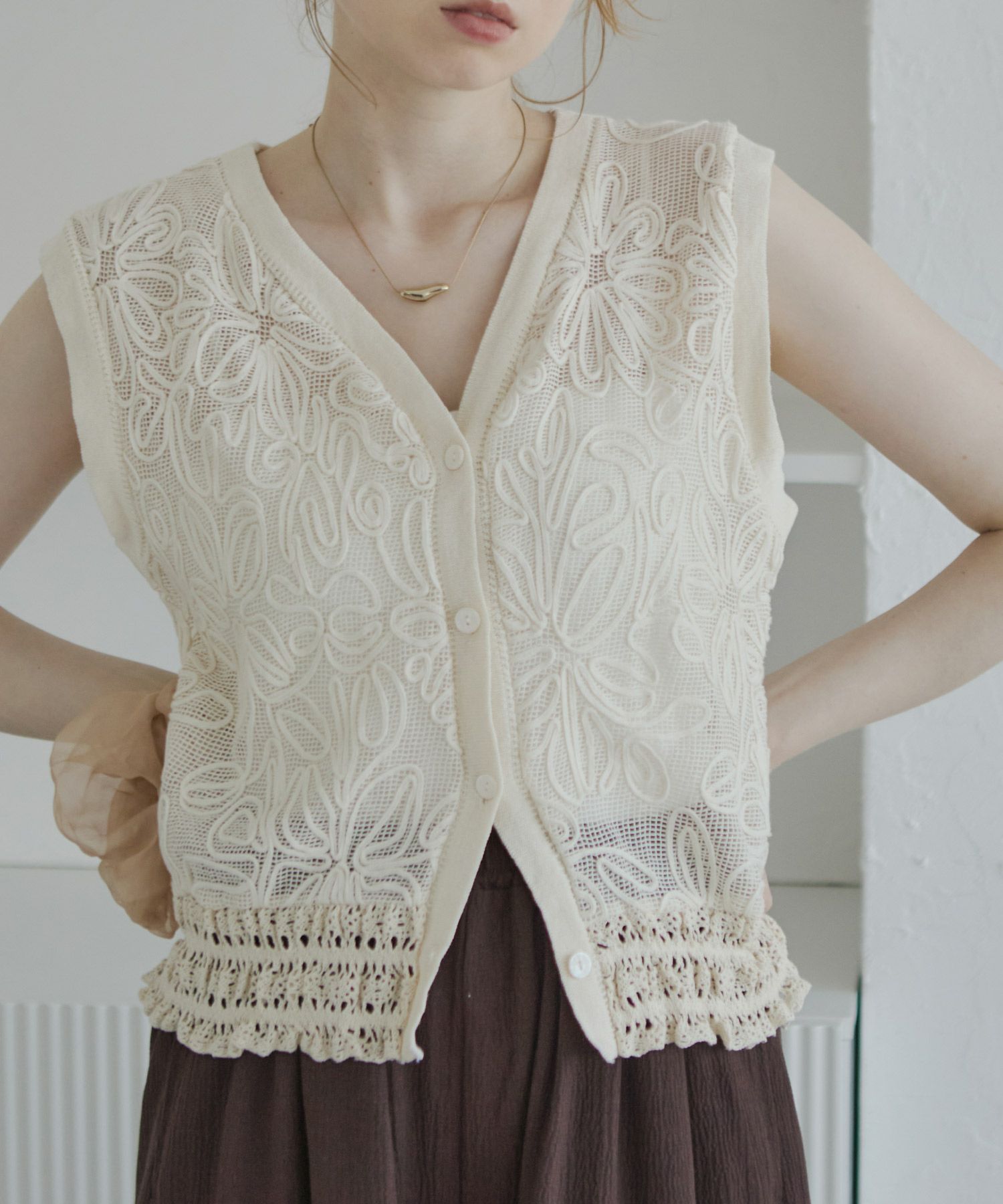 ラウンドヘムクロシェレーストップス[c1k3621b]