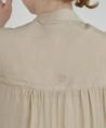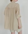 ・ゆったりとしたオーバーサイズにすっきりとした印象のバンドカラーを組み合わせたデザイン ・大きめのポケットがカジュアル感をプラス ・後ろヨークのミニロゴはボディのカラーに合わせたさりげない色味に ・滑らかな風合いで肌離れも良く、通気性も高い快適な素材感