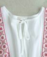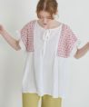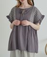 ・袖フリルデザインでフェミニンな要素をプラス ・サイドに胸下ギャザーでふんわりシルエットに ・切り替え部分のレースがさりげないポイント ・リボンデザインのあきは前後2wayで着用できます ・コットン素材の楊柳生地、さらっとした肌触りで夏でも涼しく着て頂けます